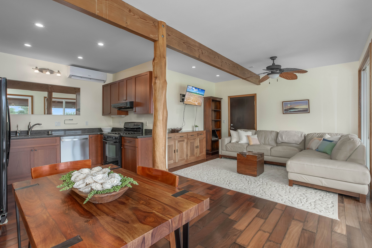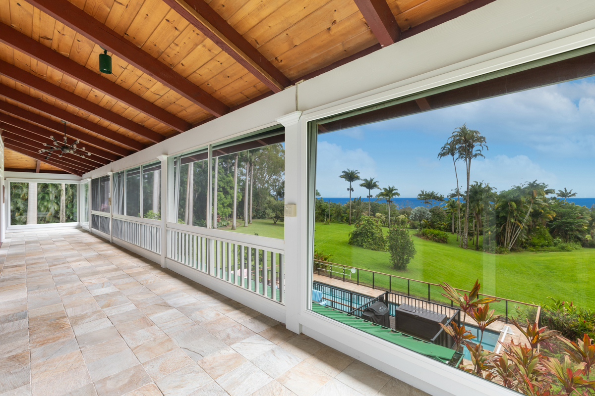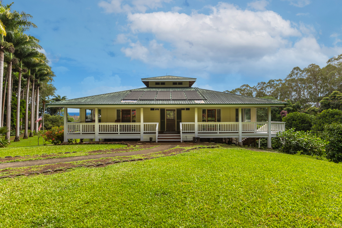 Architect-designed 12.3-acre Hamakua Coast estate, intentionally sited on an elevated grassy hillside to capture steady breezes, abundant natural light, and sweeping ocean views. Offering remarkable privacy bordered on three sides by vacant land and a creek with natural pools and a nearby waterfall. This multi-generational estate offers single-level living on both floors with easy exterior access and minimal stairs, featuring a three-bedroom, three-bath upper level and a versatile lower level with two additional living areas and bedrooms. Expansive glass sliding doors on both levels bring in natural light and ocean vistas while connecting the living spaces to the outdoors.