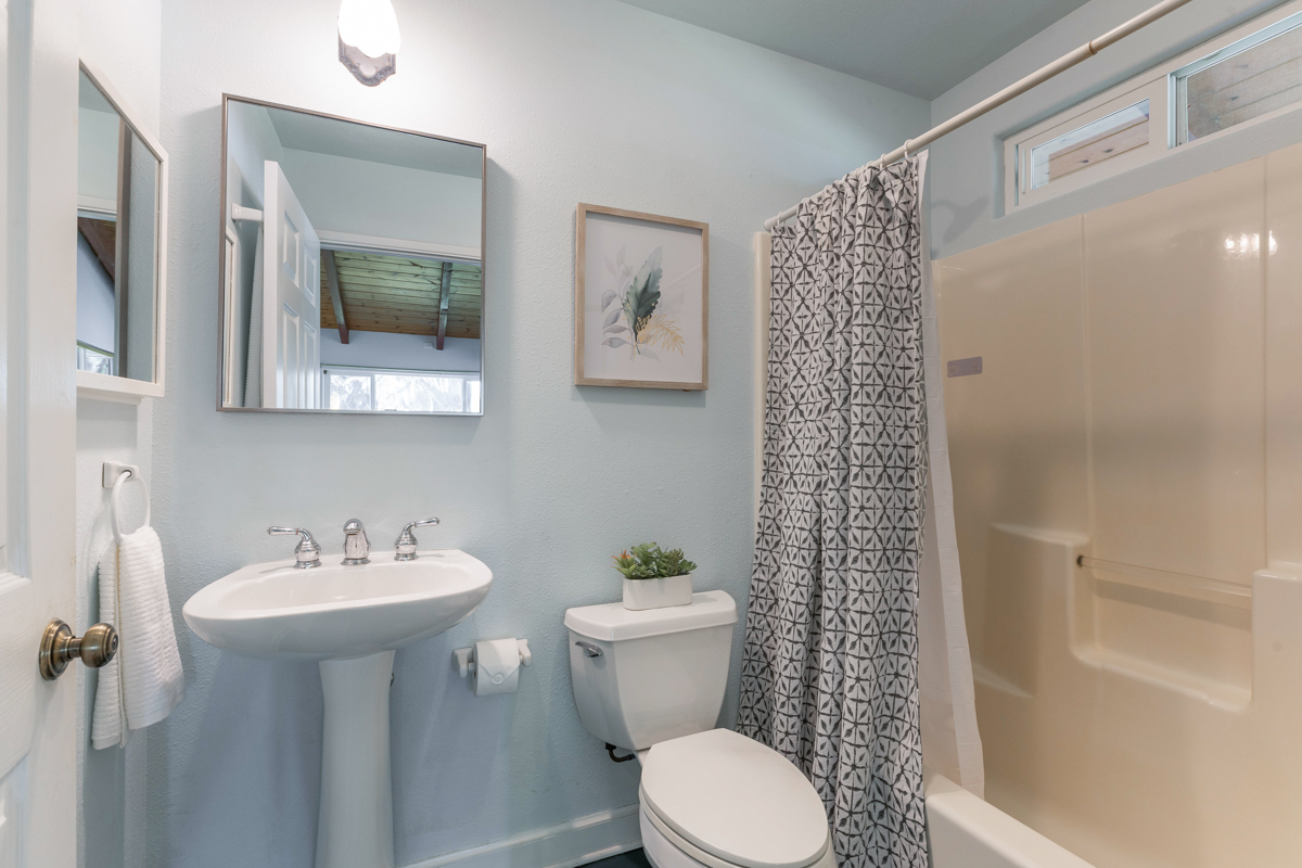 The home includes vaulted ceilings, a signature parapet design, custom bamboo cabinetry upstairs, brand-new cabinetry downstairs, new appliances, luxury flooring, A/C, two laundry areas, multiple well-equipped kitchen spaces, and three child-friendly lofts. Enjoy a rocking-chair wraparound front porch, a screened-in upstairs lanai, a multi-tiered Trex deck, pool, hot tub, and two outdoor showers.
