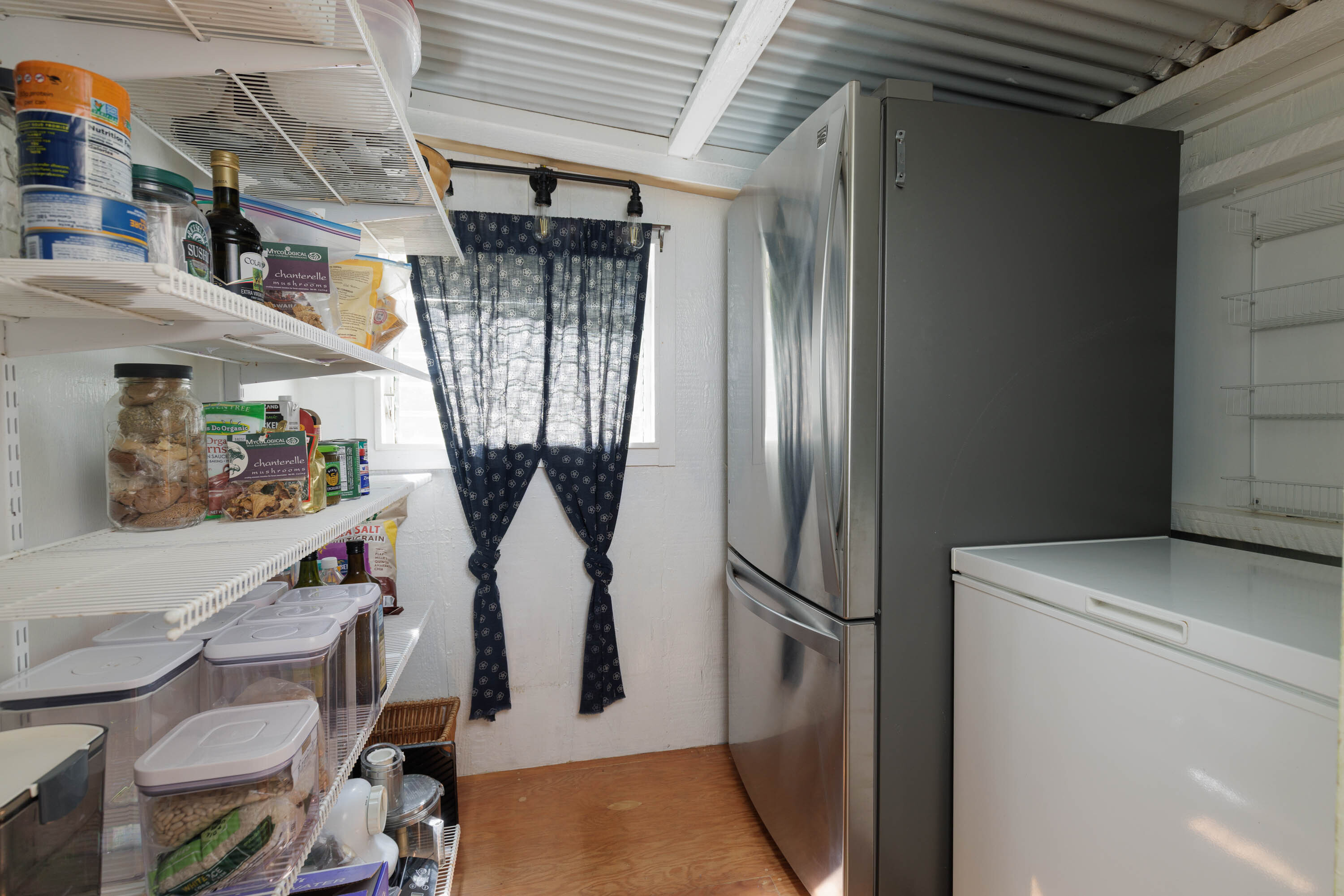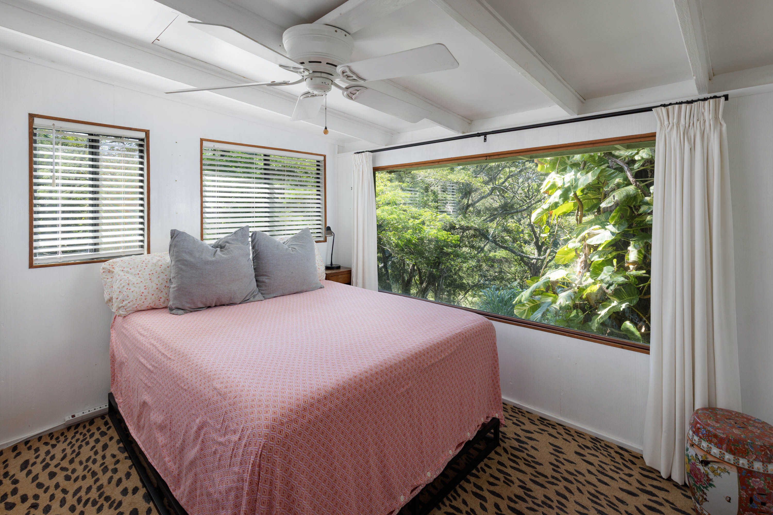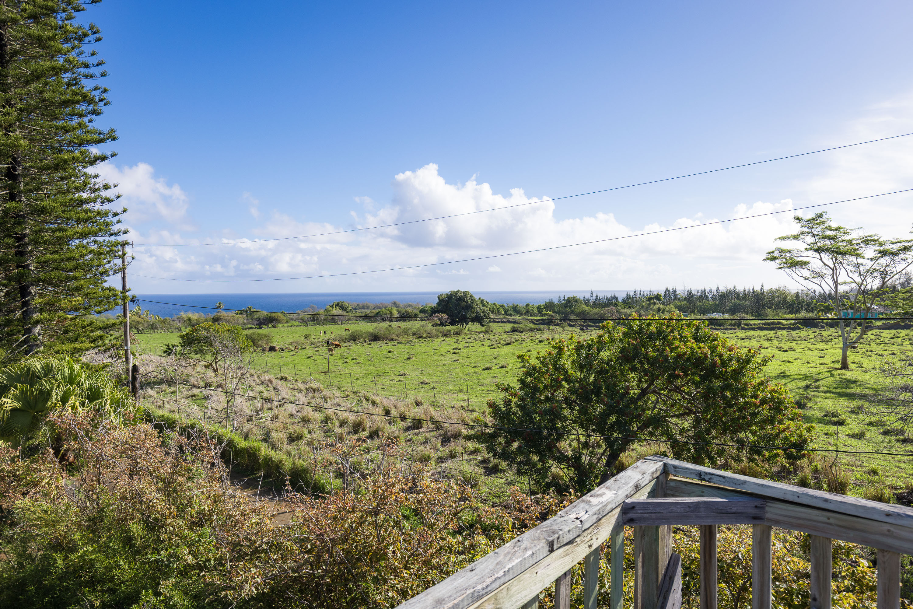 The living area, kitchen, bathroom, and primary bedroom have been recently remodeled while maintaining the home's plantation character. The living room features new antimicrobial carpet, steady cooling trade winds, and peekaboo ocean views. The property surrounding the home and overlooking the gulch is fully fenced, providing security and defined outdoor living space. The home is connected to county water, and the owners currently use Starlink internet; Hawaiian Telcom fiber optic is also available.