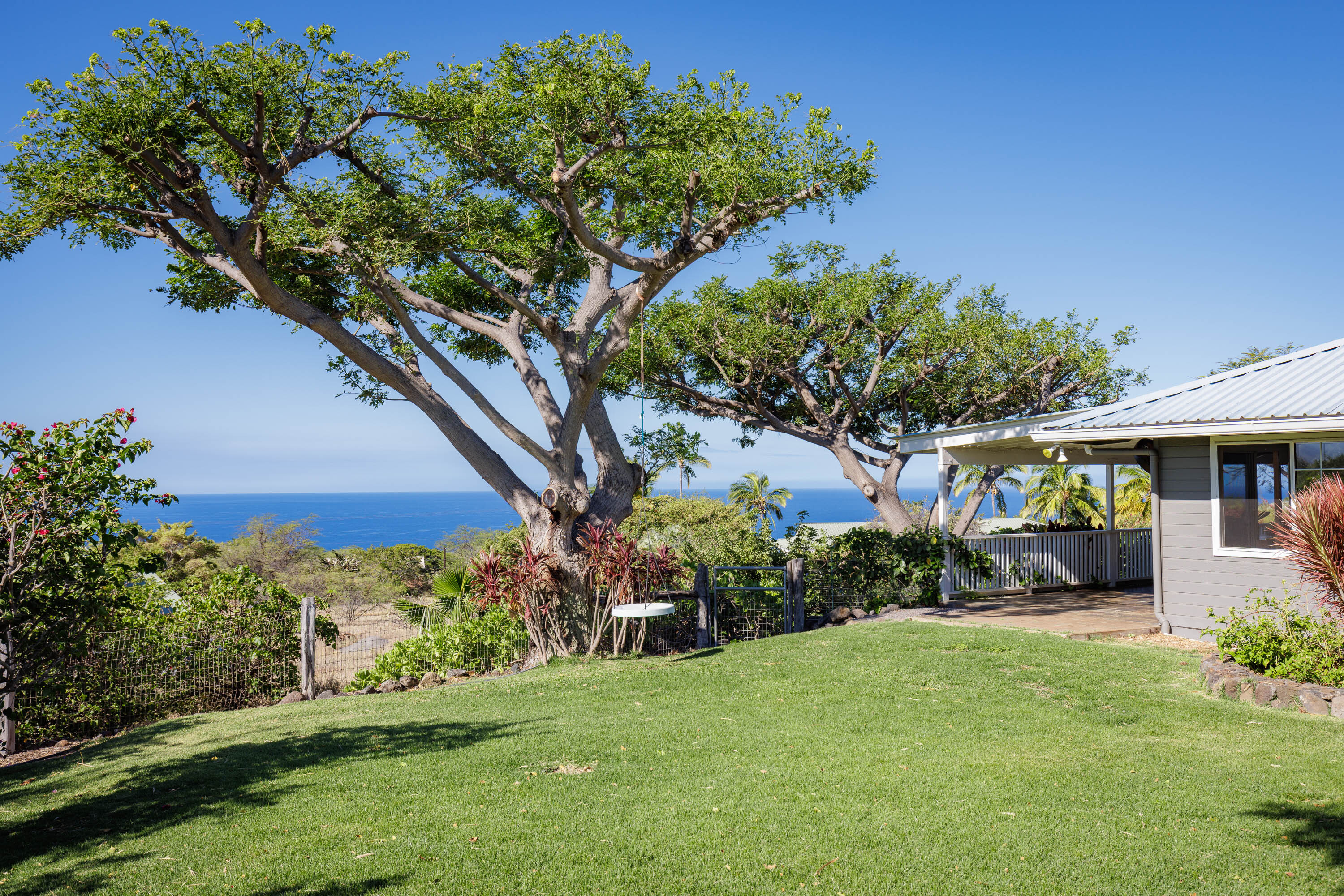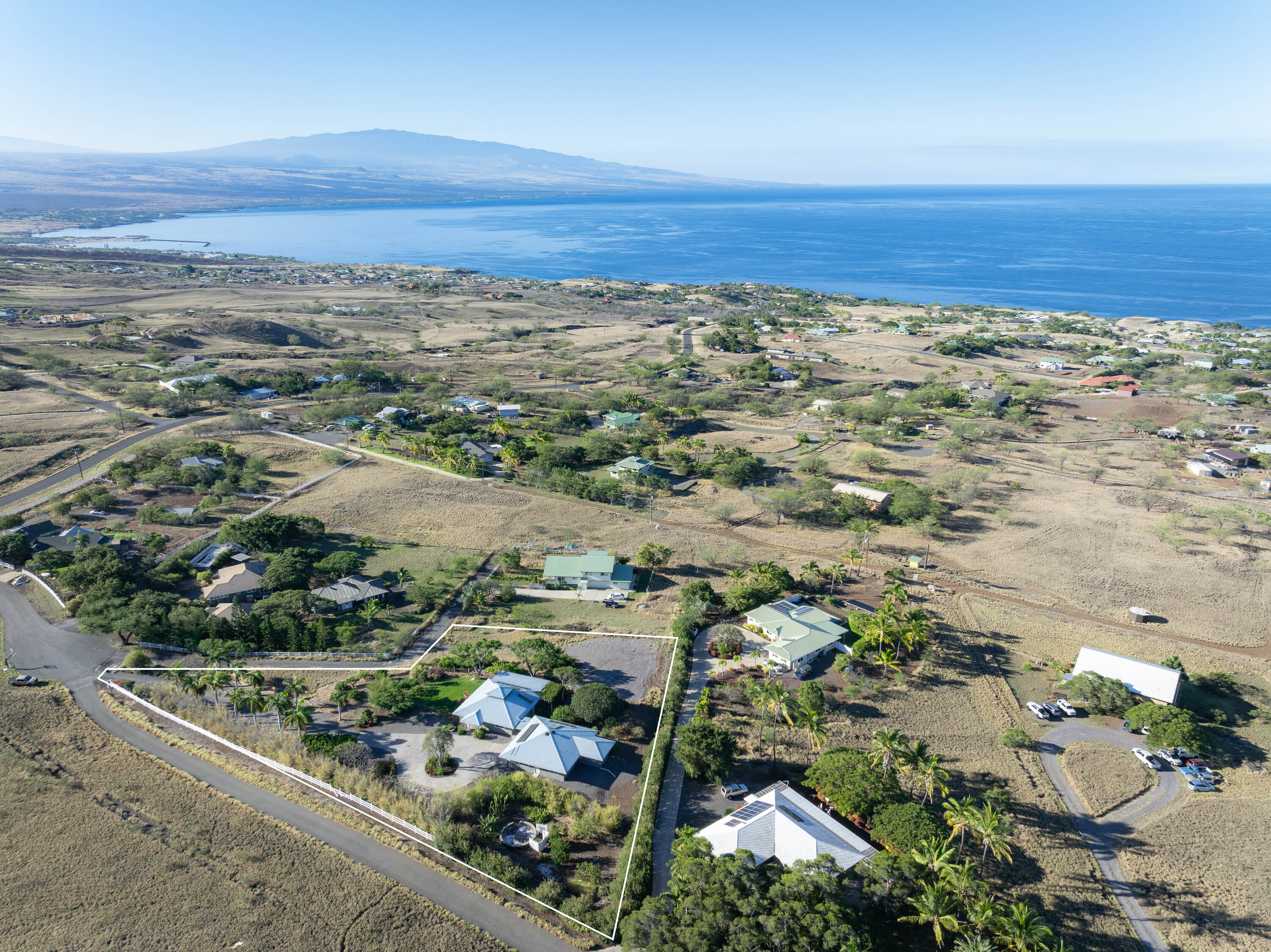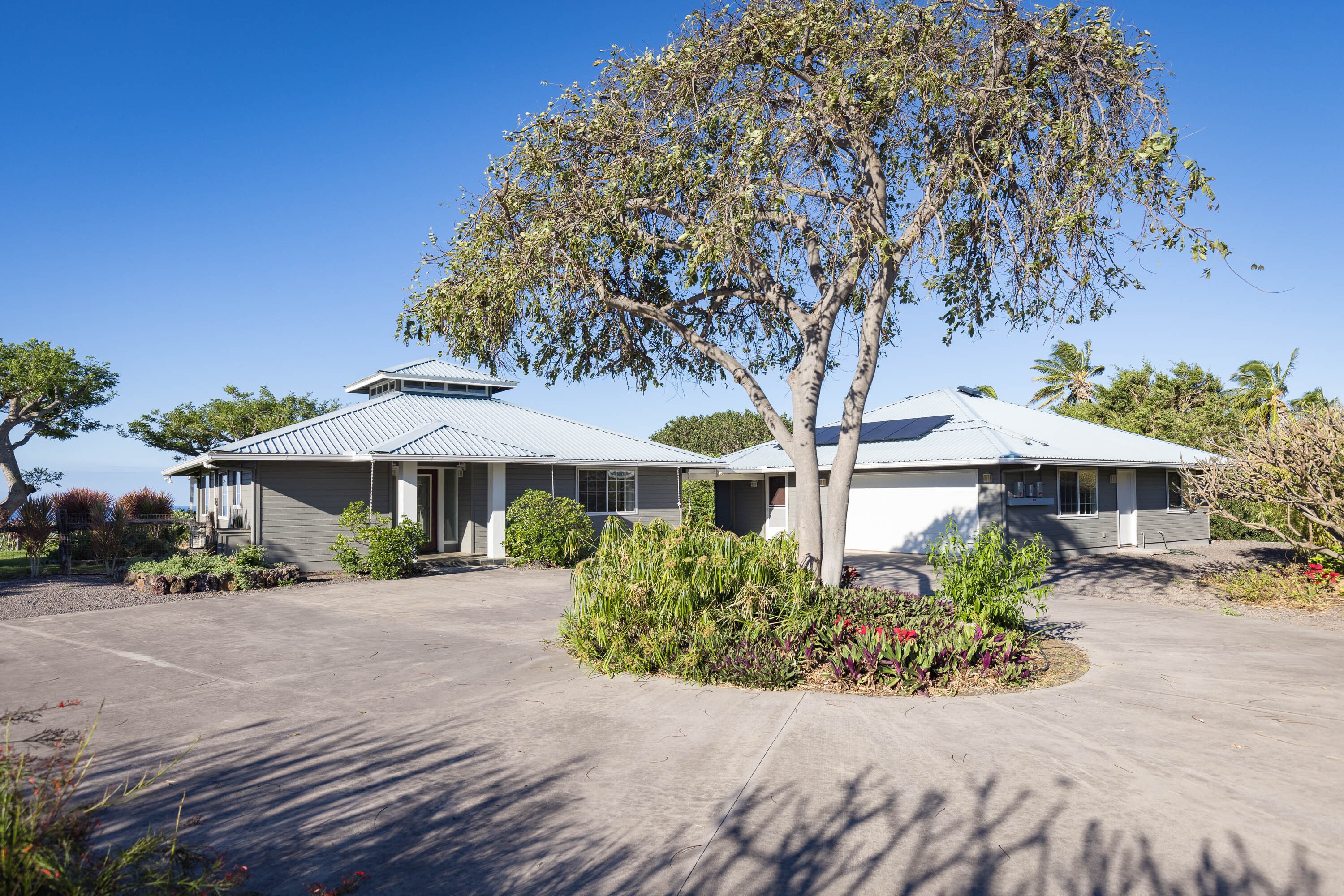 ENJOY THE BEST OF ISLAND LIVING: Rare, quality family home in desirable Kohala Estates with stunning wide-angle ocean and sunset views 365 days a year! PRIME LOCATION WEATHER-WISE with the islands best beaches (Hapuna, Mauna Kea, etc) 10-15 minutes away! Wonderful mountain views too – and early morning sunrises over the slopes of majestic Mauna Kea. Nestled between the luxury Kohala Ranch and Kohala By the Sea gated communities, Kohala Estates has no HOA fees. MUST SEE TO APPRECIATE: pride of ownership shows throughout this very well-maintained and updated island home. The private driveway, lined with mature Hawaiian Royal Palms, leads you to the 1999-built home with 2241 sf of living area. Fenced, shaded yard for pets. Mature landscaping adds beauty in all directions on 1.5-acres, with extra room for future projects, plantings, parking, structures, etc. Features include underground utilities, solar hot water, a 19-panel photo-voltaic system with 2 new Tesla batteries, etc. ADDITIONAL LIVING AREA: Main living area includes 2-beds/2-baths, loft, kitchen, and quality components throughout. And, the attached 2nd living area (mother-in-law) includes separate entrances, 2-beds/1-bath, and a kitchen area. Both living areas have large, private covered lanais to embrace 365-day ocean/sunset views. Both have separate laundry facilities and split air conditioning systems. Attached 2-car, 484 sf finished garage. MATURE FRUIT TREES: Enjoy a wide variety of fruits and producing fruit trees – orange (2), lemon (2), mango (2), papaya, tangerine, guava, banana, grapefruit, white pineapple, etc. Along with aloe vera, oregano, rosemary, green onion, basil, etc. ESCAPE TO PARADISE and embrace the good life and easy island living in Kohala Estates! Kawaihae Harbor 5 minutes away, along with nearby restaurants, golf, resorts, etc. Close to Waimea and Hawi Town. Kona International Airport (KOA) only 31 miles away.