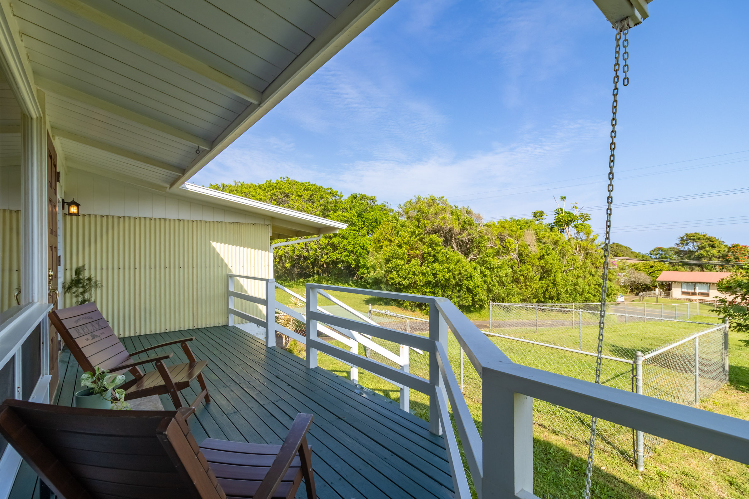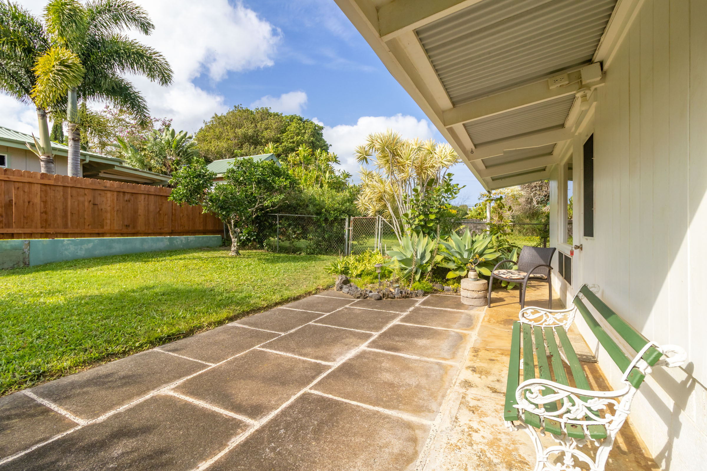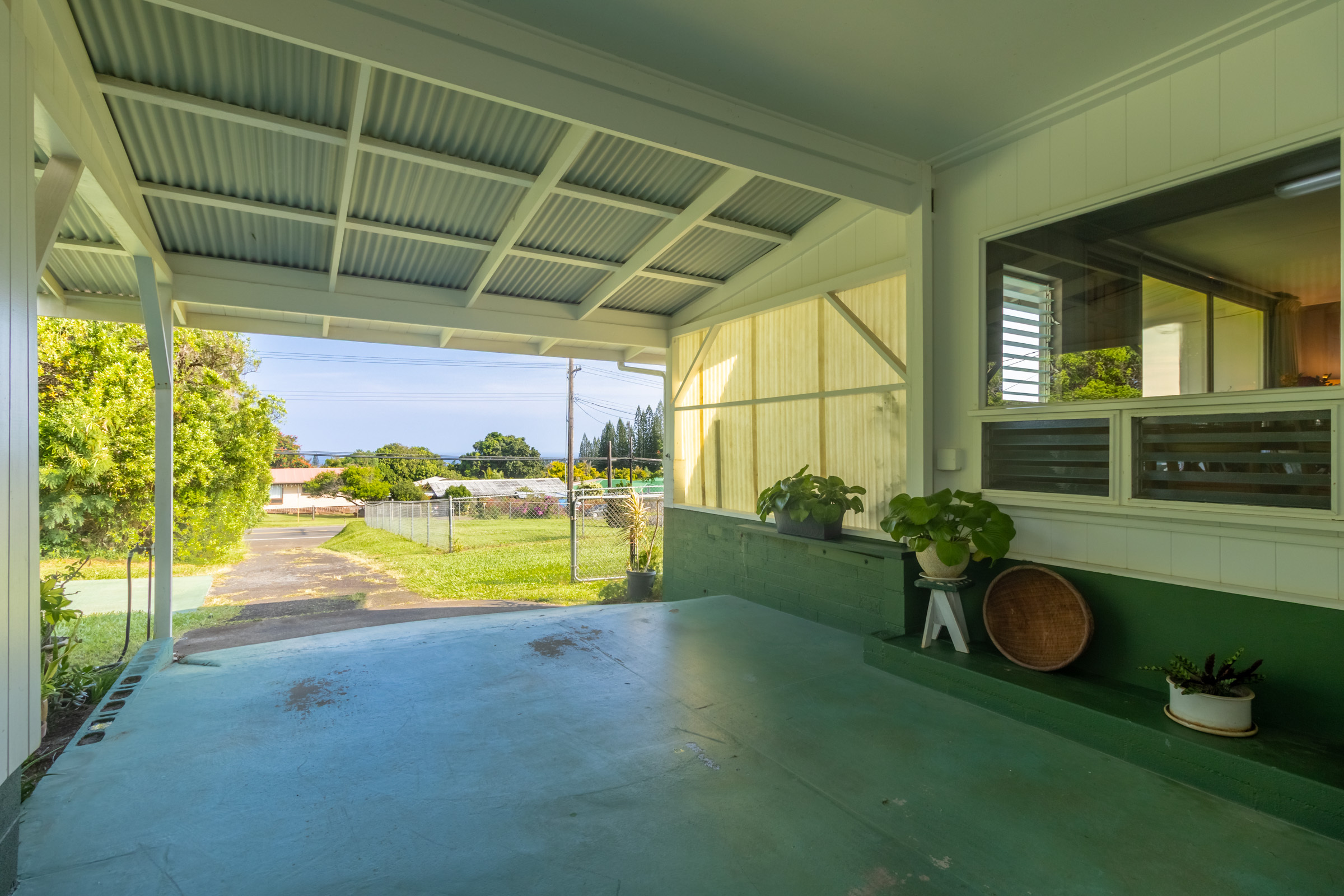 - Exterior: Enjoy the front lanai with partial ocean view. This home sits towards back of grassy lot on 1/3-acre providing ample outdoor space for gardening, potential expansion, or creating your own tropical oasis. Fully fenced yard.