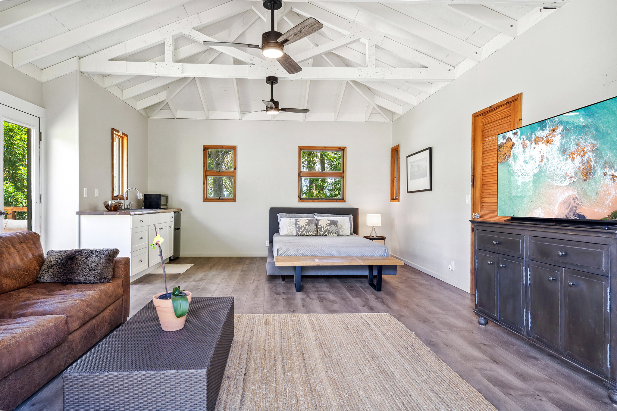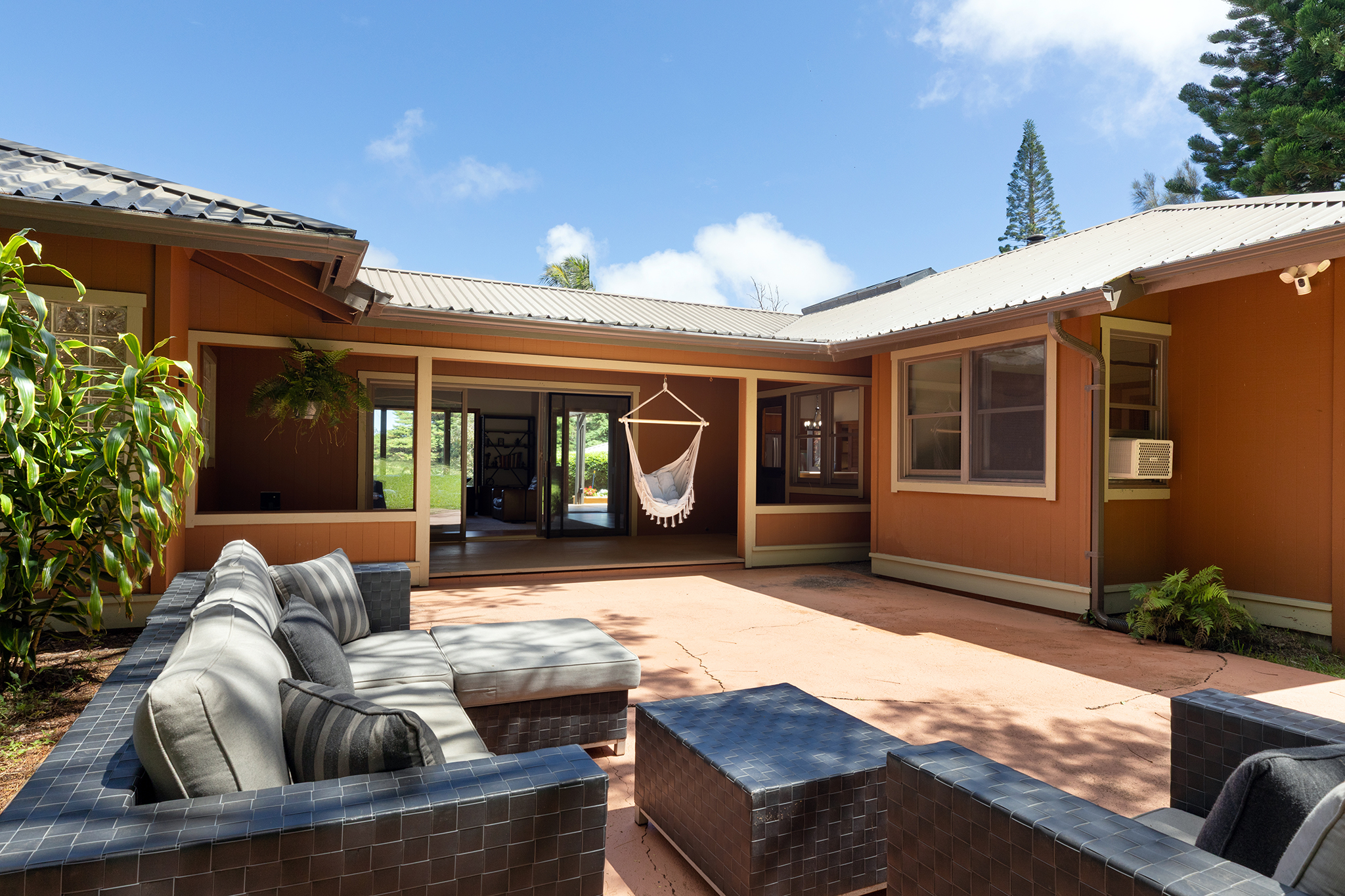 A separate guest suite, located on the opposite side of the garage from the house, is self-contained with bathroom, wet bar and its own ocean-view lanai. The two-car garage has two 220V plugs for charging electric vehicles, and generous built in shelving. A small office is attached to the garage.