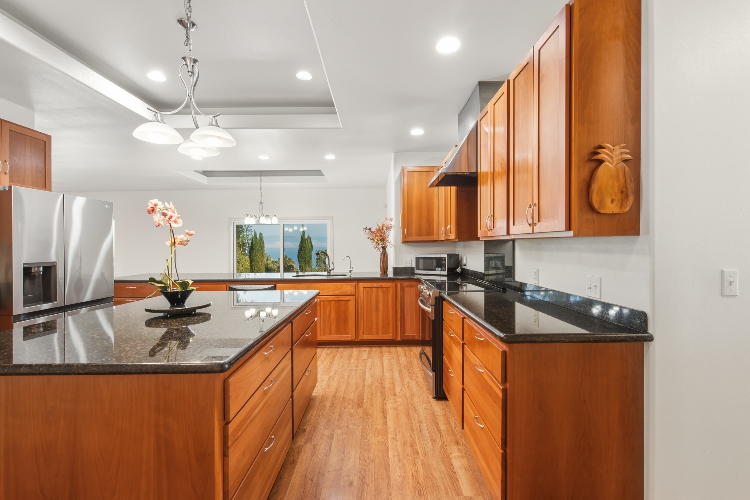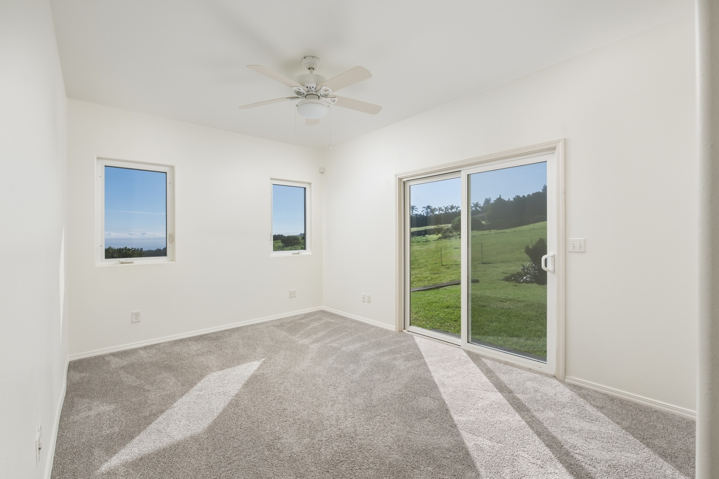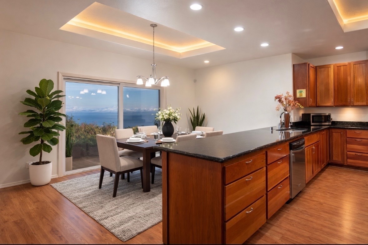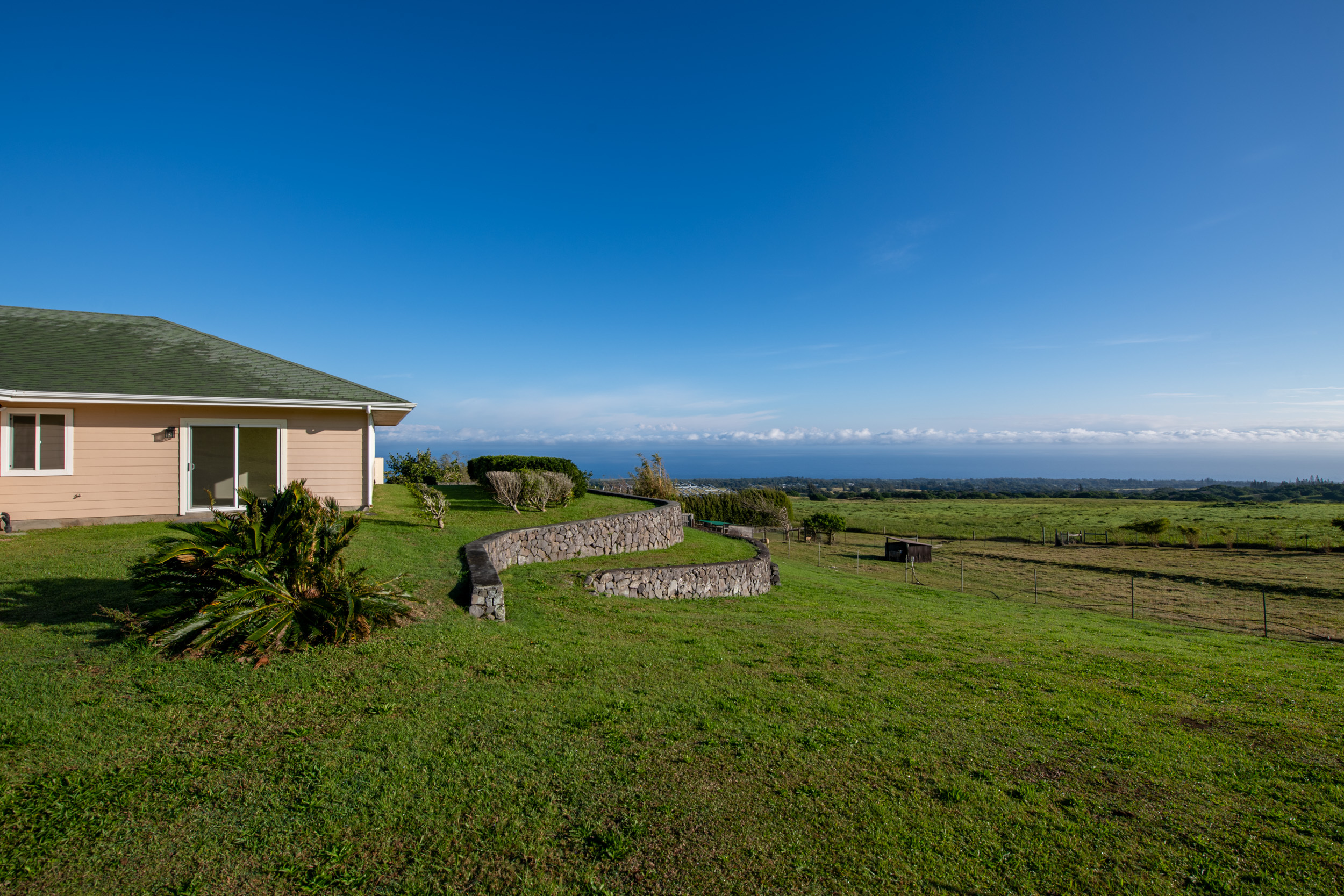 Stunning 2660 sf custom built home with expansive ocean views on 1.166 acres located in the Maliu Ridge subdivision on Big Island, Hawaii. This meticulously maintained home features 3 bedrooms, 2.5 bathrooms, plus a dedicated office with 2-car garage. FEATURES: >Ocean Views: Panoramic, sweeping ocean and coastline views from the house, lanai & yard. You can also see Maui. >Interior Features: Open concept living area with access to large, covered lanai, expansive windows to maximize natural light and views, spacious kitchen for the avid cook with island and pantry. Huge primary bedroom with walk-in closet, mini-split A/C. Primary ensuite features double sink, separate shower, jacuzzi tub & bidet. Dedicated office & a mud room off the garage. Whole house central vacuum plus fold down ladder to attic storage. There is a designated billiard table area with equipment & chairs included. >Exterior Features: Large, covered lanai, ideal for indoor-outdoor island living & entertaining. 1.166 acres of terraced, usable land with sheep currently grazing. Fully fenced yard with separate pasture. >Additional Features: Underground utilities, 28 solar panels owned, dual electric/ solar water heater, whole home centralized vacuum system, under mount water filtration system in kitchen, alarm system with voice & monitoring capability by Alert Alarm. >Recent improvements: new carpets in bedrooms and office, all new ceiling light fixtures, all new sink faucet fixtures in all bathrooms, HVAC has brand new motor and fan (outside unit). Kohala Elementary, Middle and High Schools are nearby. Hawaii Preparatory Academy & Parker School are both great schools in Waimea. KOA School K-12 private is also a favorite nearby. Shopping, restaurants, Kohala Hospital, and many other services all within 5-10 minute drive. Easy shoreline access and beach parks also within an easy drive from home.