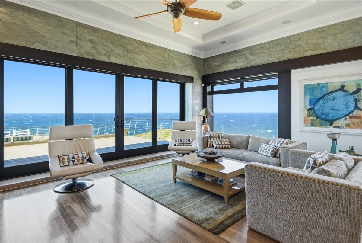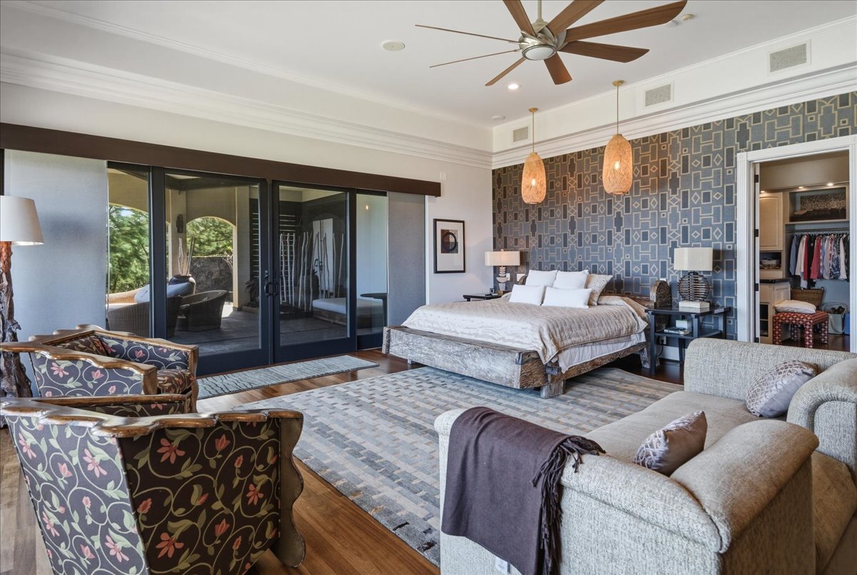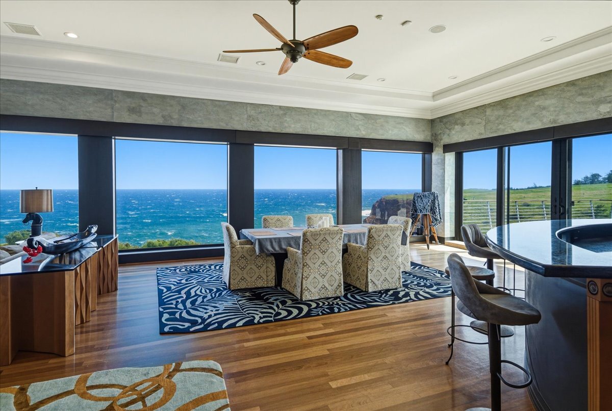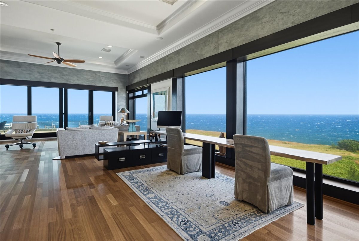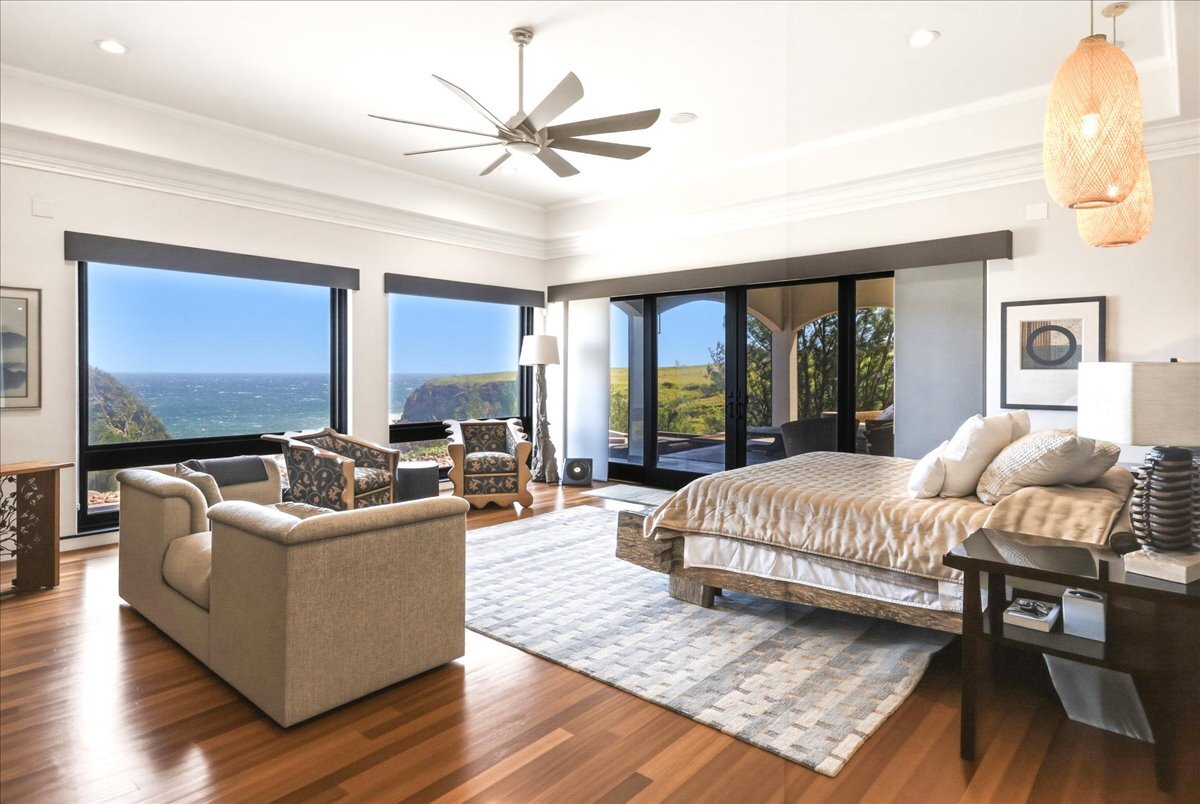 There is oceanfront property - and there is exceptional oceanfront living. From this North Hawai?i estate home on 20+ acres overlooking a half-mile of dramatic coastline to the west and a gulch with a small stony beach on its eastern boundary, you can: ? watch sunrise and sunset, moonrise and moonset, and frequent rainbows ? enjoy over 180 degrees of ocean view, Maui rising across the channel, and the Kohala mountains and historic valleys sheltering from behind ? watch whales breaching up close in season, cruise ships passing in the distance, ?iwa and koa‘e kea soaring overhead ? glimpse cows and horses grazing in nearby pastures ? feel the serenity of the rural North Kohala location, with restaurants, boutiques, services and farm-to-table agriculture only a few miles away. The gracious home of nearly 10,000 sq ft was built in 2005 but has been almost completely renovated inside and out since 2018. Offering both warmth and privacy for extended family or visiting friends, its generous proportions and thoughtful floor plan with multiple living spaces are equally perfect for entertaining at scale. The owners have hosted magical musical evenings for dozens of guests from the community. The kitchen, main living areas, and one guest bedroom are on the second floor. Ascend the grand spiral staircase from the foyer, or bring groceries directly from garage to kitchen and butlers pantry via a commercial grade elevator. The primary bedroom suite, three additional guest bedrooms, secondary living room and lanai are located on the ground floor. The primary bedroom features a seating area, an oversized walk in closet with custom cabinetry, and a large en suite bath with ocean view tub and shower. The attached private lanai area features seating and punee (daybeds), an outdoor shower, and a hot tub to enjoy on starry nights. Furnishings and art were carefully selected to enhance the sense of place; most are available for sale.