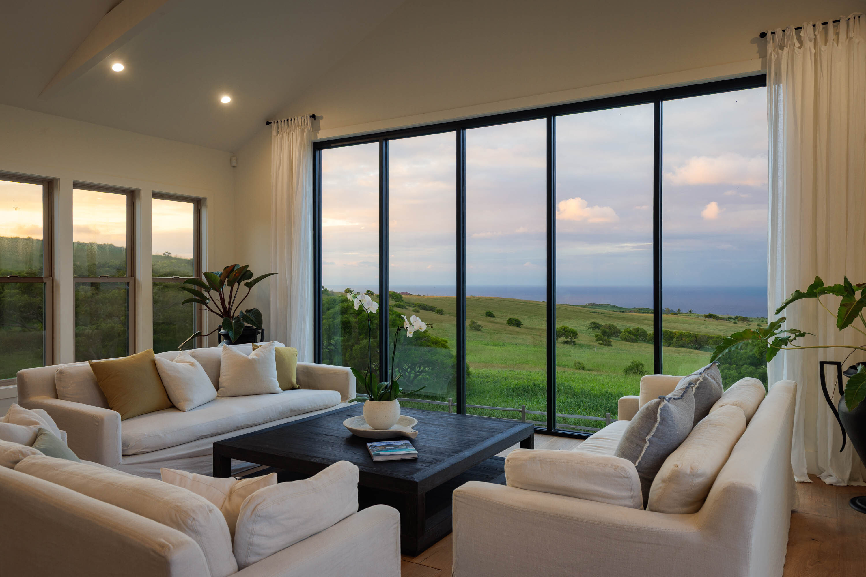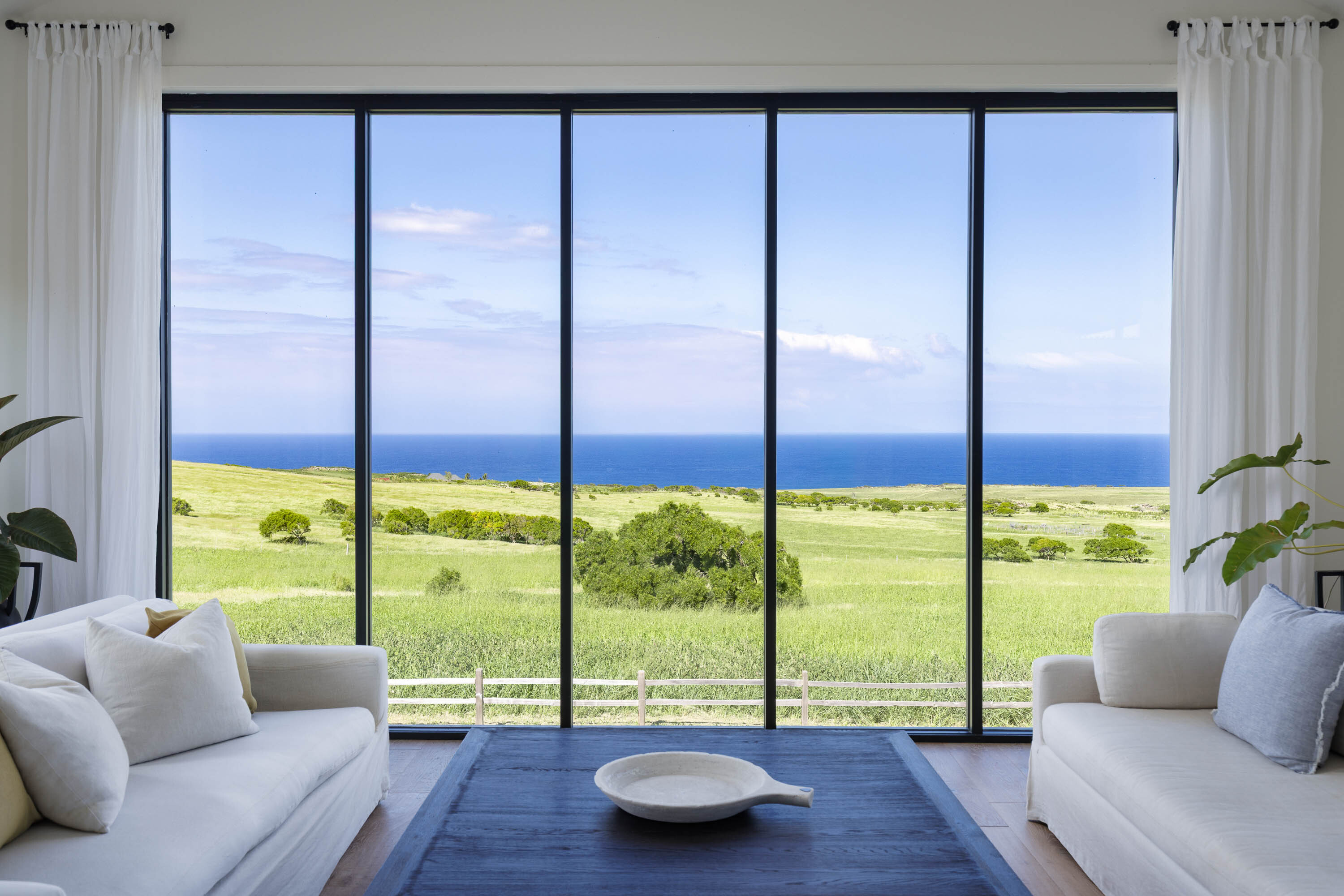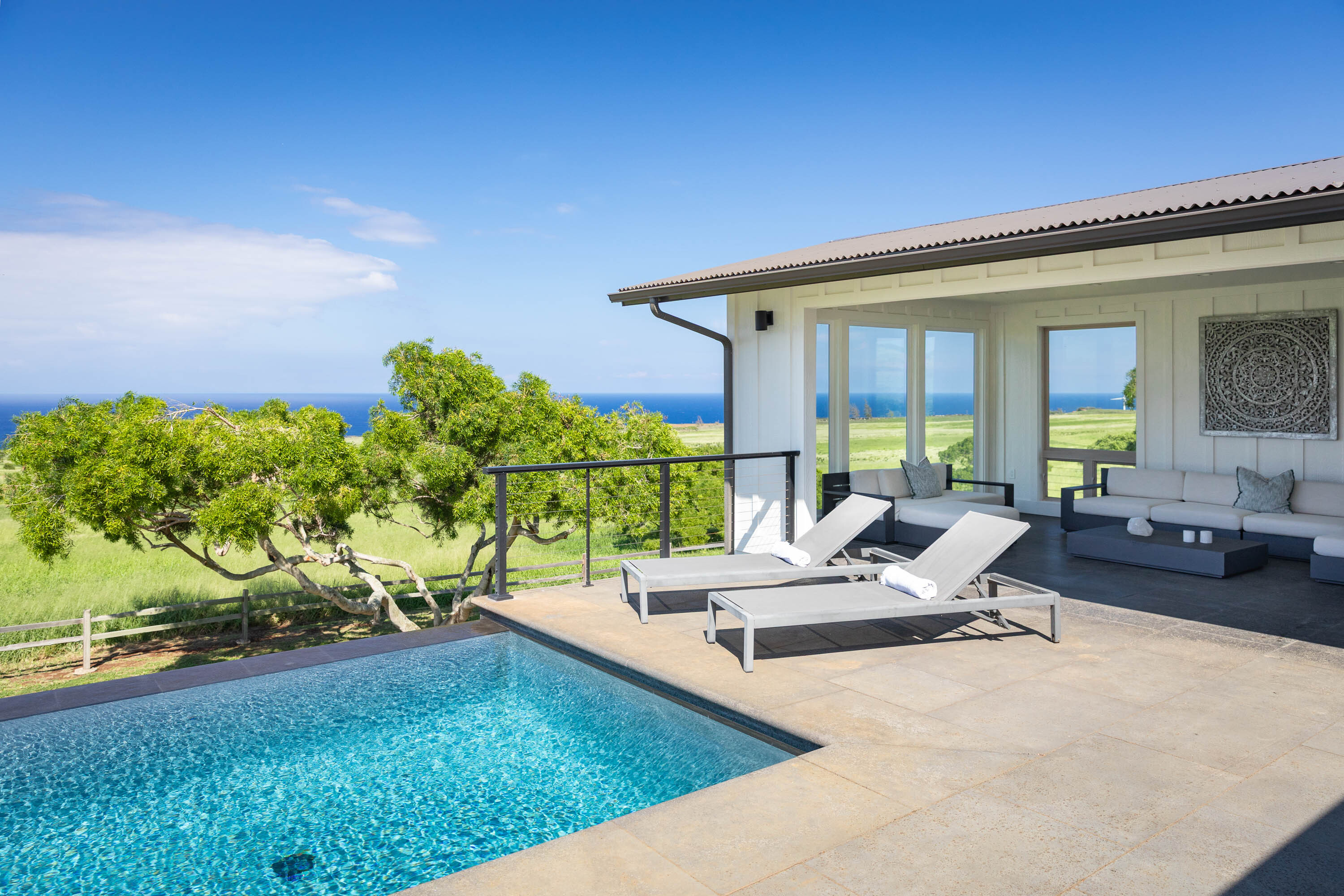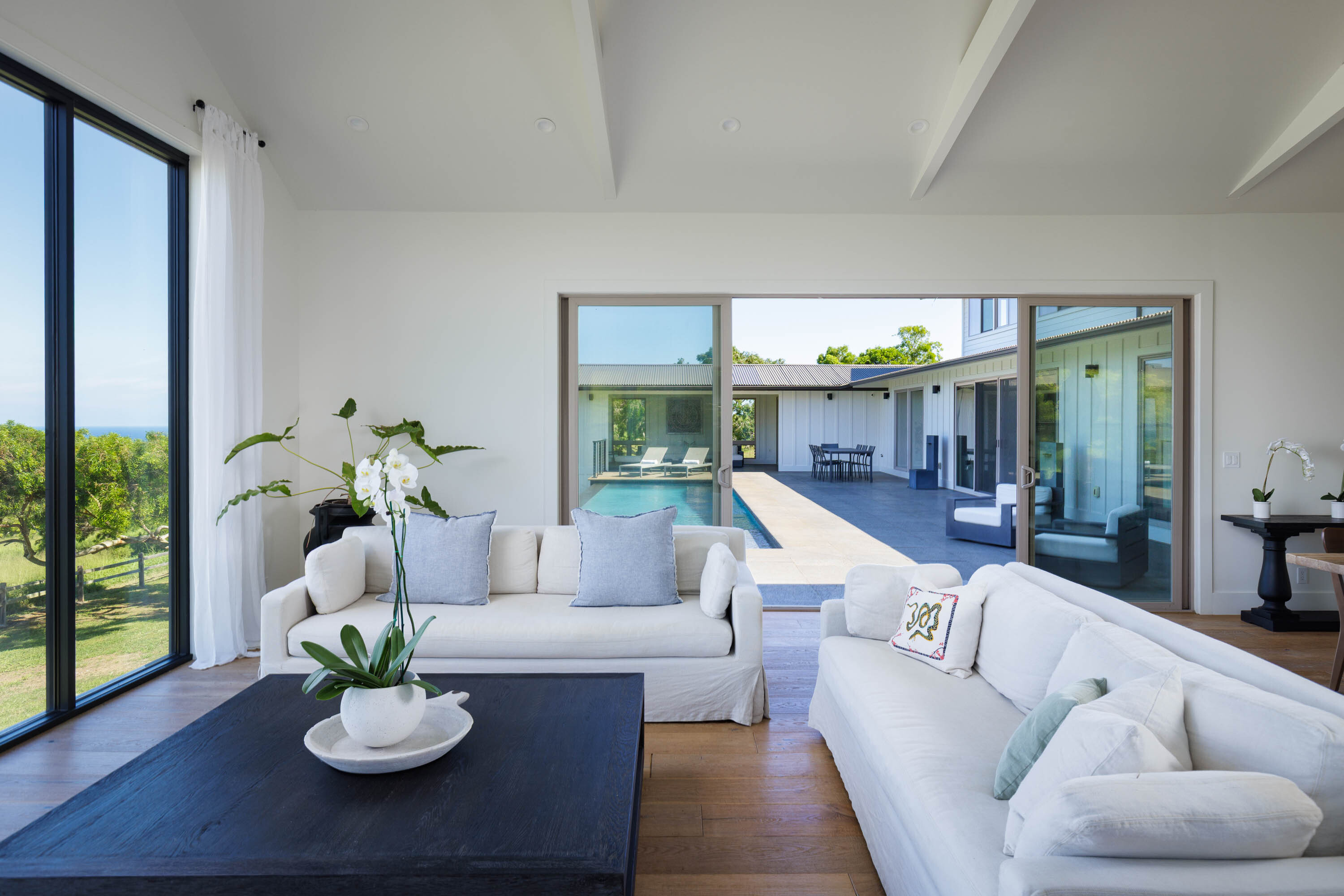 Set upon 20 private acres, this modern farmhouse enjoys sweeping 180 degree views of Maui and the Pacific, where migrating whales can be seen from the living spaces as they grace the horizon. The remodeled five bedroom, five and a half bath layout includes two private entry guest suites, each with its own wet bar and kitchenette. All bedrooms feature ensuite bathrooms with luxurious spa-like showers. A fully heated infinity pool overlooks the ocean, framed by expansive shaded areas for relaxed lounging and effortless entertaining.