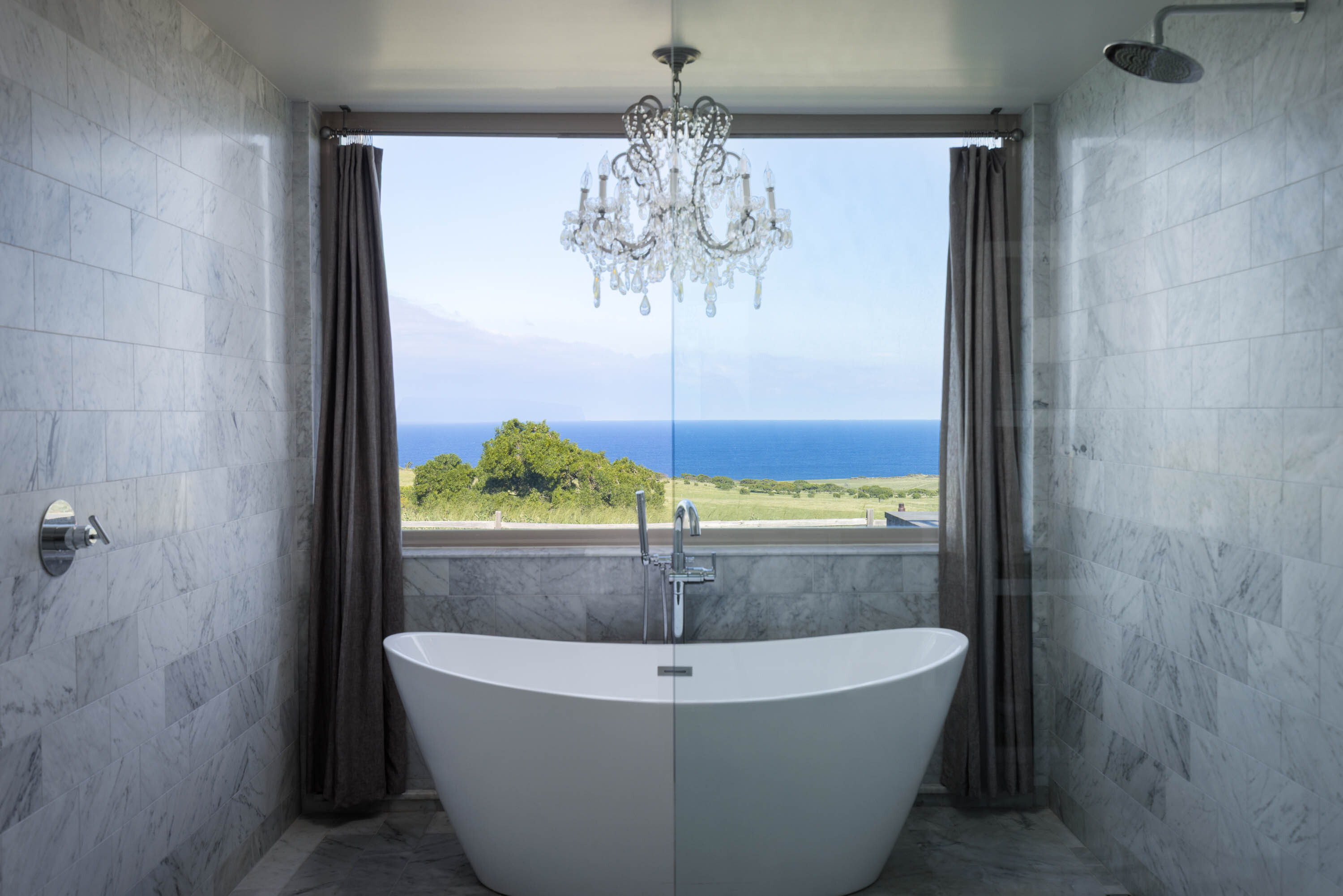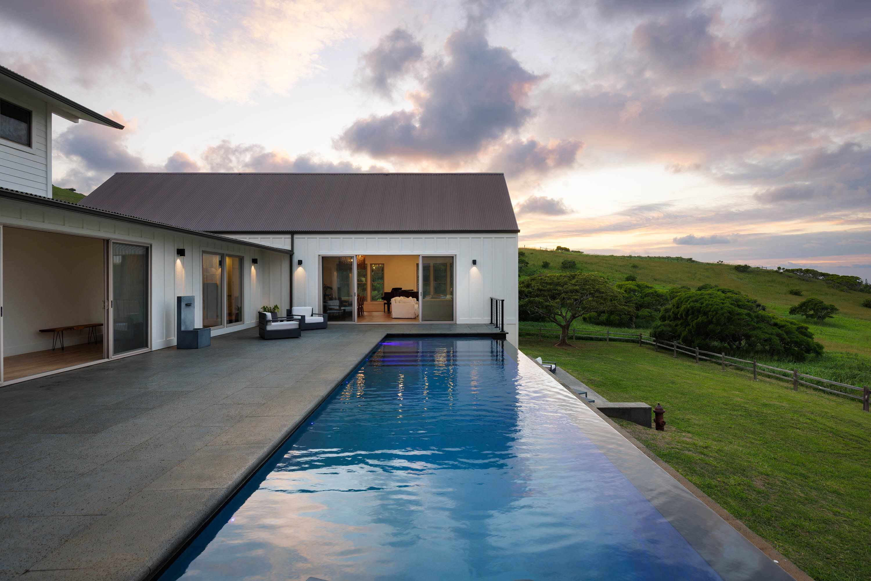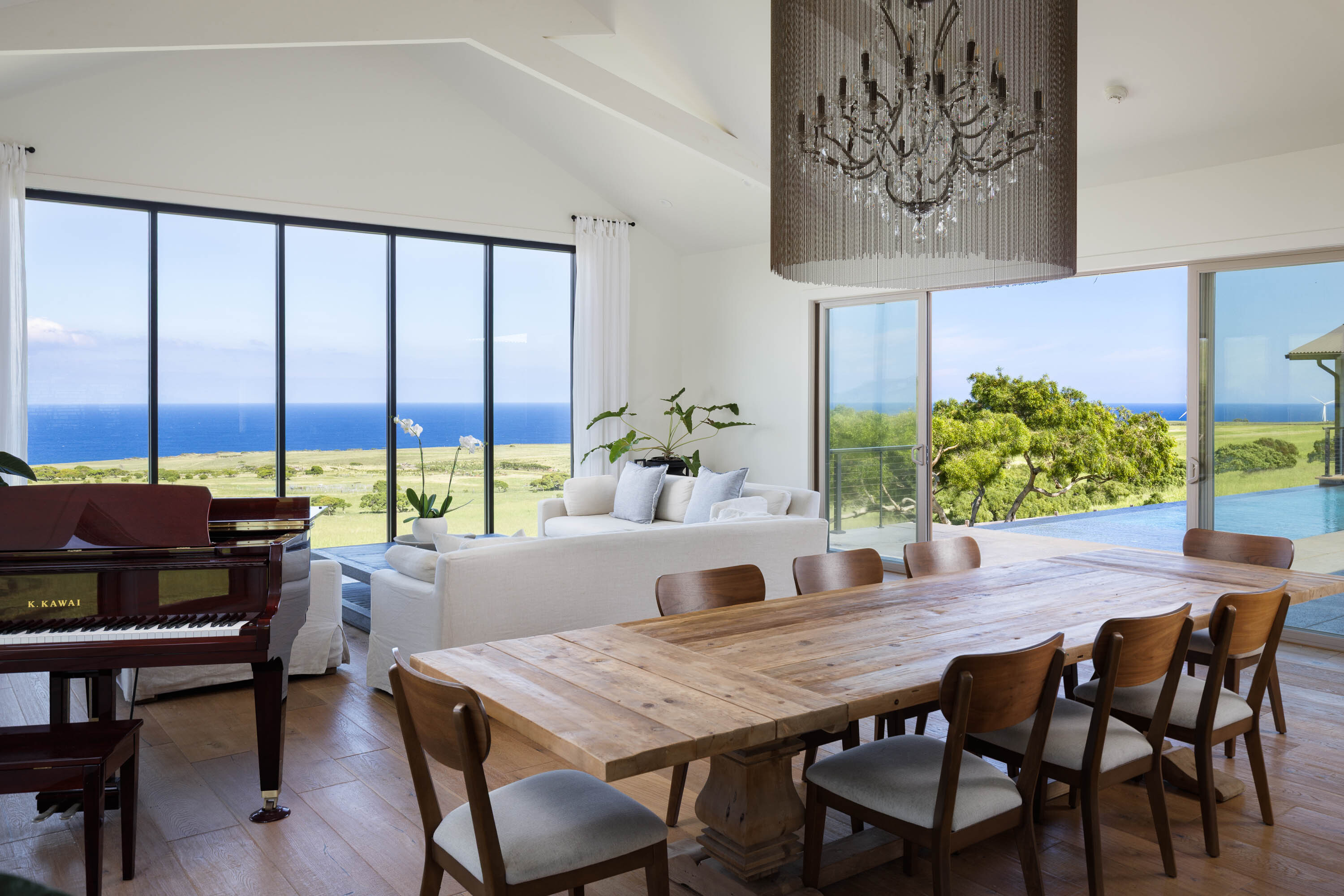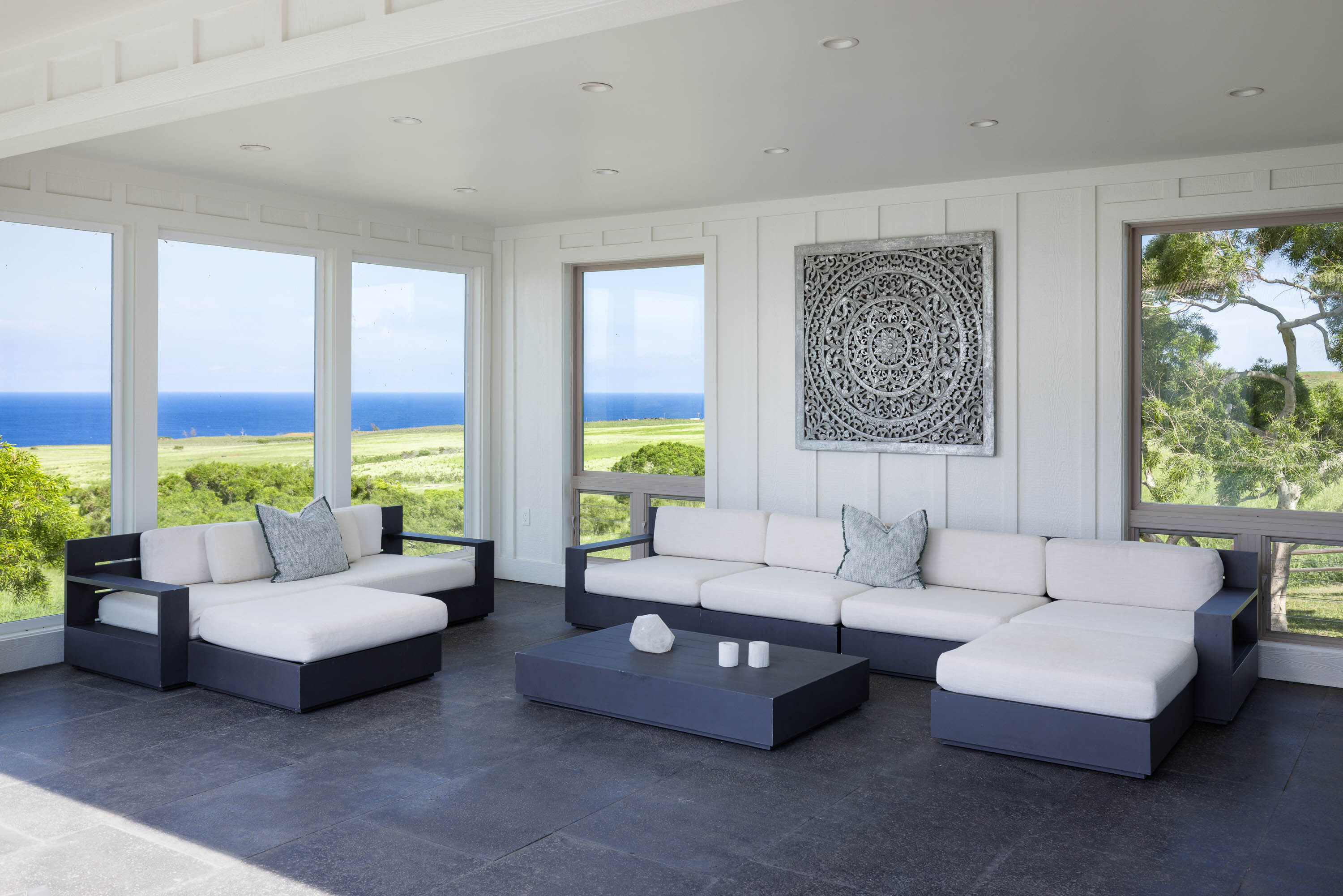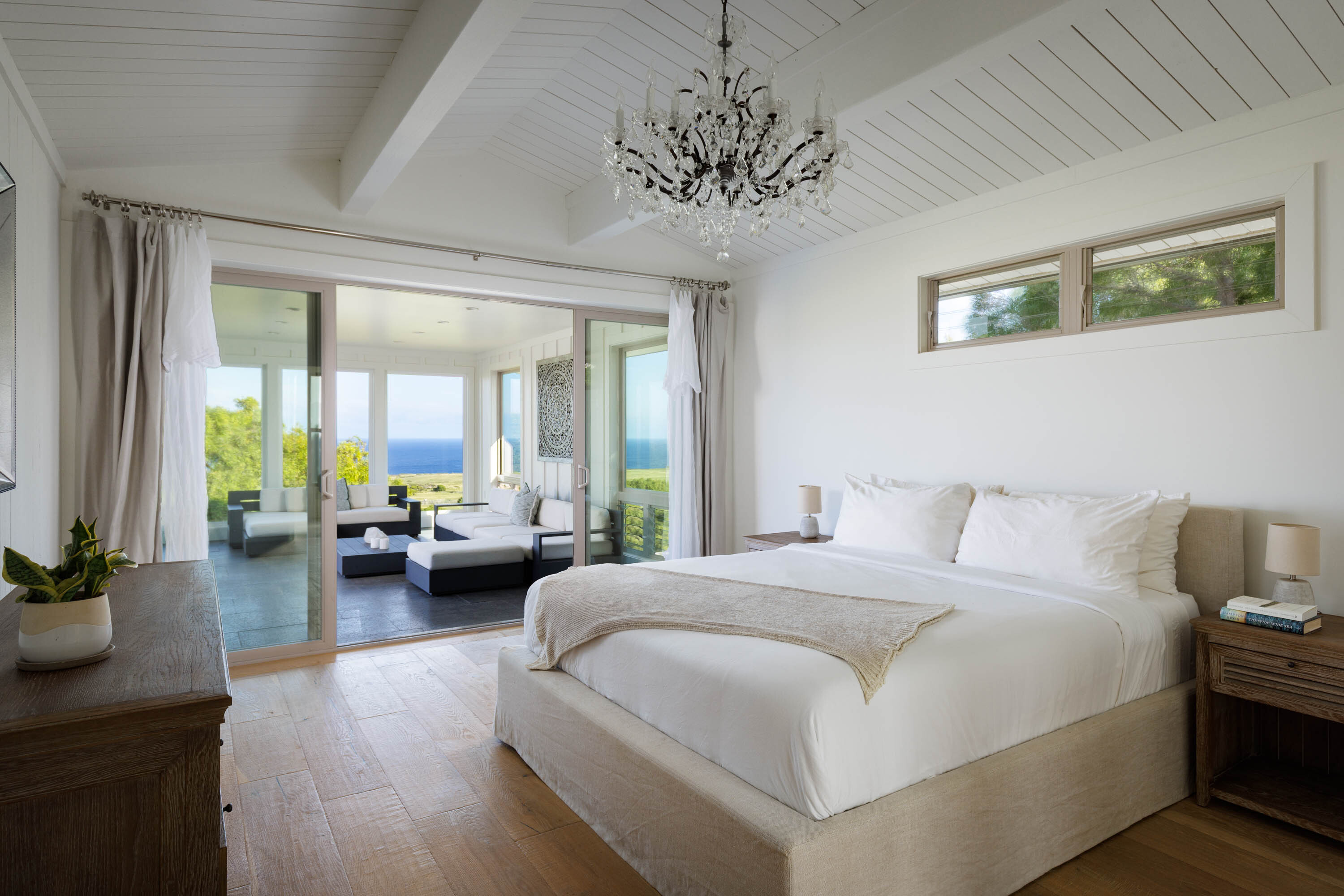Set upon 20 private acres, this modern farmhouse enjoys sweeping 180 degree views of Maui and the Pacific, where migrating whales can be seen from the living spaces as they grace the horizon. The remodeled five bedroom, five and a half bath layout includes two private entry guest suites, each with its own wet bar and kitchenette. All bedrooms feature ensuite bathrooms with luxurious spa-like showers. A fully heated infinity pool overlooks the ocean, framed by expansive shaded areas for relaxed lounging and effortless entertaining.