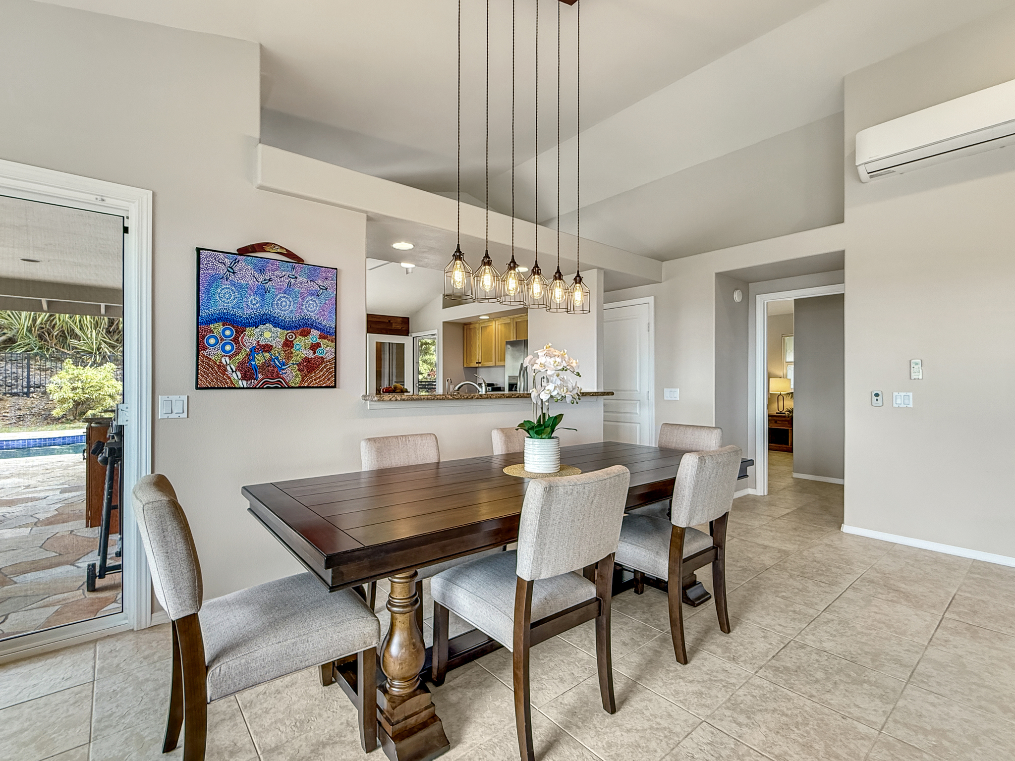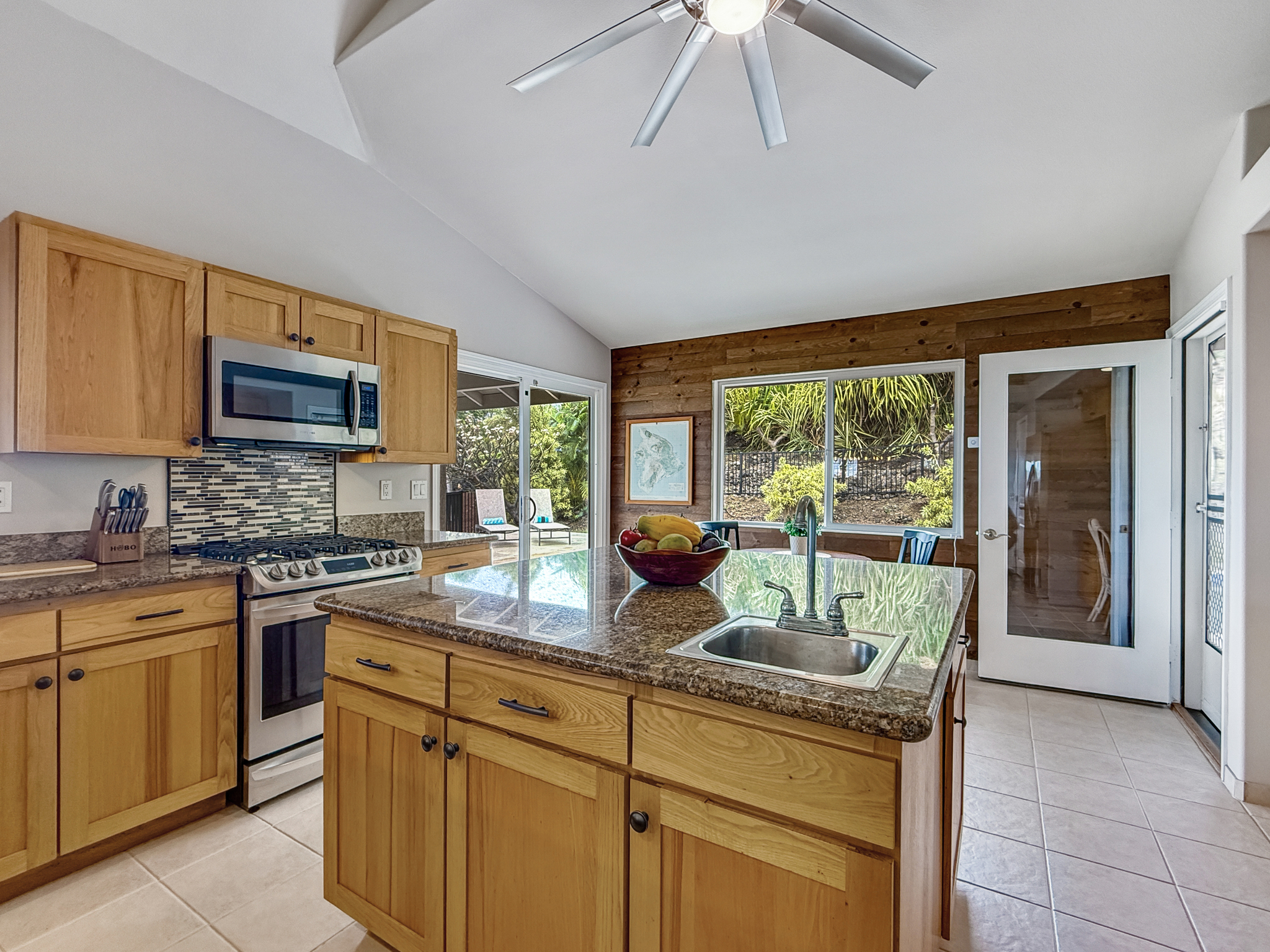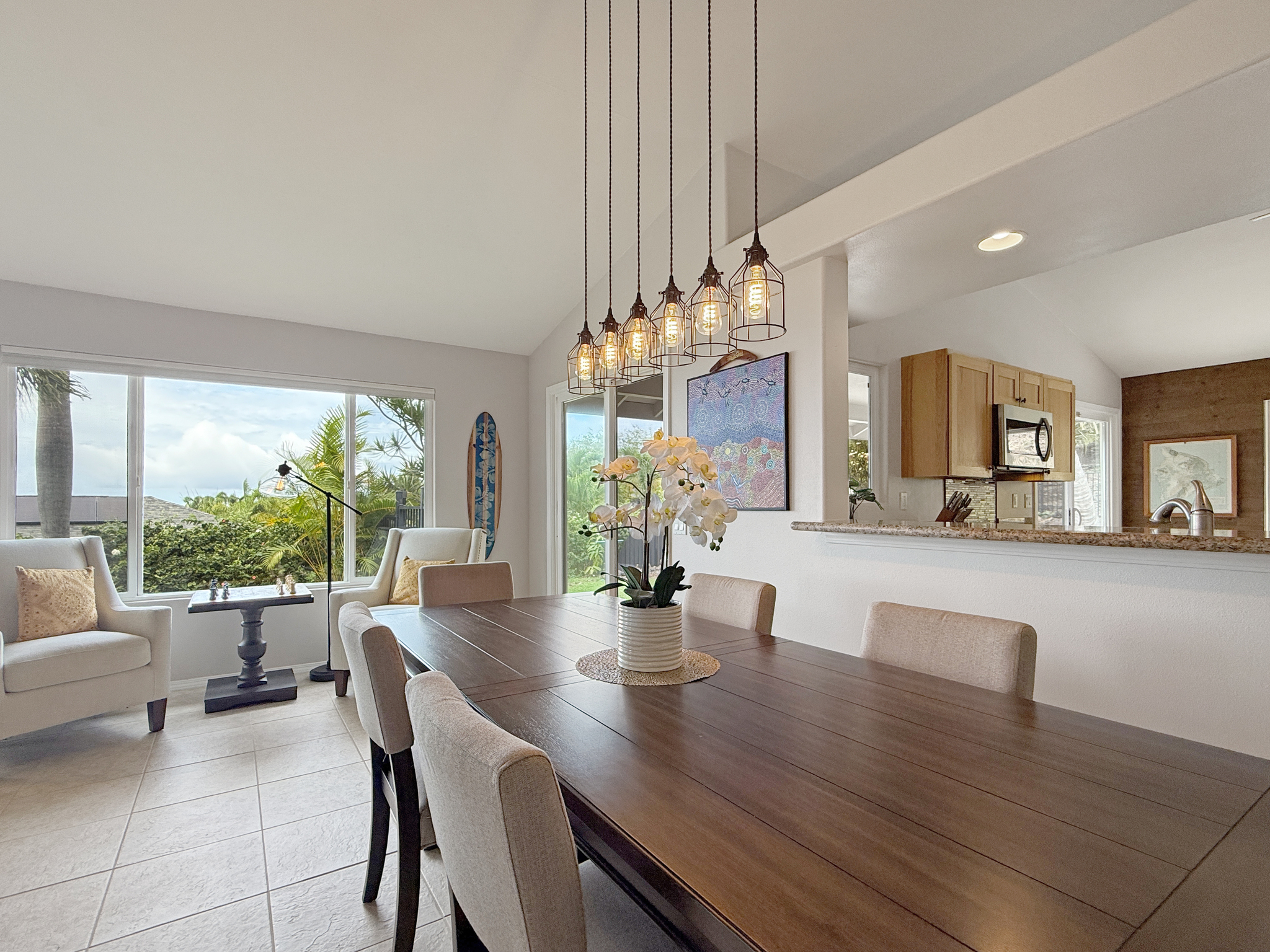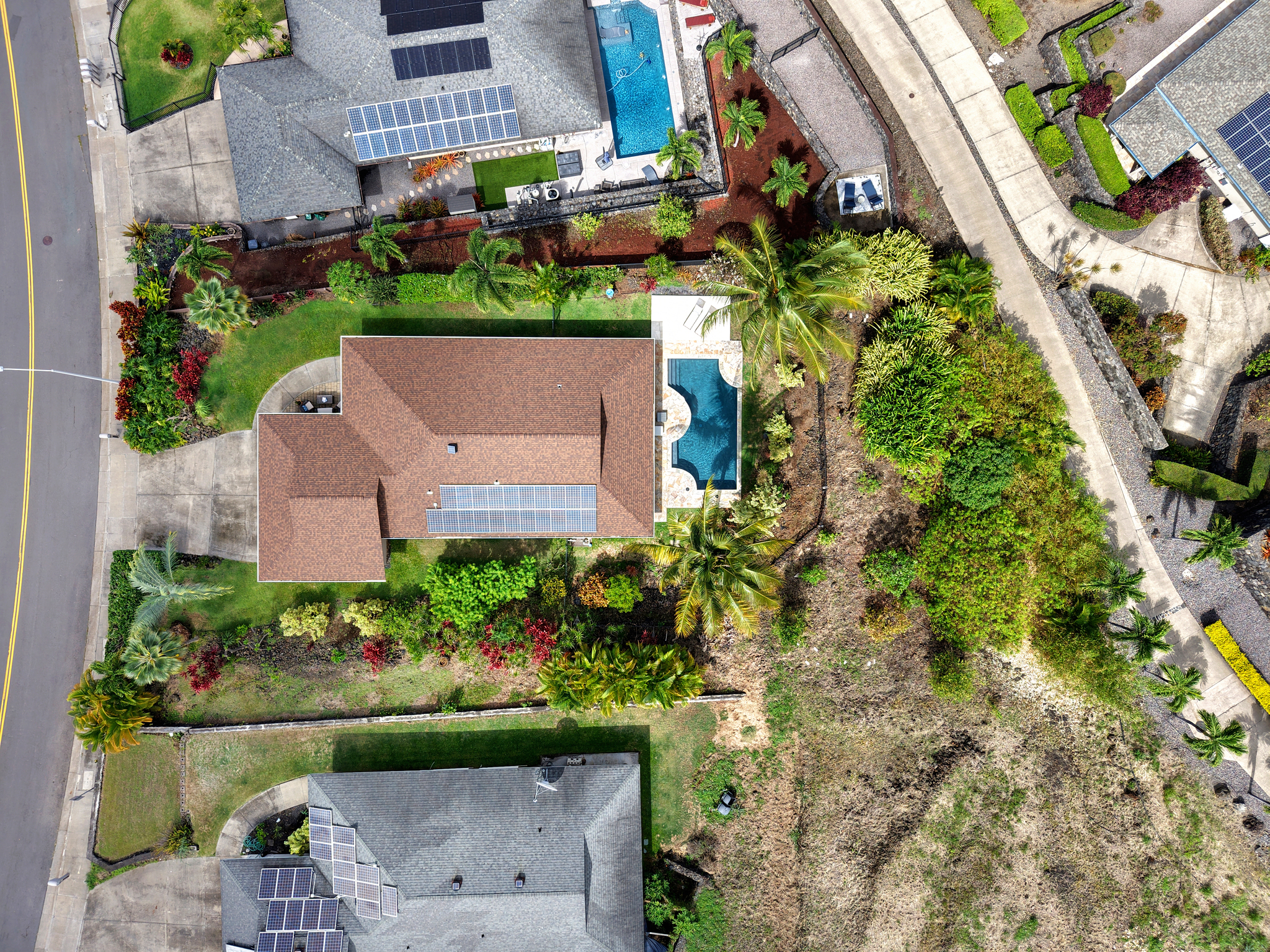 Enjoy comfortable living in this private, well-kept Ali'i Heights home with a backyard oasis and ocean view! The rear yard features a refreshing pool surrounded by quartzite decking and an abundance of "buffer space" from many of the neighboring properties. With covered lanai space, plus grassy spaces & nooks, there's an abundance of room for outdoor relaxation and entertaining. Although it's unlikely you'll grow tired of the gorgeous outdoor spaces, you can retreat to the interior of the home which features a large living room and kitchen with an island...both with airy, vaulted ceilings. Other features include: - Leased photovoltaic system with 21 panels and net metering - Ductless A/C units in the central area plus two bedrooms - New shingles (replaced June 2025) - Shaker-style kitchen cabinets - Solid granite countertops in the kitchen and both bathrooms - Ceramic tile throughout (one bedroom w/carpet) - Separate mud room/laundry room - 3-car garage - Fully-fenced side and rear yards - Vaulted ceilings in almost every room Located in a one of Kailua Kona's most desired neighborhoods, the property is just one-half of a mile from Ali'i Drive...within walking distance of the ocean. It's less than a mile to Magic Sands Beach Park where you can surf, swim or relax on the sand. And shopping and restaurants are just minutes away at Keauhou Shopping Center or in downtown/central Kona.