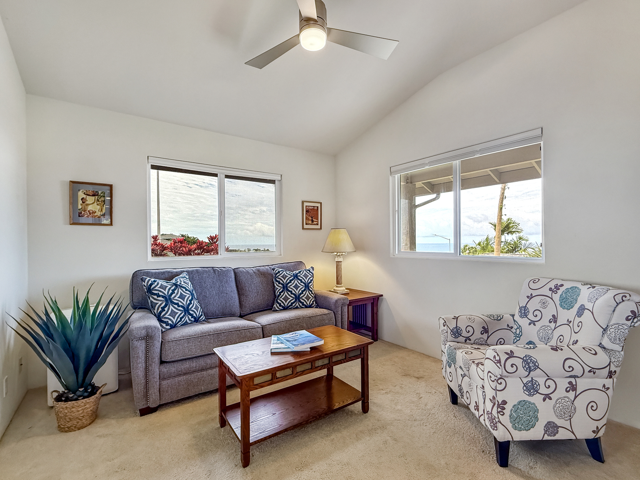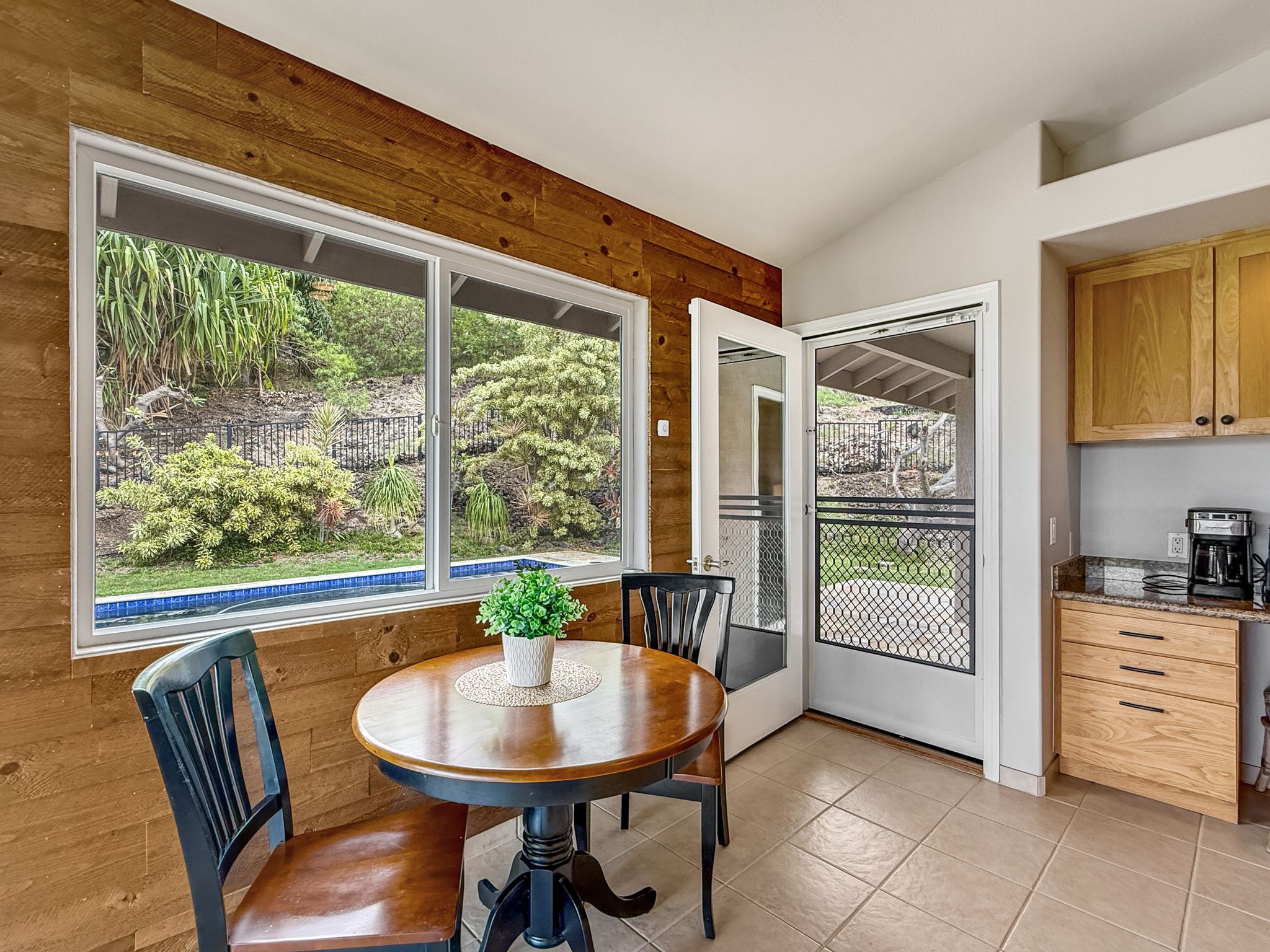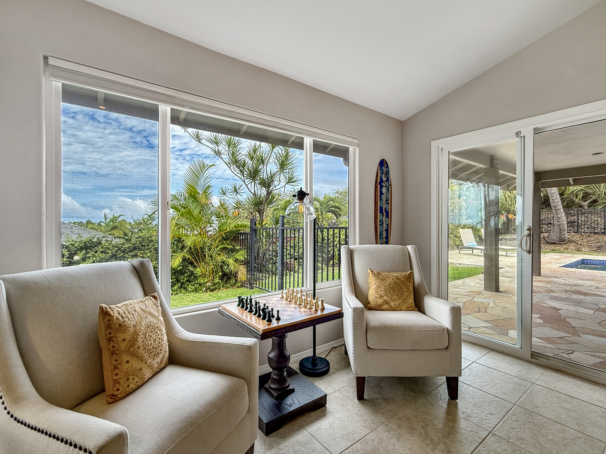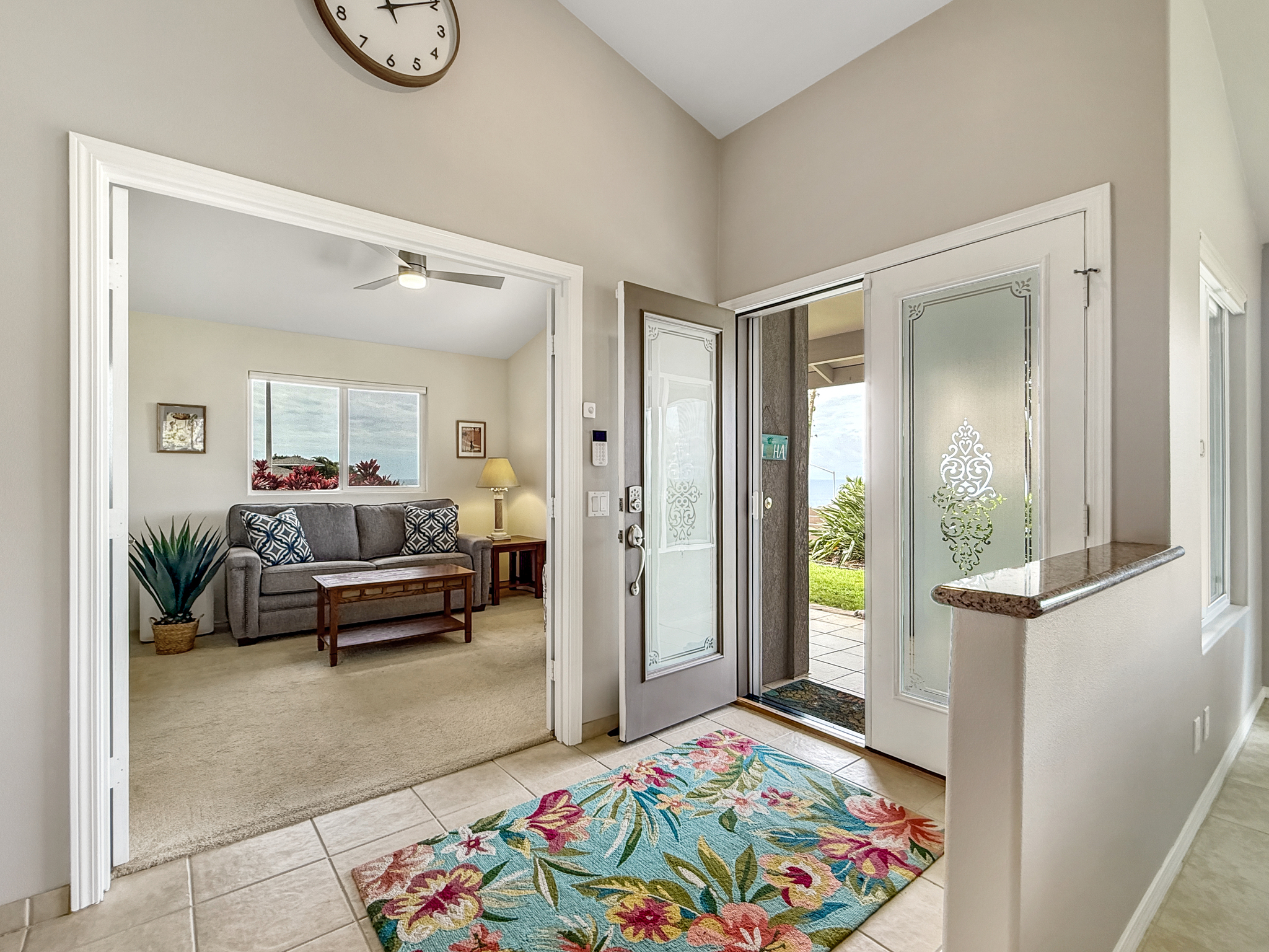 Enjoy comfortable living in this private, well-kept Ali'i Heights home with a backyard oasis and ocean view! The rear yard features a refreshing pool surrounded by quartzite decking and an abundance of "buffer space" from many of the neighboring properties. With covered lanai space, plus grassy spaces & nooks, there's an abundance of room for outdoor relaxation and entertaining. Although it's unlikely you'll grow tired of the gorgeous outdoor spaces, you can retreat to the interior of the home which features a large living room and kitchen with an island...both with airy, vaulted ceilings. Other features include: - Leased photovoltaic system with 21 panels and net metering - Ductless A/C units in the central area plus two bedrooms - New shingles (replaced June 2025) - Shaker-style kitchen cabinets - Solid granite countertops in the kitchen and both bathrooms - Ceramic tile throughout (one bedroom w/carpet) - Separate mud room/laundry room - 3-car garage - Fully-fenced side and rear yards - Vaulted ceilings in almost every room Located in a one of Kailua Kona's most desired neighborhoods, the property is just one-half of a mile from Ali'i Drive...within walking distance of the ocean. It's less than a mile to Magic Sands Beach Park where you can surf, swim or relax on the sand. And shopping and restaurants are just minutes away at Keauhou Shopping Center or in downtown/central Kona.