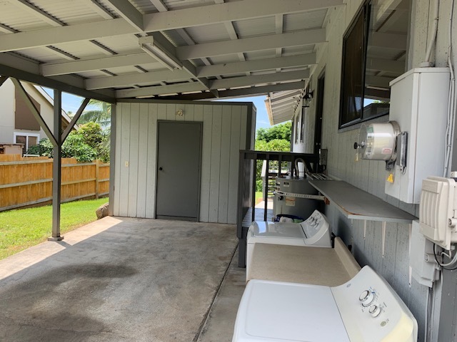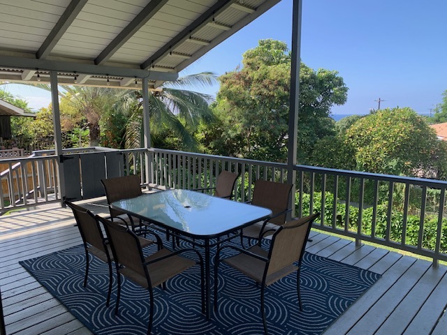 ~Large covered deck overlooking the back yard with peek-a-boo ocean view