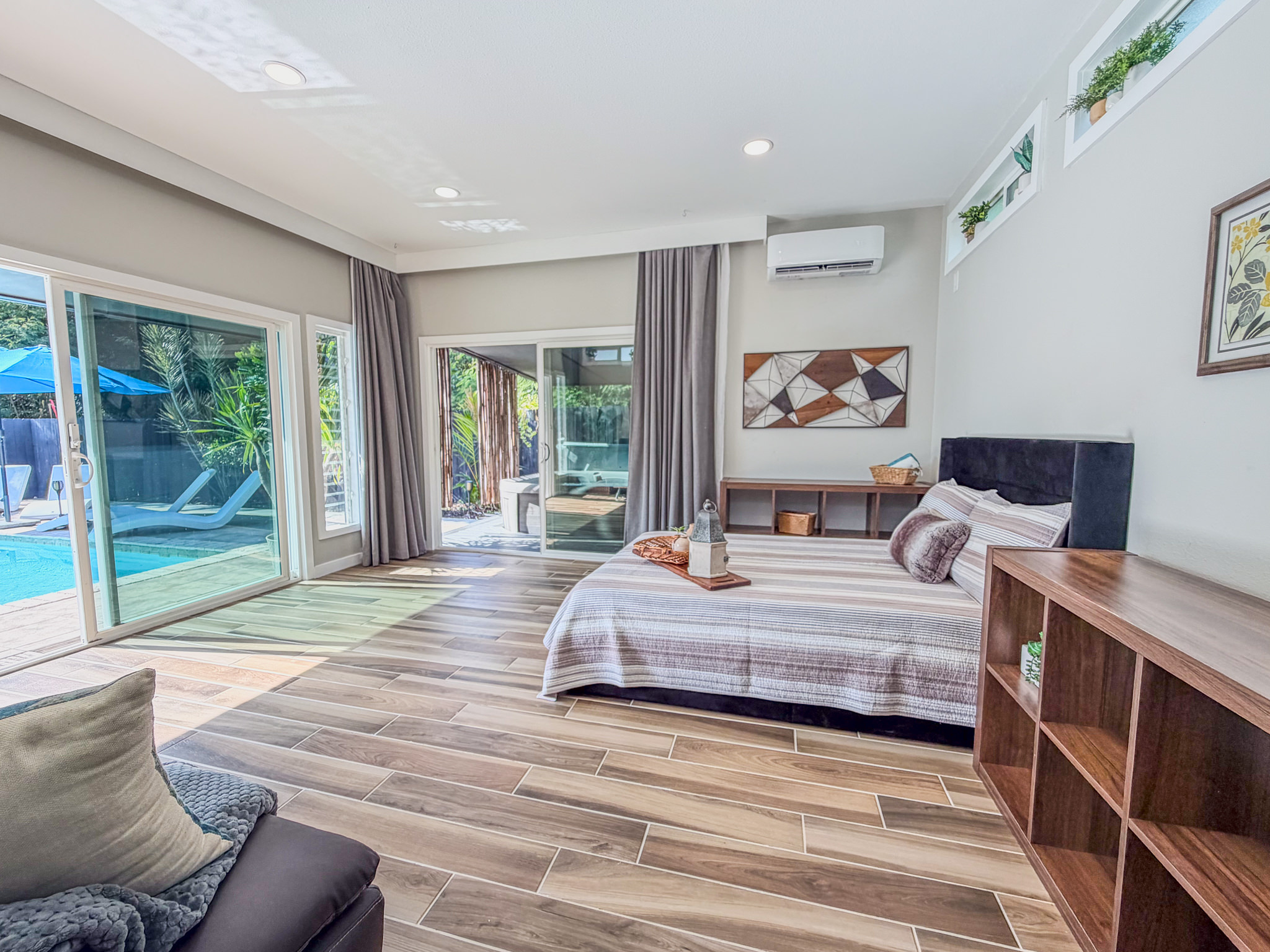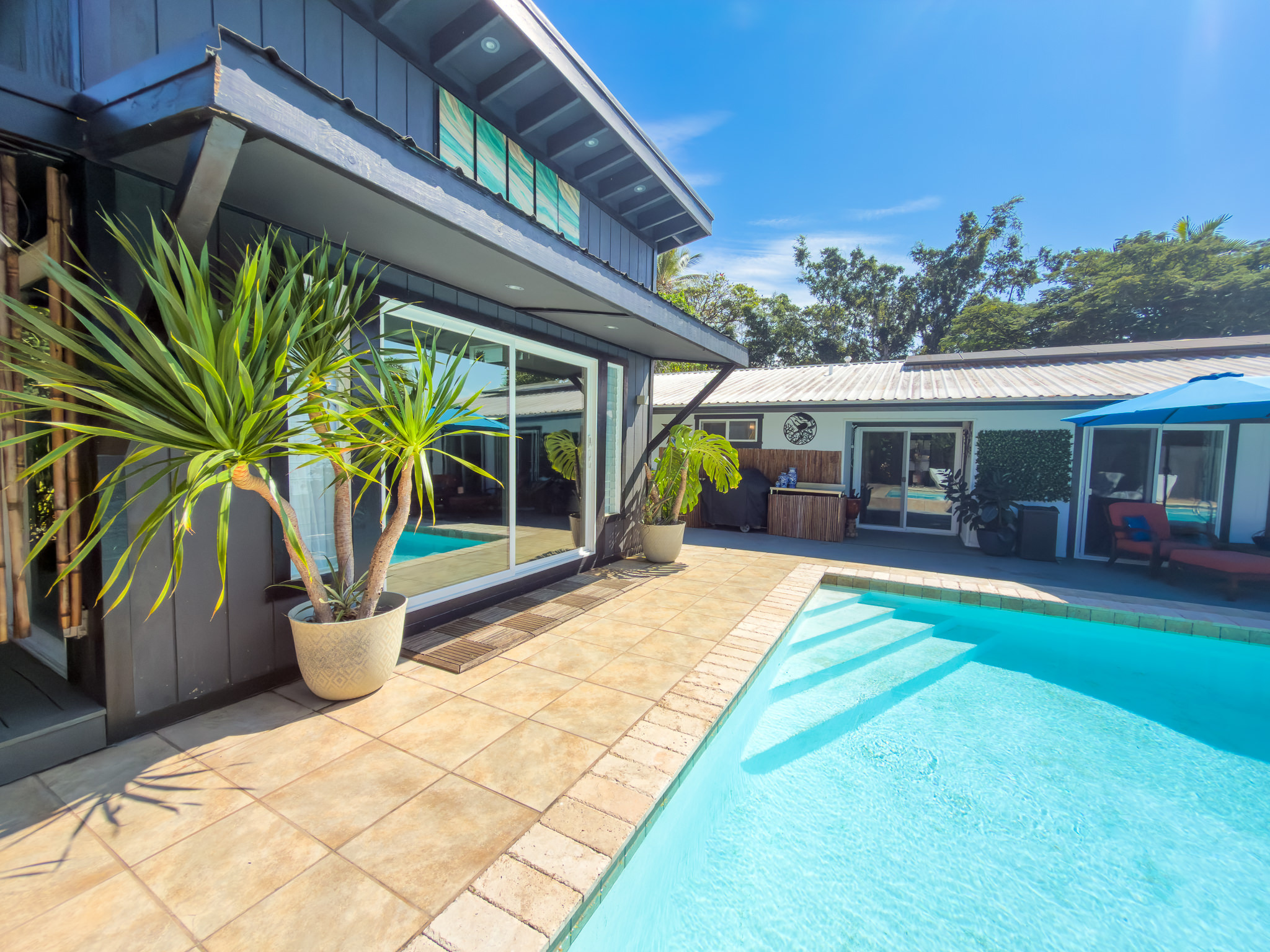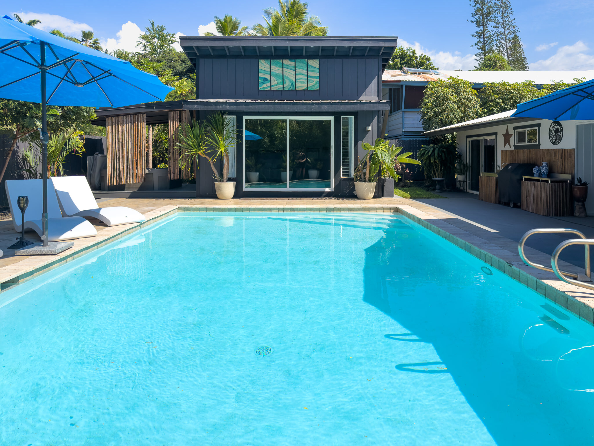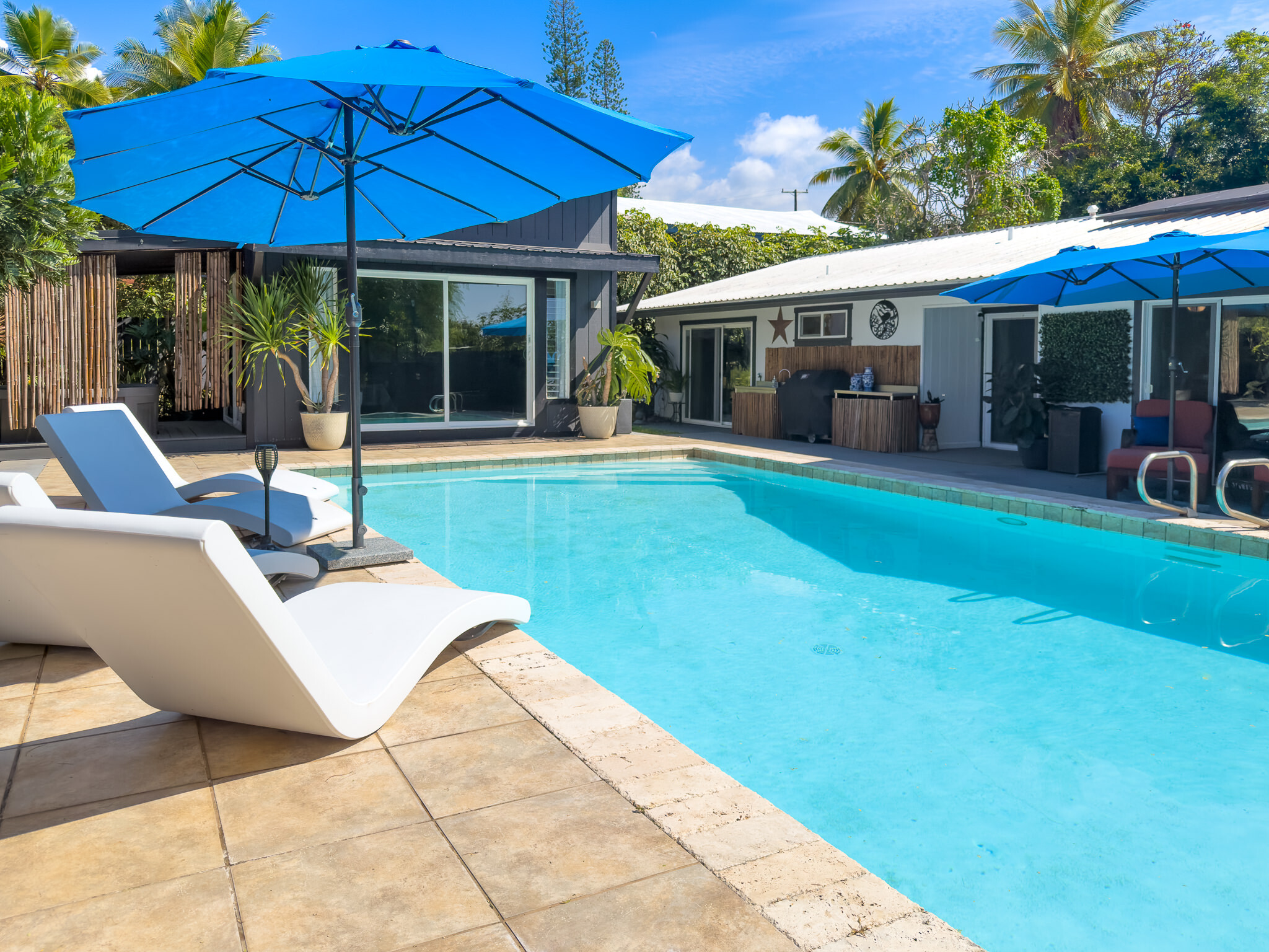 Beautifully remodeled & upgraded 4-bedroom, 3-bath home with flexible, separate living areas, ideal for multigenerational or multi family living. Located within walking distance to Alii Drive and the ocean, this property offers a rare blend of comfort, functionality, and outdoor lifestyle. Offered furnished & turnkey for an easy move-in. Inside enjoy granite countertops, stainless steel appliances, a gas kitchen range, tile flooring throughout, and ductless mini split air conditioning in every space. Owned solar with battery storage adds efficiency and peace of mind. Outdoor living shines with a fully fenced backyard featuring a gas heated pool, hot tub, 2 outdoor showers, and a spacious lanai with grill and sink/counter area. Additional improvements provide approx. 706 sq ft more usable living space beyond the county listed 1,496 sq ft living area. The detached 2-car garage has been converted into a 450 sq ft air-conditioned studio-style ADU and storage area with private entrance, lanai, and separate parking. Also, a freestanding 256 sq ft pool house/multi-use space at the rear is perfect for an office, guest space, gym, or creative studio. This home is an absolute must see. You will appreciate the layout, upgrades, and overall livability. Check out this listing for an included video tour.