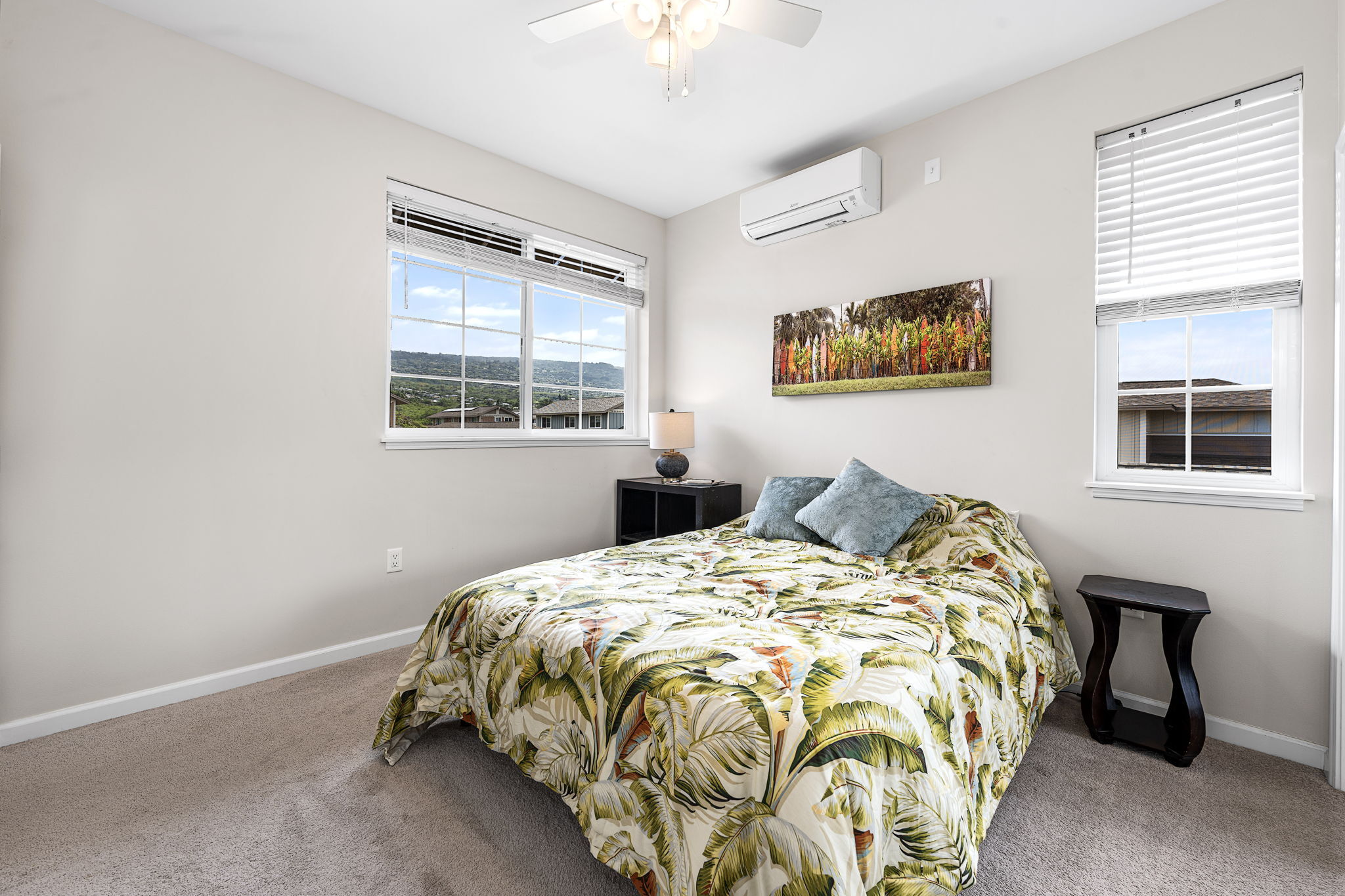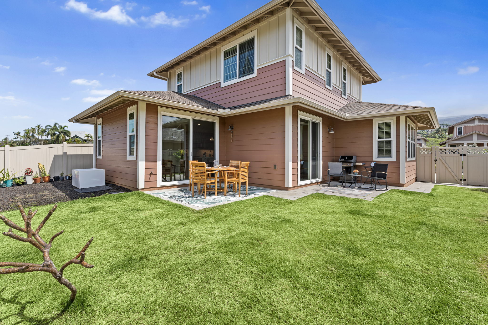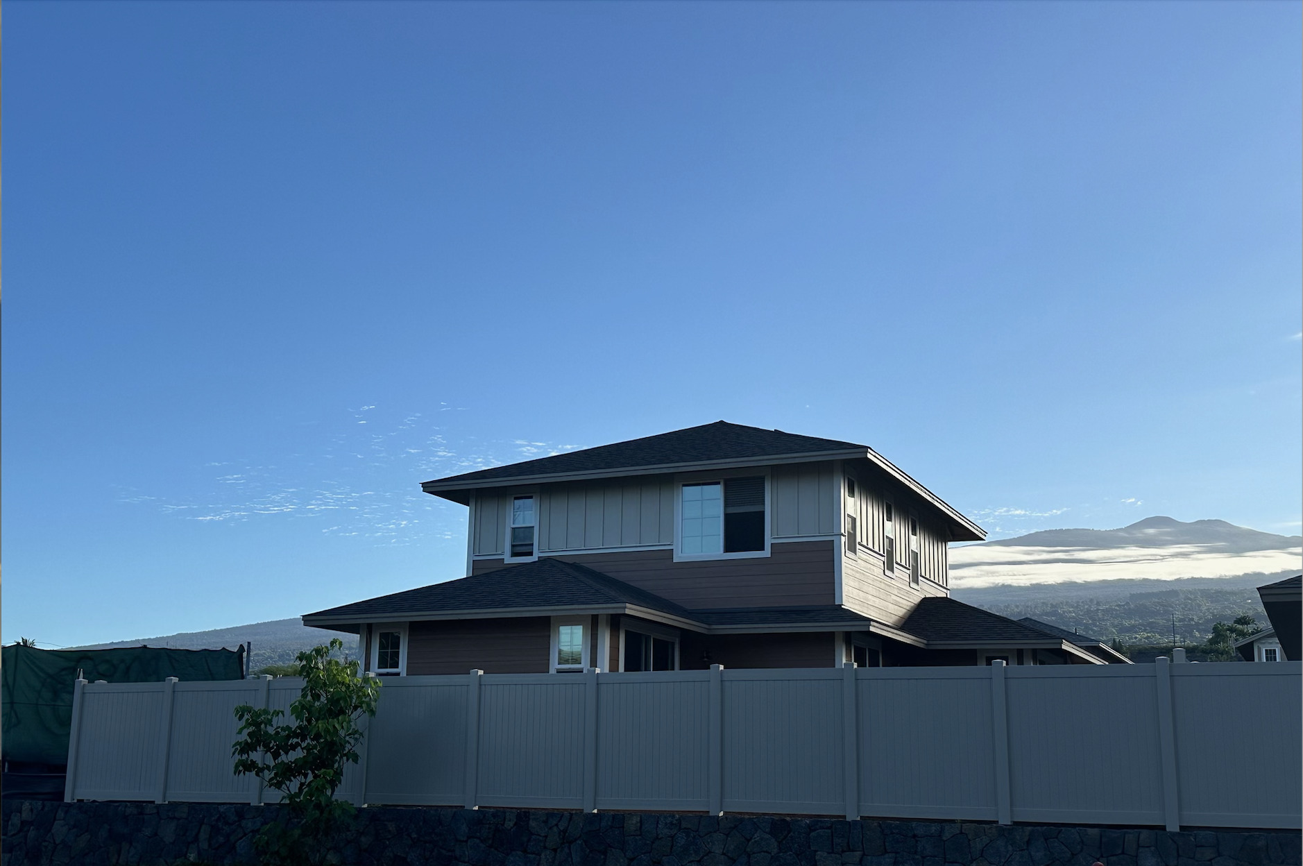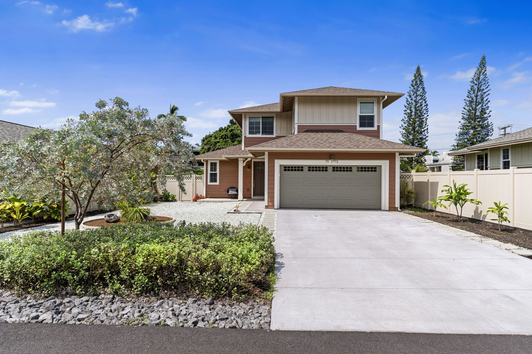 This meticulously maintained two-year-new home sits in a prime location on the western perimeter of Leialii Loop. Featuring customizations and mature landscaping, it’s ready and comfortable to move right in. The 3-bedroom, 2.5-bath home features a large, open living area downstairs, including a large kitchen with loads of cabinets, living room, dining room, den, guest bathroom, indoor laundry room, plus lots of storage areas. Upstairs are the primary suite, two guest rooms and bathroom. There are split air conditioners in all the main rooms, providing energy efficiency while keeping each room comfortable. The home’s layout is designed for easy access from the garage or front door, providing cohesive curb appeal. Enjoy a unique connection to nature with unmatched scenic views: looking west, the backyard offers a direct, serene view of a gorgeous, mature banyan tree, while looking east captures the majestic beauty of Hualalai mountain. This home is move-in ready, and fully finished with thousands of dollars in added value: - Rain gutters installed around the entire exterior. - Window coverings in most rooms create privacy where needed. - Two customized patios strategically placed outside the sliding glass doors are perfect for seamless indoor-outdoor island living. Skip the extra expenses of a new build, and enjoy all the upgrades from your first day home. Cottages on Alii Drive is next door to Alii Gardens Marketplace, and across the street from the public access oceanside pool behind Kona by the Sea. Kailua Kona’s resorts, restaurants and shops are five minutes away; La’aloa Beach Park (Magic Sands) and Kahalu’u Bay are within 10 minutes. It’s located between Keauhou Shopping Center and downtown Kaliua Kona’s shopping centers, making it a wonderfully centralized location that will meet all your Kona living needs. Professional photos coming soon.
