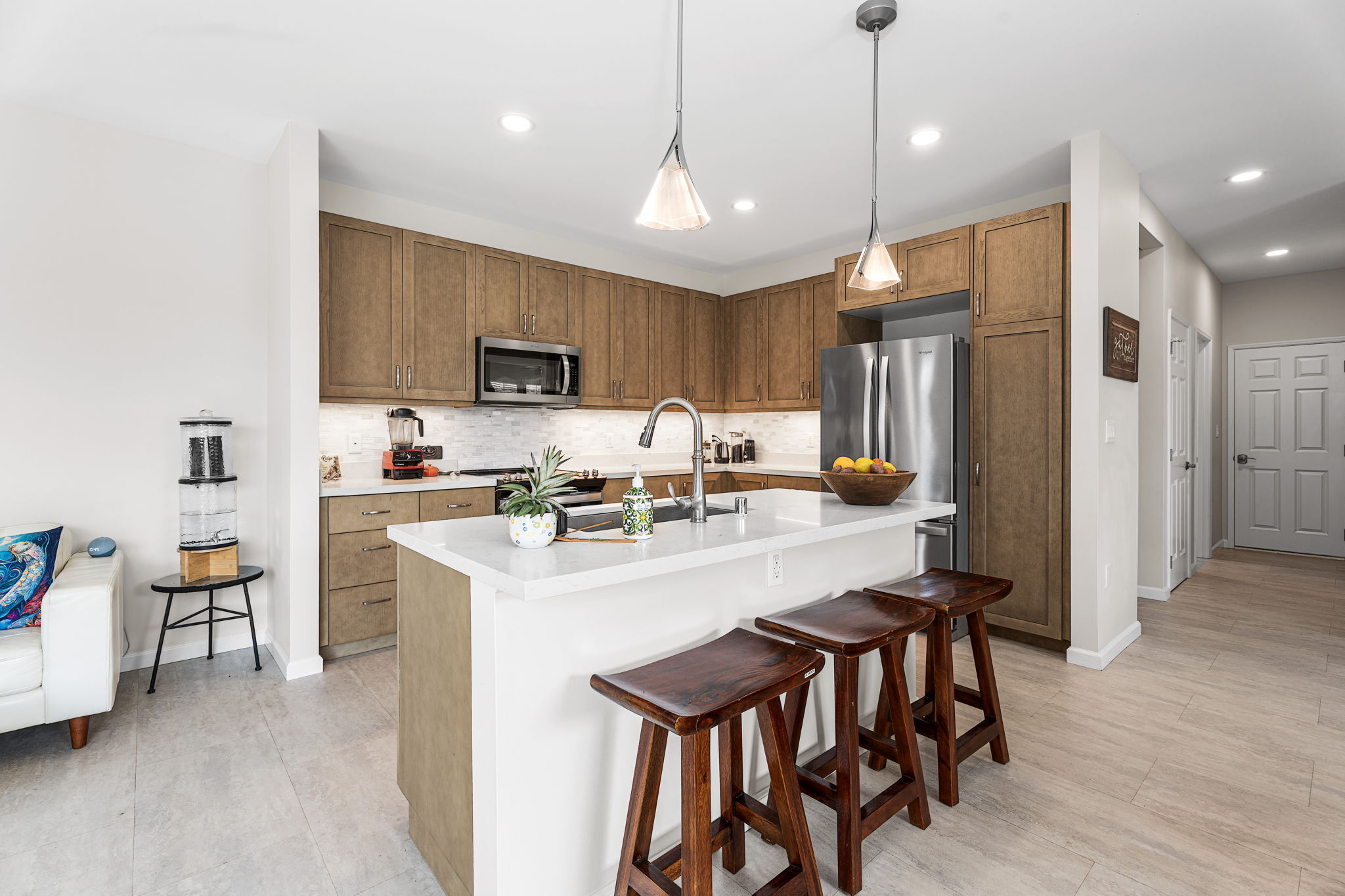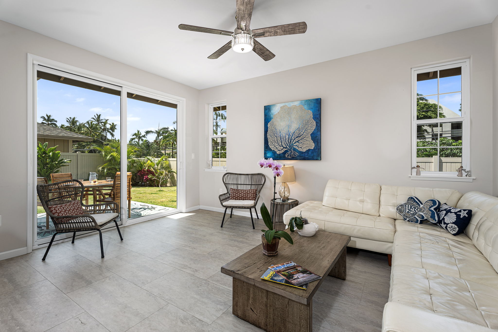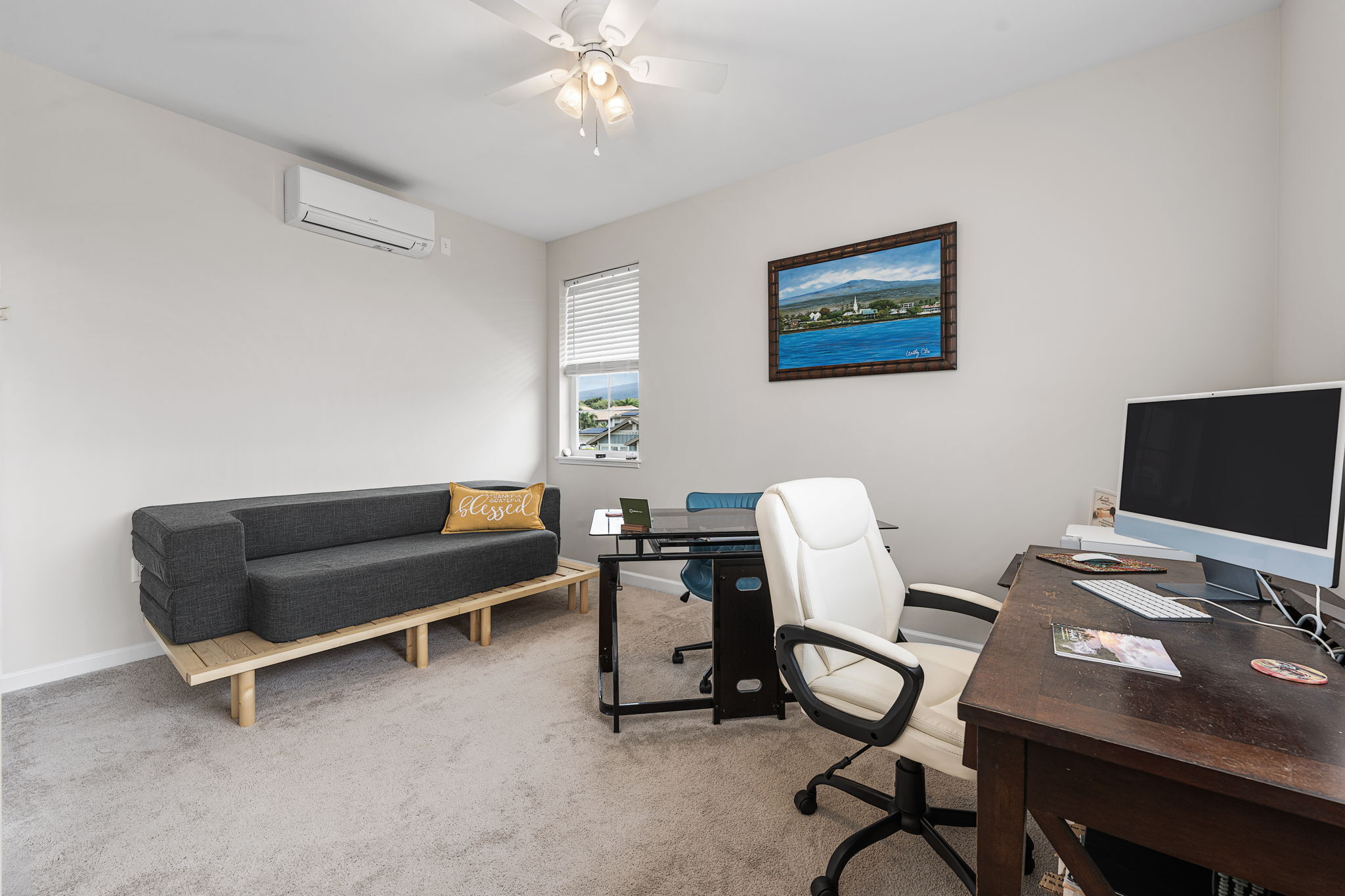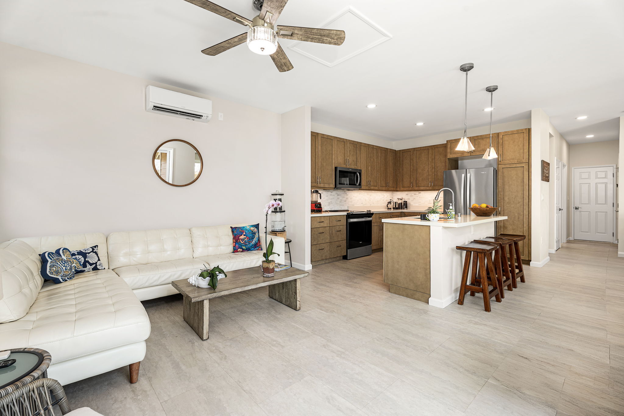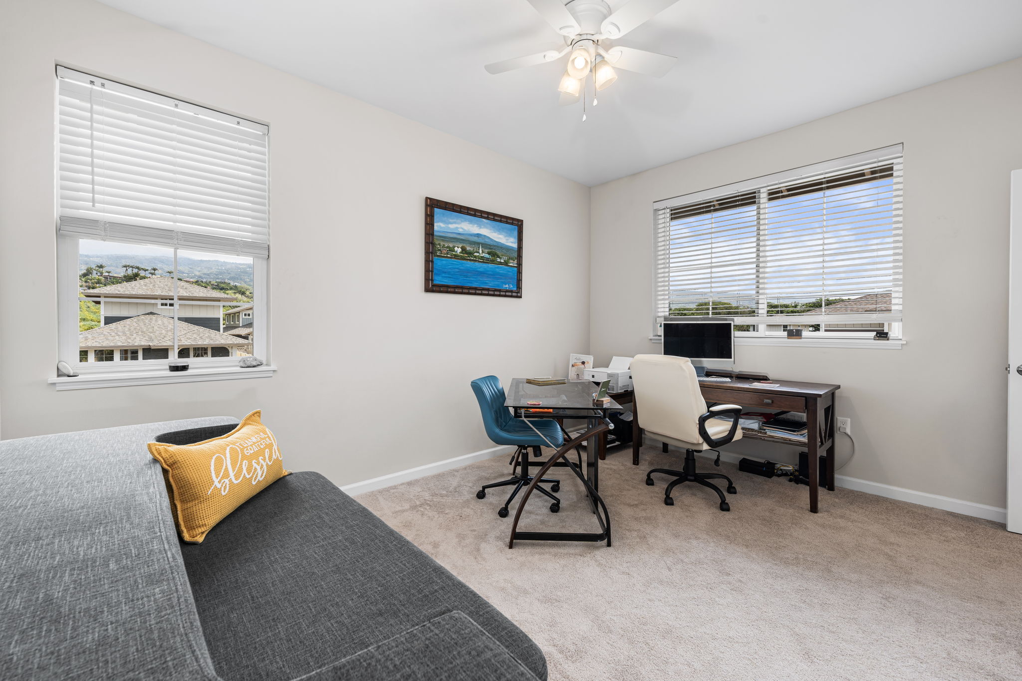 This meticulously maintained two-year-new home sits in a prime location on the western perimeter of Leialii Loop. Featuring customizations and mature landscaping, it’s ready and comfortable to move right in. The 3-bedroom, 2.5-bath home features a large, open living area downstairs, including a large kitchen with loads of cabinets, living room, dining room, den, guest bathroom, indoor laundry room, plus lots of storage areas. Upstairs are the primary suite, two guest rooms and bathroom. There are split air conditioners in all the main rooms, providing energy efficiency while keeping each room comfortable. The home’s layout is designed for easy access from the garage or front door, providing cohesive curb appeal. Enjoy a unique connection to nature with unmatched scenic views: looking west, the backyard offers a direct, serene view of a gorgeous, mature banyan tree, while looking east captures the majestic beauty of Hualalai mountain. This home is move-in ready, and fully finished with thousands of dollars in added value: - Rain gutters installed around the entire exterior. - Window coverings in most rooms create privacy where needed. - Two customized patios strategically placed outside the sliding glass doors are perfect for seamless indoor-outdoor island living. Skip the extra expenses of a new build, and enjoy all the upgrades from your first day home. Cottages on Alii Drive is next door to Alii Gardens Marketplace, and across the street from the public access oceanside pool behind Kona by the Sea. Kailua Kona’s resorts, restaurants and shops are five minutes away; La’aloa Beach Park (Magic Sands) and Kahalu’u Bay are within 10 minutes. It’s located between Keauhou Shopping Center and downtown Kaliua Kona’s shopping centers, making it a wonderfully centralized location that will meet all your Kona living needs. Professional photos coming soon.
