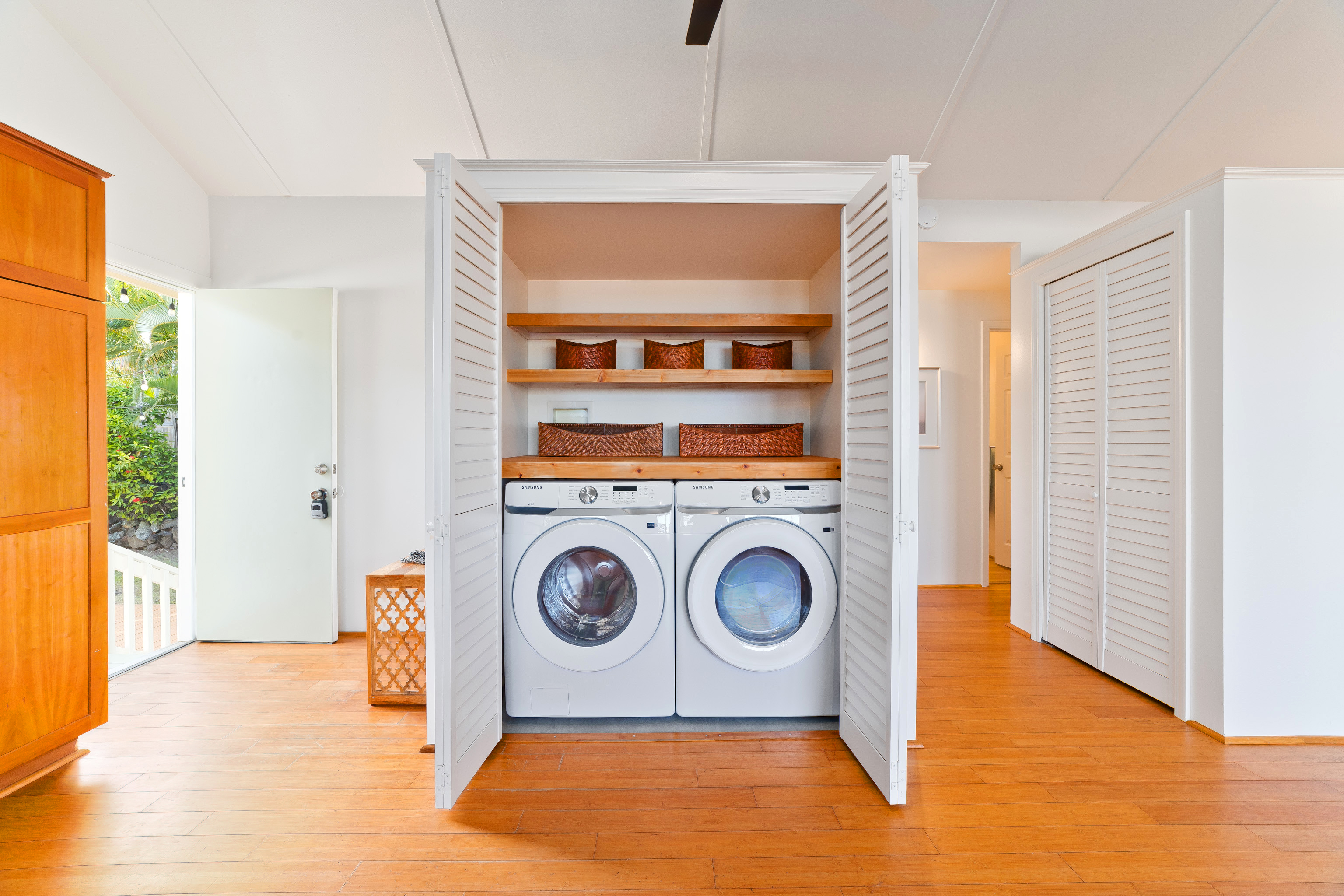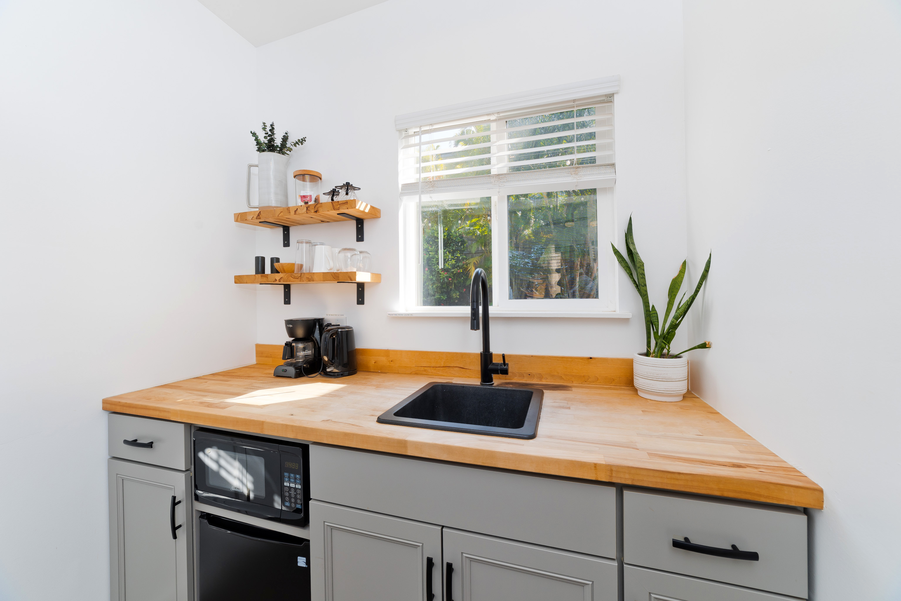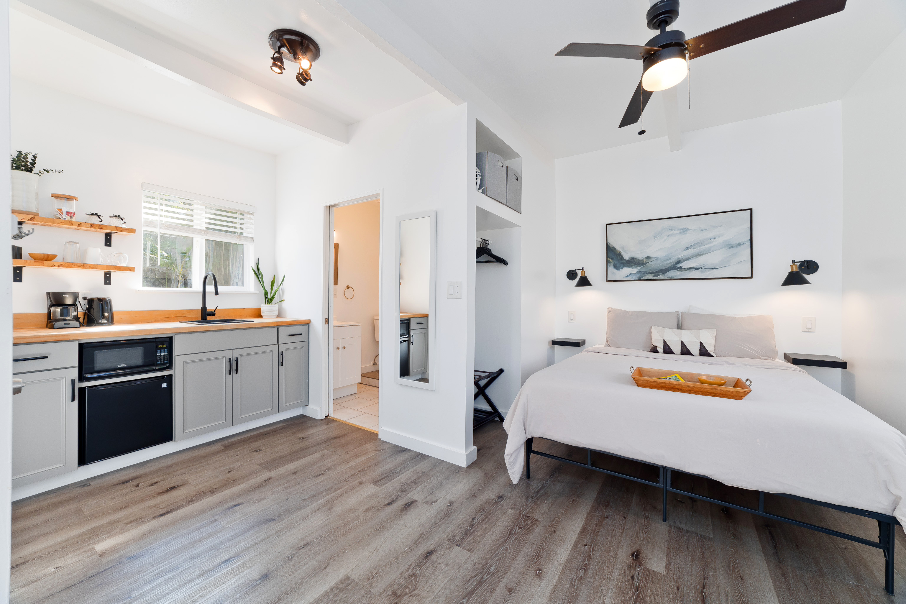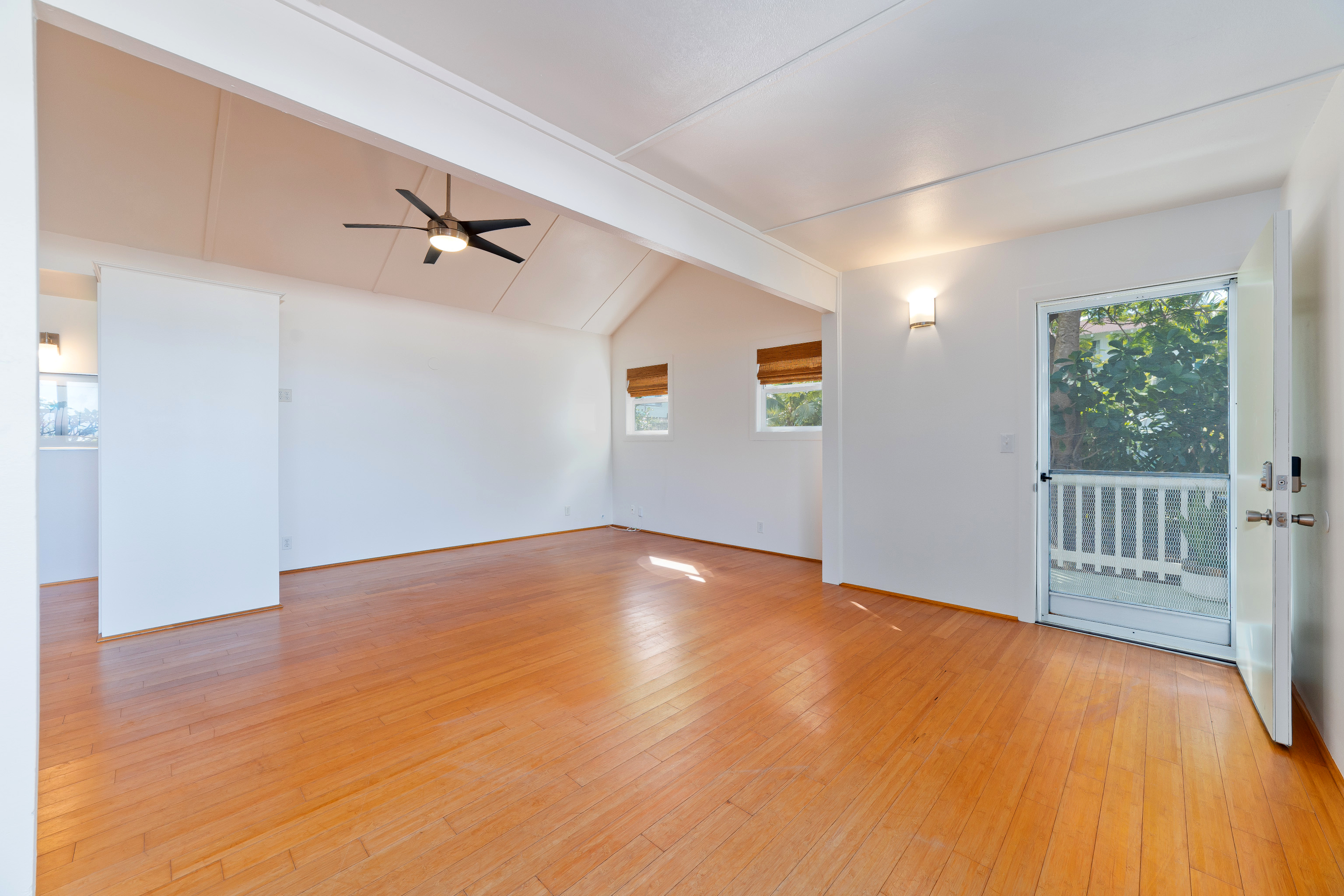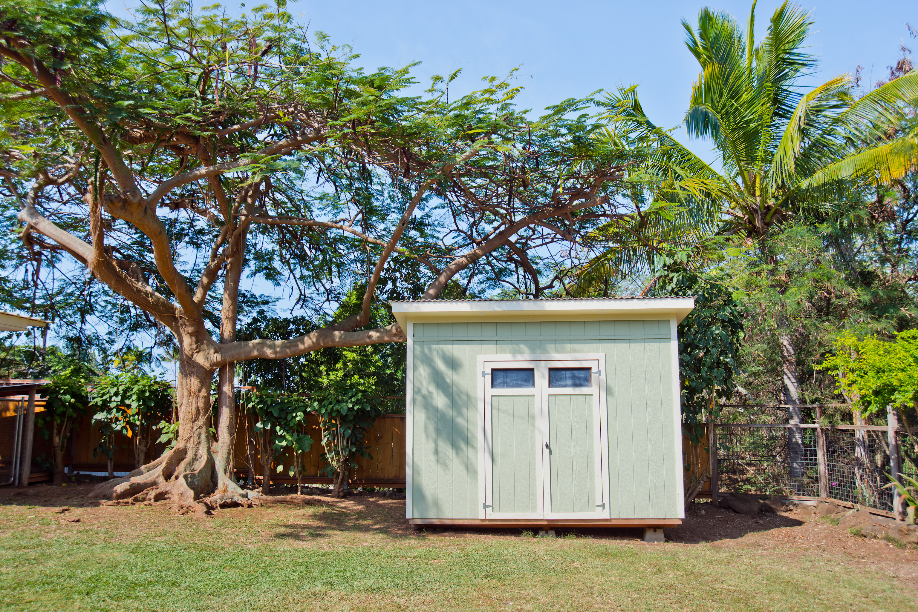 In the heart of Kailua Kona, sits this well-kept cottage with an ocean view and ohana. The charming main house has vaulted ceilings and an open floor plan, creating plenty of natural light. Ocean views may be seen from both the dining and kitchen windows. The spacious kitchen and living area are perfect for cooking and entertaining. The 2 bedrooms are flanked by 1 bathroom with bamboo flooring throughout and window AC units in every room. An in-home laundry station with brand new washer and dryer, and storage closet. Attached to the main home is an upgraded ohana/studio which holds a current short-term hosted rental permit. The Ohana has a separate entrance from the back deck/lanai with full bathroom, kitchenette, laminate flooring, inset closet space, and extra lounge space. This bonus room is ideal in establishing independence from the main home, whether for extended friends and family or for income purposes. Considerable backyard space includes a generous lawn, pet kennel/run, ample sized shed for storage or landscaping equipment, and an expansive deck for relaxing or hosting gatherings. Tropical foliage and fruit trees line the fully fenced in yard and an exquisite Royal Ponciano tree add to the natural island scenery. This property is optimal for those who want convenient access into downtown Kailua Kona's shops, restaurants, and beaches, while having easy entry onto the highway. Fitting for a primary residence, second home, or investment opportunity, this property offers enjoyable upgrades, privacy, and move-in readiness. No HOA and no monthly dues.