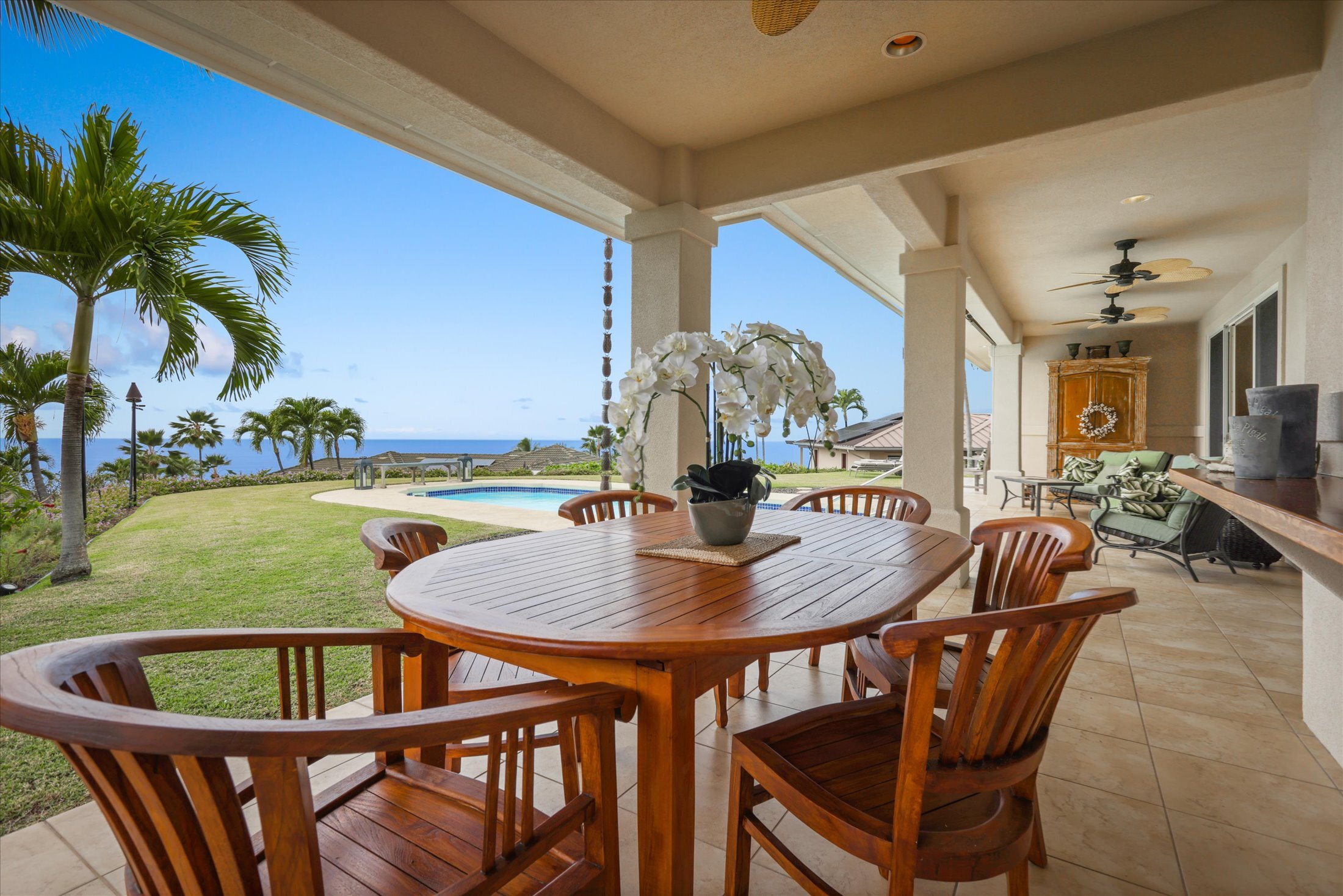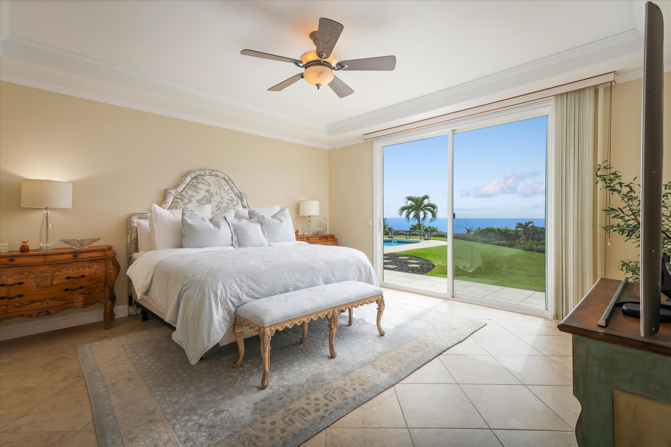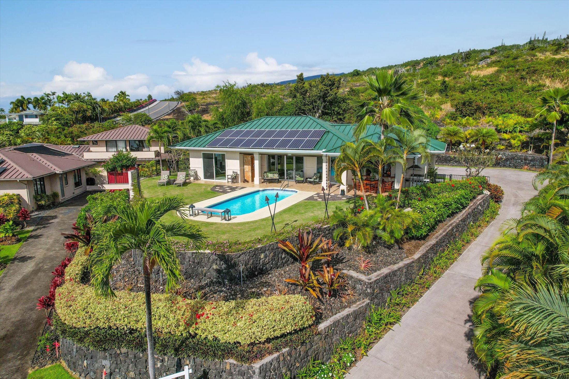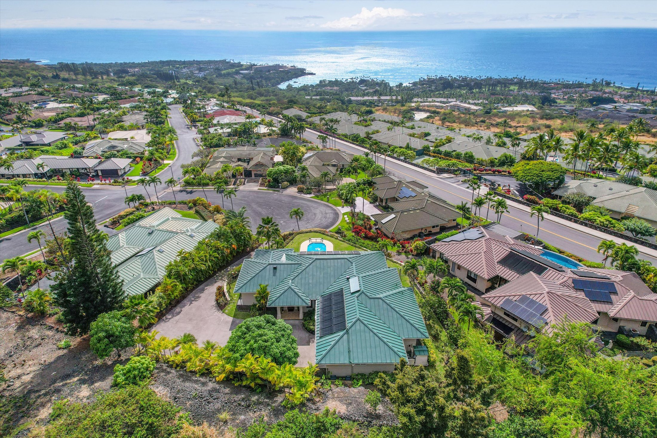 Come Relax, Unwind in Bayview Estates. Perfect Elevation for pool weather days and comfortable sleeping weather at night! Tradewinds flow down Hualalai Mountain at night, and ocean breezes flow up during the day! Beautiful 3-bedroom, 2.5-bath home with an easy transition from indoor to outdoor living, with fabulous ocean, coastline, and sunset views. Enjoy watching the season's whales, boats, and canoes, and famous Kona sunsets, from your spacious, private, covered lanai. Relax in the inground solar-heated saltwater pool in this resort-style outdoor setting. A fully owned photovoltaic net metering system and solar hot water system keep your energy costs low. The upgraded kitchen has solid quartz countertops, custom-designed cabinetry, a gas cooktop, stainless steel appliances, and a large walk-in pantry. The pass-through window to the lanai dining area is a special feature. There is tiled flooring throughout the home, which makes for easy upkeep. The primary bedroom has a sliding glass door entrance to the backyard; you can see the ocean from the moment you wake up! Light primary bathroom with a walk-in shower, ensuite bath. and double sinks. Enjoy the beautifully landscaped exterior with tropical plantings, mango, avocados, and citrus trees throughout, and a private BBQ area with a range hood. Bayview Estates is a walkable, dog-friendly neighborhood located above Keauhou Bay. You are a quick drive from Keauhou Shopping Center, which includes KTA Superstore, Longs Drugs, Mexican, Thai, and Italian restaurants, Kona Books, Kalona Spa and Salon, Spin Classes, and LL BBQ and medical offices. Ocean activities, including outrigger canoe paddling, kayaking, snorkeling, manta ray dives, and boat tours out of Keauhou Bay! You are just a short 10-15 minute drive from Kona Community Hospital, and 15 minutes from Kailua Kona Village. Don't miss out on the opportunity to check out this home today!