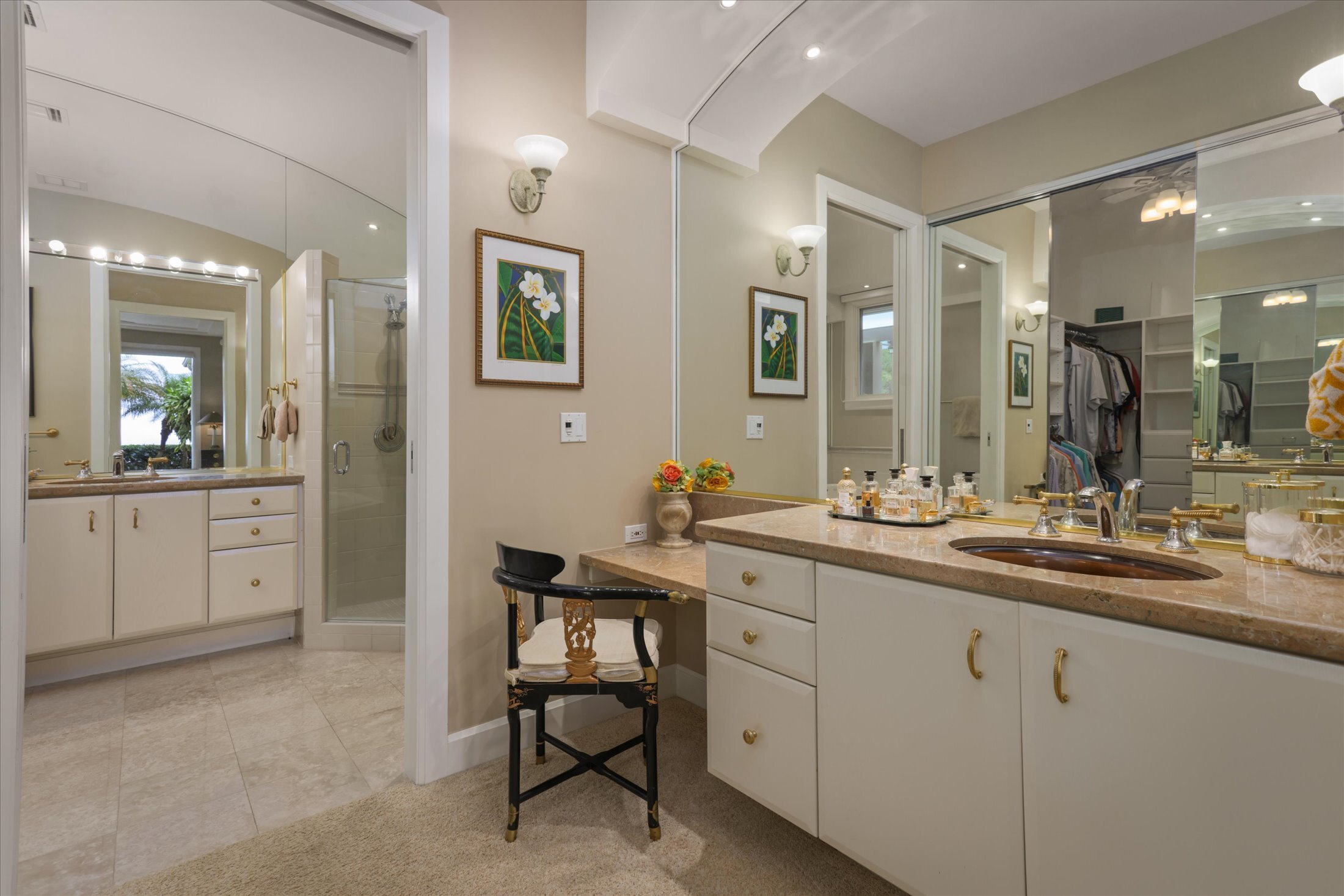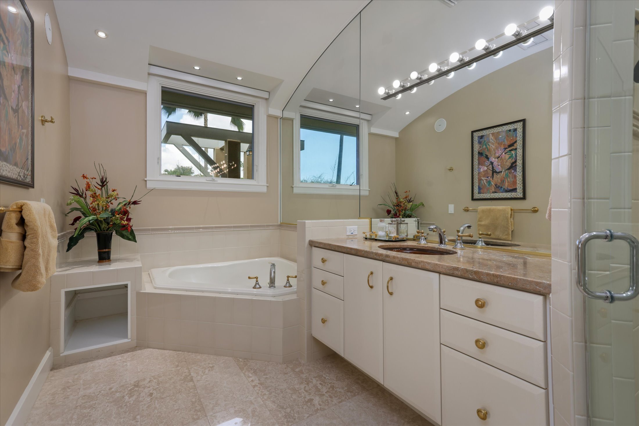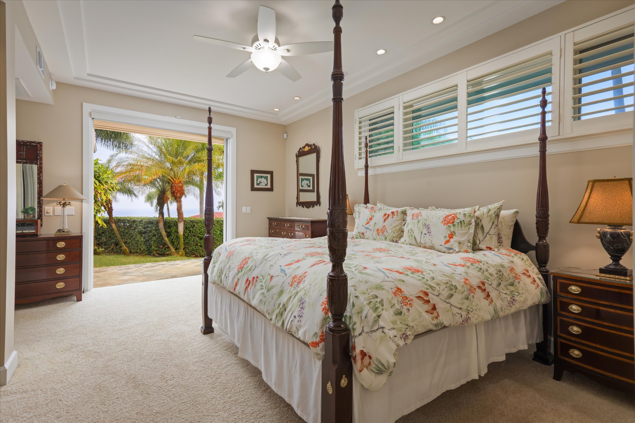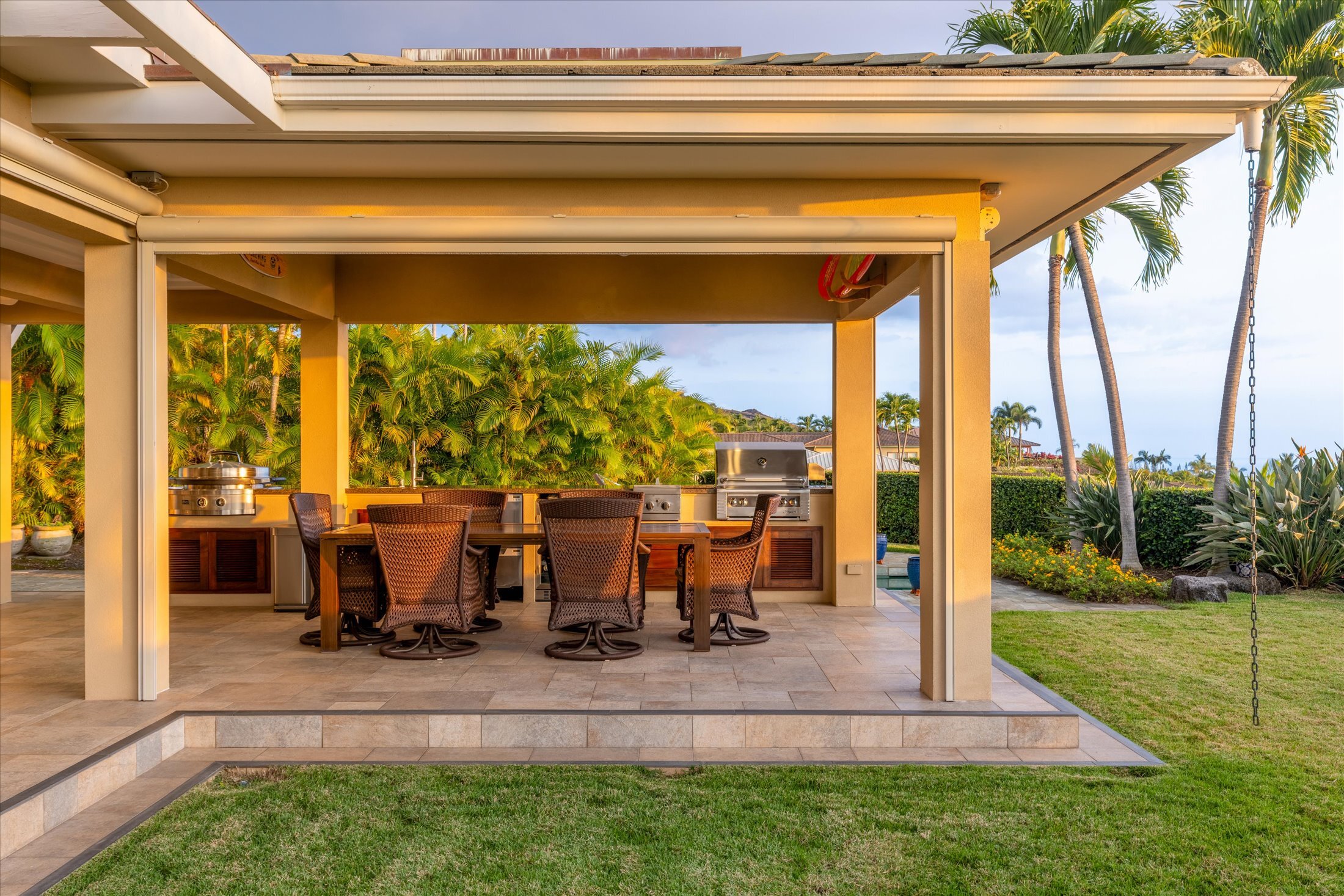 Commanding an exceptional vantage point within the gated enclave of Bayview Estates in Keauhou, this refined island residence captures sweeping panoramic ocean views spanning more than 180 degrees–delivering unforgettable sunsets, seasonal whale watching, and a daily connection to the Pacific that defines Kona Coast living. Being offered furnished and originally the developer’s model home, the property enjoys a premier location selected for its elevation, orientation, and expansive view corridors. A rare short, level driveway provides effortless access and everyday convenience. Designed for seamless indoor—outdoor living, expansive pocket doors open to a generous covered lanai with an outdoor kitchen and dining area–an ideal setting for entertaining against a dramatic ocean backdrop. The outdoor setting is further enhanced by a resort-style pool and spa, solar-heated for year-round comfort, creating a private retreat to relax and take in Kona’s iconic sunsets. Inside, Brazilian Tigerwood hardwood floors and granite surfaces create a warm, refined aesthetic. The chef’s kitchen features premium appliances, including Wolf, Sub-Zero, and Cove, complemented by extensive smart home upgrades with app-controlled irrigation, retractable sun shades, electronic blinds and entry features. Additional highlights include central air conditioning, an air-conditioned garage, a comprehensive security system, and dedicated electrical capacity for EV charging. Bayview Estates is a private gated community near Keauhou Bay, shopping, dining, golf, and ocean activities–offering privacy, convenience, and the best of island living.
