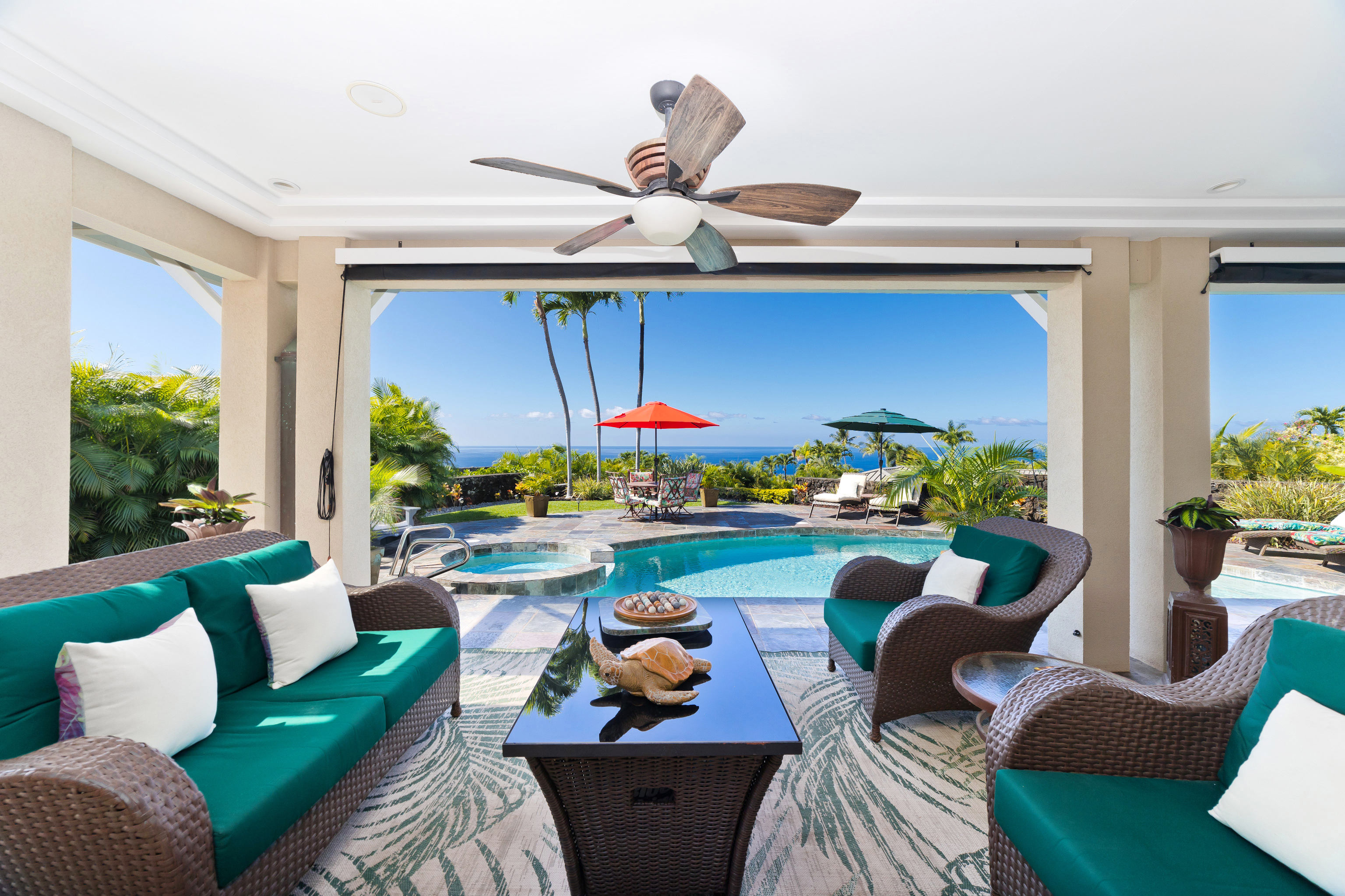 Set within prestigious Bayview Estates, this home blends luxury, privacy, and effortless island living.Embrace elevated Hawaii living in this beautifully maintained single-level home in the gated community of Bayview Estates. Thoughtfully designed for seamless indoor—outdoor living, the home opens to a slate-tiled pool deck, heated waterfall spa, and a covered entertaining lanai that captures expansive ocean views.