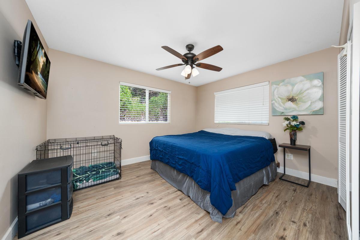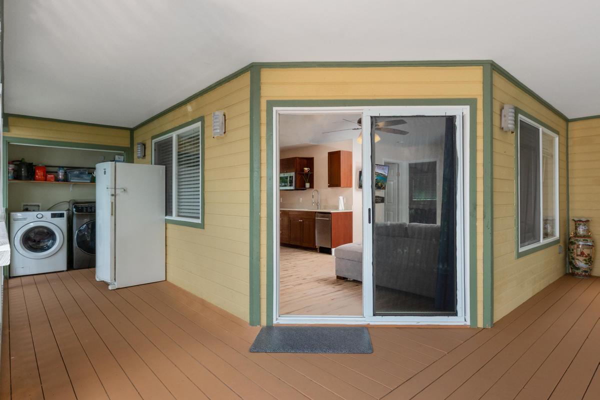 The upper level features a fully furnished 1bed + Den /1 bath and currently operates as an active hosted vacation rental, while the lower level offers 2 additional bedrooms and 1 bath, ideal for guests, extended family, or rental income. Each level includes split A/C systems, laundry areas, and large lanais for outdoor relaxation. Rent one and live in the other!