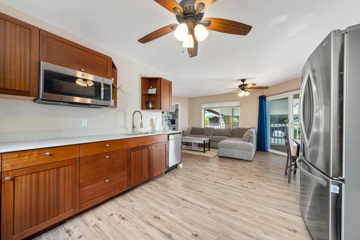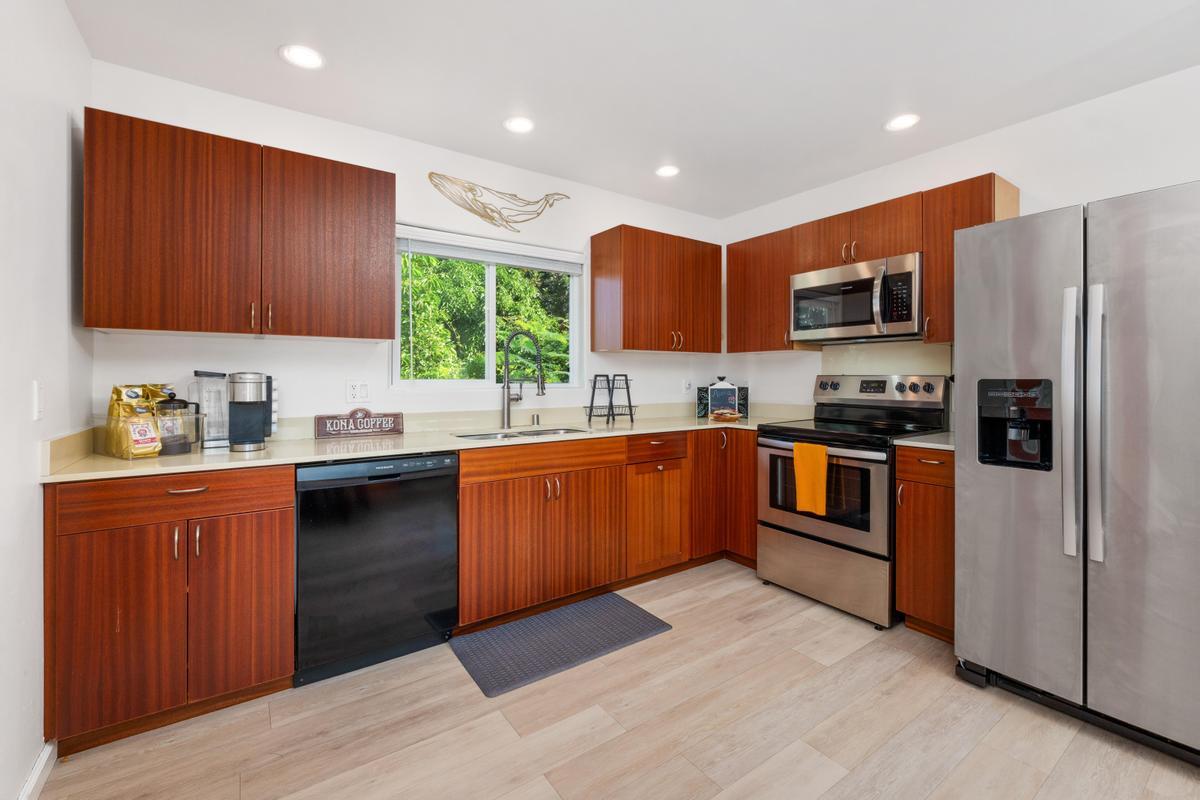 Discover flexibility and comfort in this beautifully designed two-level home located just minutes from town at a refreshing 850-foot elevation. Enjoy cool breezes, ocean views, and the perfect blend of island charm and modern convenience.