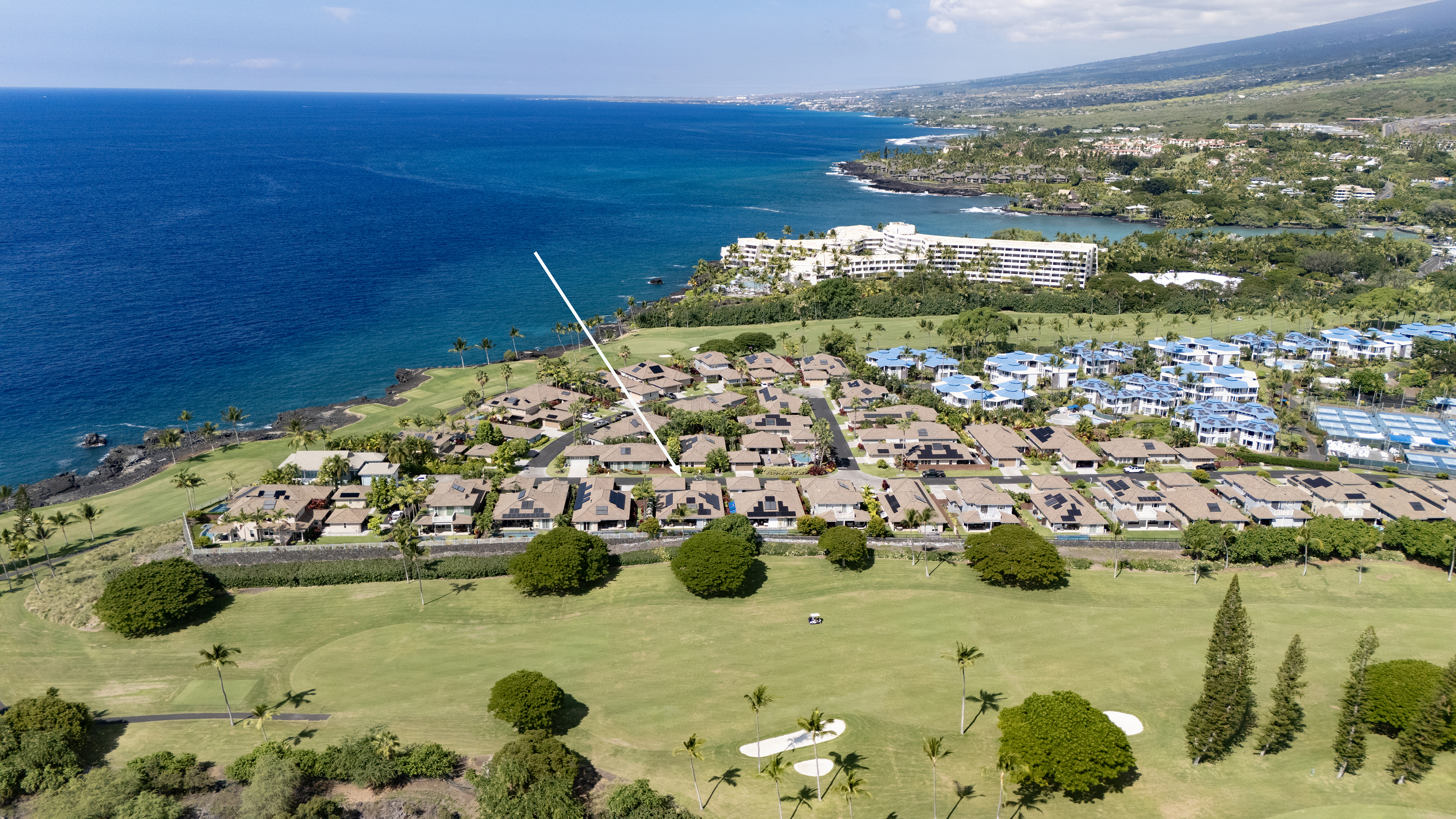 This 41 home gated community is surrounded by the Kona Country Club golf course. Residents and guests also enjoy the Holua Kai pool, hot tub, pavilion and overlook out to the pacific ocean.