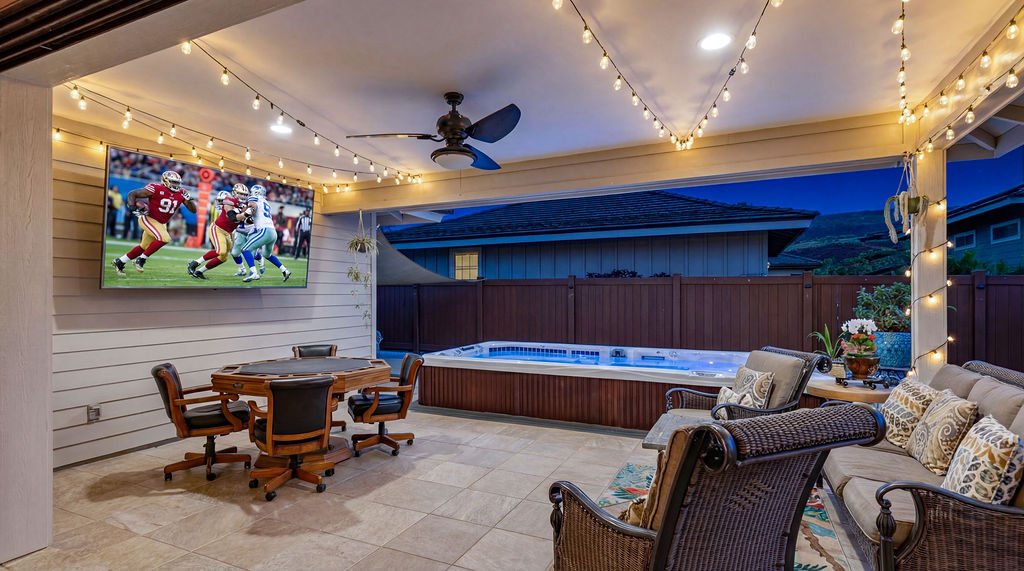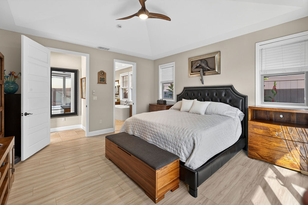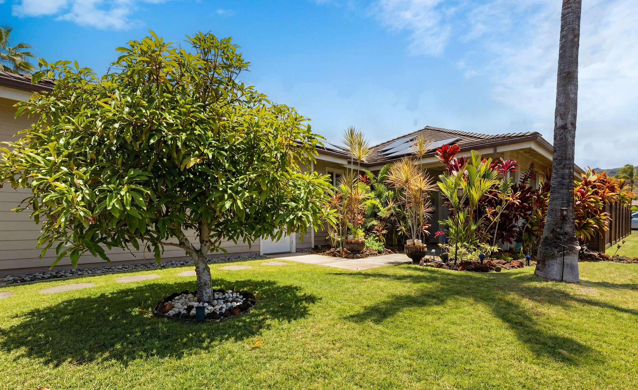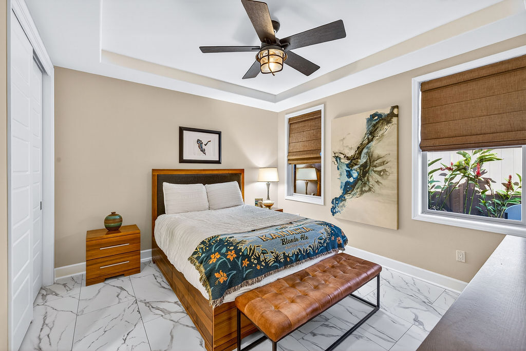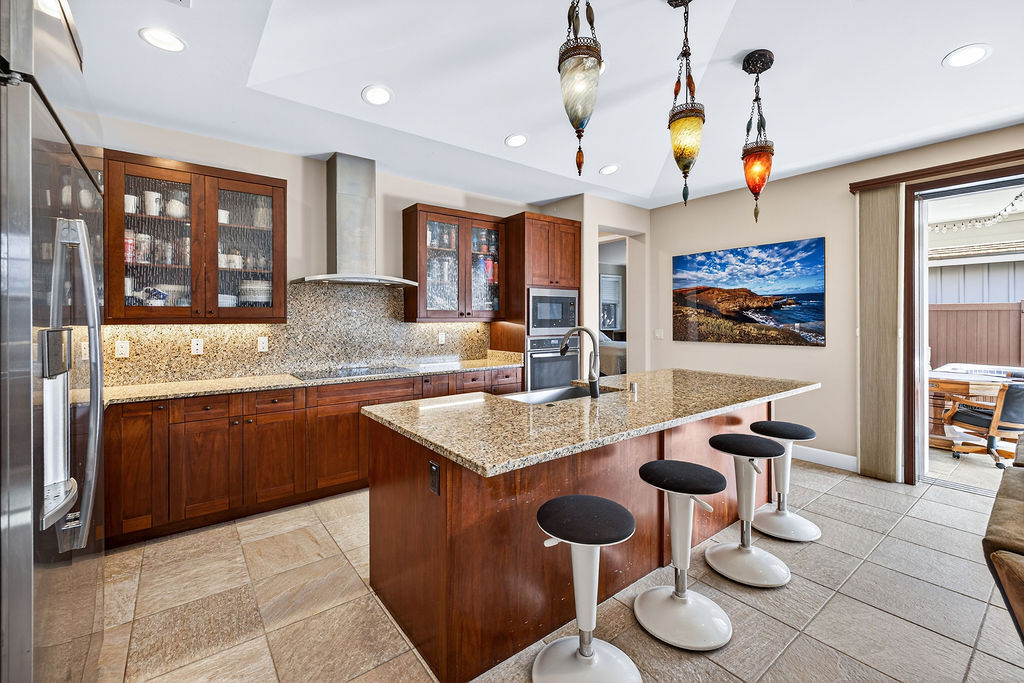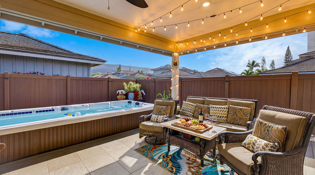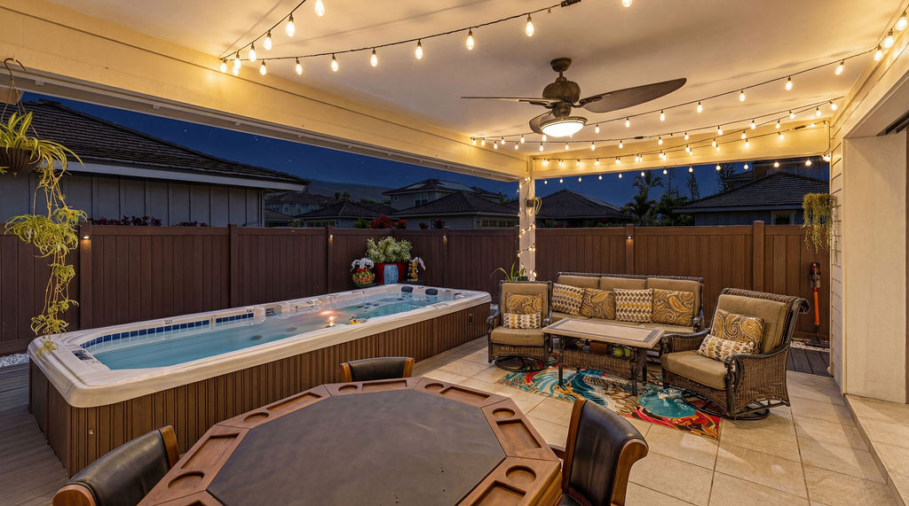 Experience island living at its finest in this stunning single-family home located in the desirable Holua Kai neighborhood of Keauhou. Boasting 1,887 square feet of beautifully designed living space, this residence offers 3 bedrooms, 2.5 bathrooms, and an exceptional layout perfect for entertaining or simply relaxing. Open the beautiful four panel glass pocket doors to the back covered tile lanai and step to a fully fenced back yard space with a large swim spa, Turn on the swim jets and get your laps in, or turn on the heat and jets for a relaxing time under the stars, with built in lights and sound system. Master bedroom with en suite bathroom, large walk in shower and beautiful soaking tub. Guests bedroom are located on opposite end of the house ?STVR ZONED!! ? Zoned for 'Home Occupation' Business as well...think of all the possiblities!! Home Improvements and Highlights *32 panel PV system with 3 Enphase batteries *Full fencing in backyard/side yard *Water softener installed for entire home *Dynasty Jet Swim Spa with heating option, lights and sound system * Trex decking for low maintenance backyard *New Gutters to entire home *2 Panel solar water heater *Custom blinds *Built in shelving in garage *Exterior was re painted in 2023 * Interior re-painted in 2026 *all windows and sliding doors have been tinted to minimize heat *New BoschDishwasher Installed 6 months ago *New AC compressor installed October 2025 *Low monthly HOA dues * Right across from amenity center with pool, hot tub, showers, restrooms, grills and pavillion. The most street/side yard parking of any lot! Dwarf Julie Mango tree- produces twice yearly. Golf cart included with an acceptable offer- cruise around neighborhood and Keauhou Bay with ease!