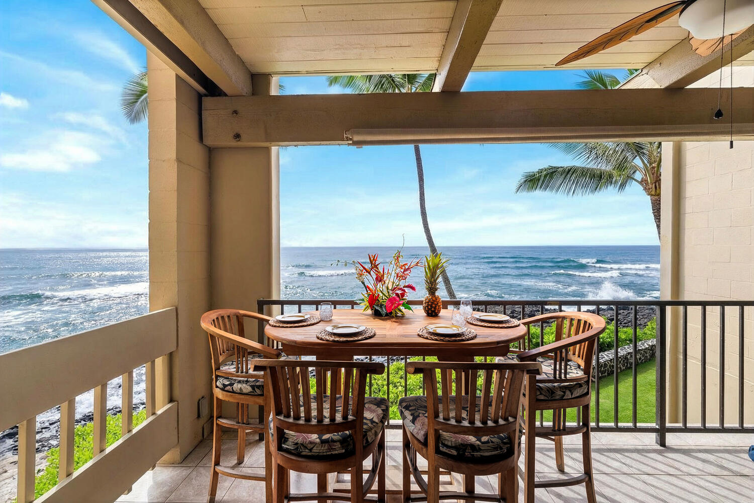 RARE Oceanfront 3-Bedroom, 2-Bath Condo at Kona Bali Kai on Historic Alii Drive! Wake up to the sound of waves and the sight of surfers dancing across the legendary Banyans Surf Break- one of the island’s premier surf spots, right outside your lanai. This spacious and private oceanfront retreat offers front-row views of year-round sunsets that can be nothing short of spectacular.