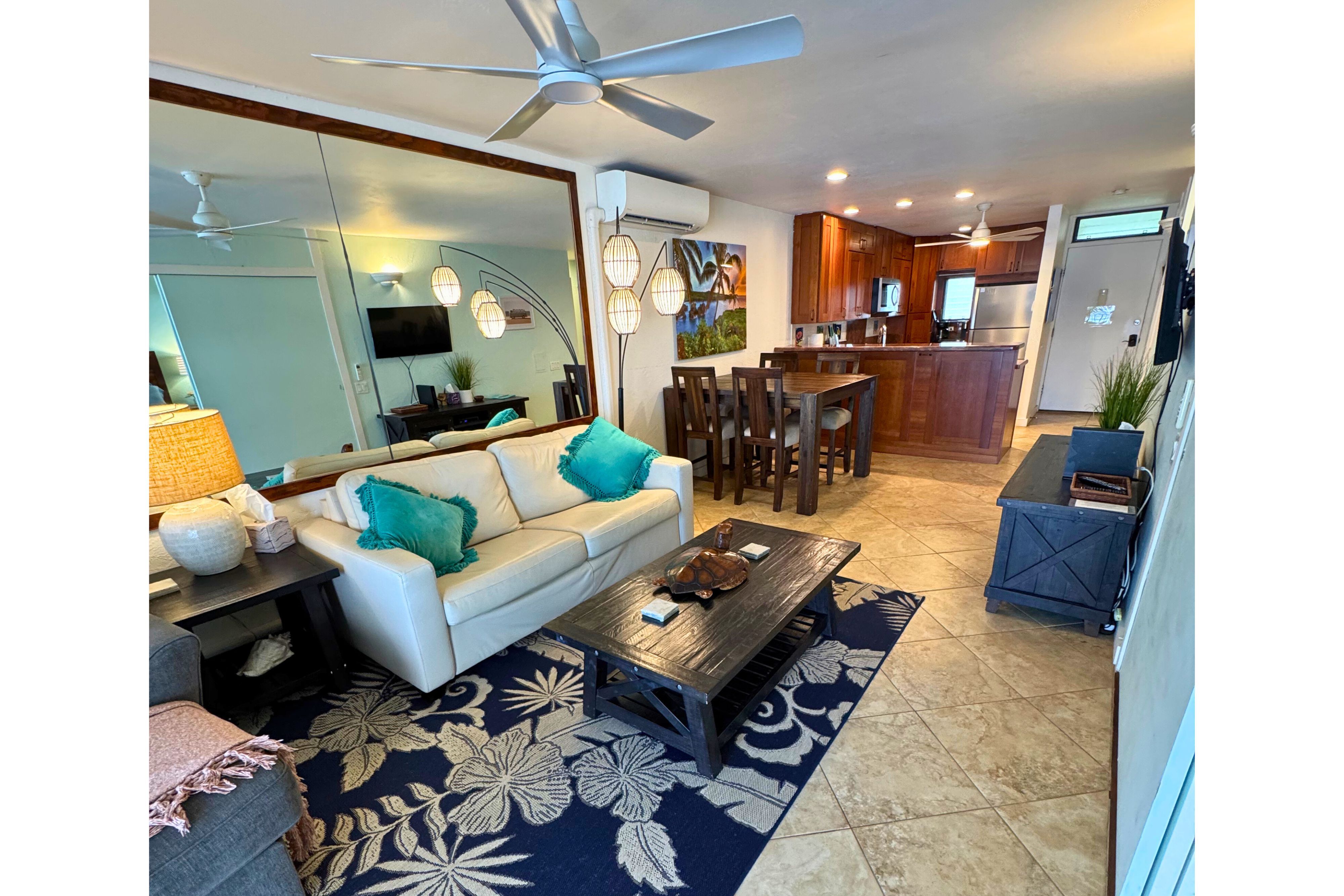 Beautifully renovated 2 bed, 2 bath Kailua-Kona condo with transferable STVR permit and option to come fully furnished with bookings! Enjoy stunning ocean and sunset views from your private lanai, perfect for relaxing or entertaining. Modern upgrades include split A/C, stainless steel appliances, in-unit washer/dryer, and one assigned parking stall. The resort-style complex features a sparkling saltwater pool and spa, plus oceanfront BBQs and dining tables where you can enjoy meals just steps from the waves. On-site amenities include a rental agency and a local poke store, with restaurants and shops conveniently nearby. Whether you’re looking for a vacation retreat, investment property, or both, this turnkey condo offers the ultimate island lifestyle in the heart of Kona. *VA Assumable at 4.1% for qualified VA buyers!*