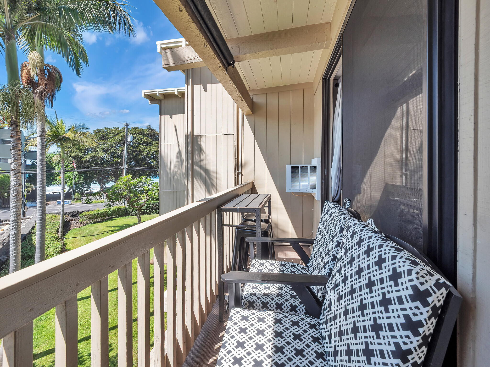 Turnkey Kona Bali Kai studio with peek-a-boo ocean views and strong vacation rental potential. This well-appointed unit features a comfortable king bed, full kitchen, private lanai, and recently installed air conditioning, creating an inviting and efficient layout ideal for both short stays and extended visits. The open-concept design maximizes space and functionality while allowing for natural light and a relaxed coastal feel. Located on iconic Ali‘i Drive directly across from the ocean, guests enjoy convenient beach access and the soothing sound of waves. Kona Bali Kai offers desirable resort-style amenities including a swimming pool, hot tub, oceanfront BBQ area, grassy lawn, and the popular on-site restaurant, Da Poke Shack. The complex is well-positioned just minutes from Kailua-Kona town, providing easy access to shopping, dining, coffee farms, ocean activities, and some of the island’s best snorkeling beaches. This unit has proven appeal as a vacation rental, offering an excellent opportunity for investors seeking income-producing property in a high-demand location, or for buyers looking for a personal island retreat with the ability to generate revenue when not in use. Free on-site parking and a central location enhance guest convenience and overall desirability. Turnkey Kona Bali Kai studio with peek-a-boo ocean views, AC, lanai, and strong rental potential on Ali‘i Drive.Listor is owner and is related to seller.