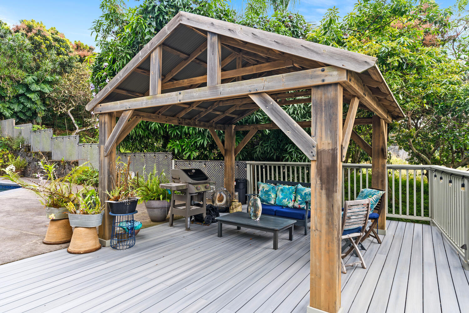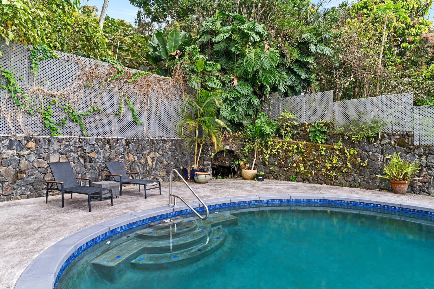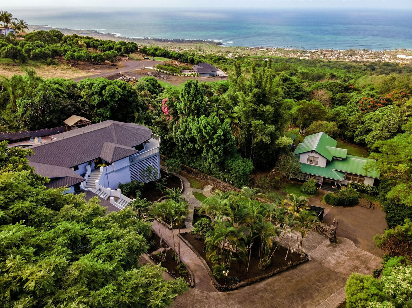 Perched in a peaceful, private setting just minutes from downtown Kailua-Kona, this beautiful unique custom home delivers the kind of space, comfort, and indoor-outdoor living that is increasingly hard to find. Tucked away on a quiet private road off Hualalai Road and set on approximately ½ acre, this residence offers the perfect blend of privacy, ocean views, and resort-style amenities–all in a highly convenient location. Featuring 3 bedrooms and 3 bathrooms, the home impresses with its expansive layout and generously sized living areas, creating an ideal environment for both relaxed everyday living and effortless entertaining. The showpiece kitchen has been thoughtfully upgraded with rich Modico walnut cabinetry and striking Blue Louise granite countertops, offering a refined space that is as functional as it is beautiful. Step outside to your own tropical escape–enjoy ocean views, a massive deck perfect for lounging and dining, and a private swimming pool surrounded by a tranquil atmosphere that feels like a true Kona retreat. With its rare sense of openness, exceptional privacy, and standout upgrades, this property is an outstanding opportunity to own a spacious slice of paradise near the coastline, shopping, dining, and everything Kailua-Kona has to offer.
