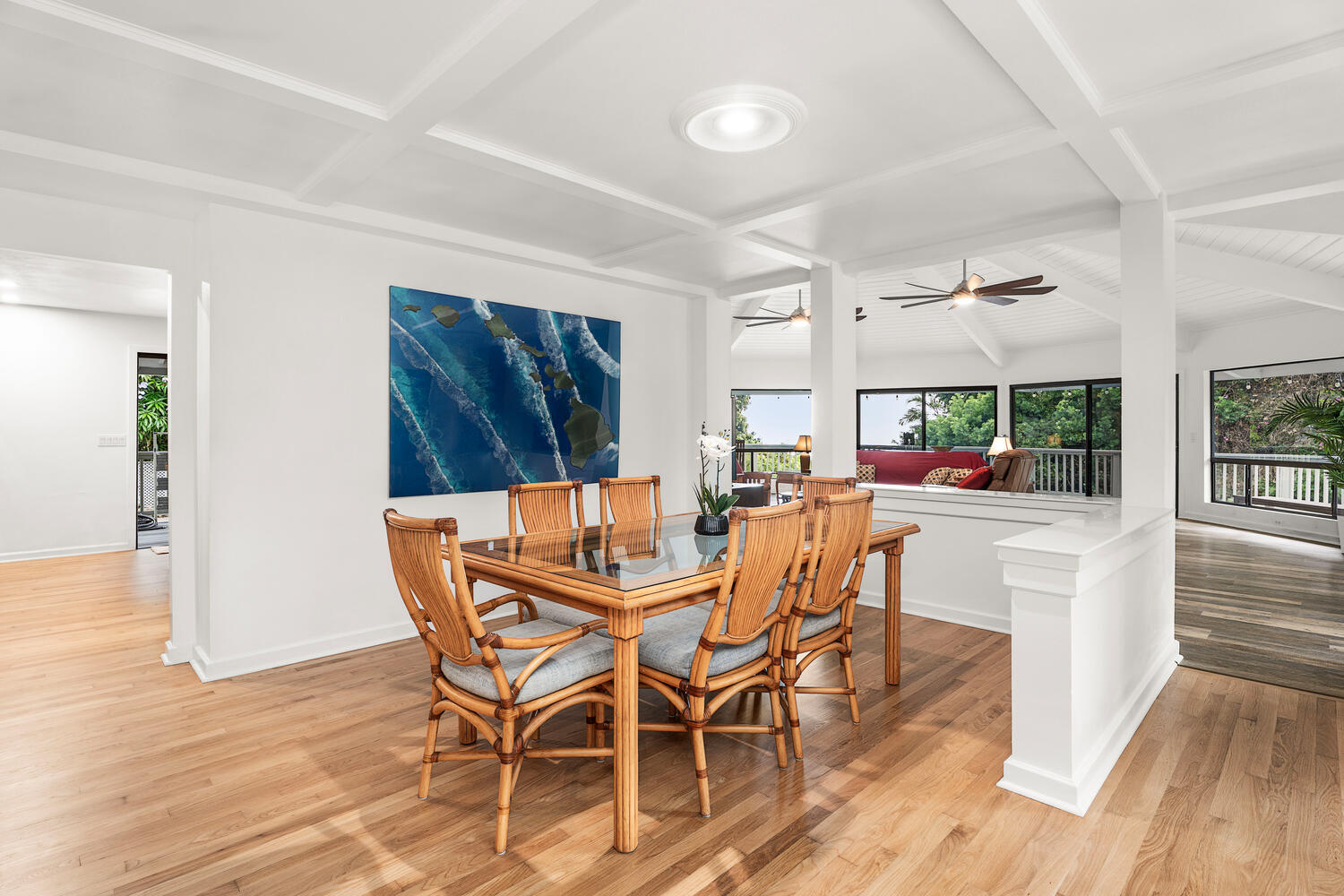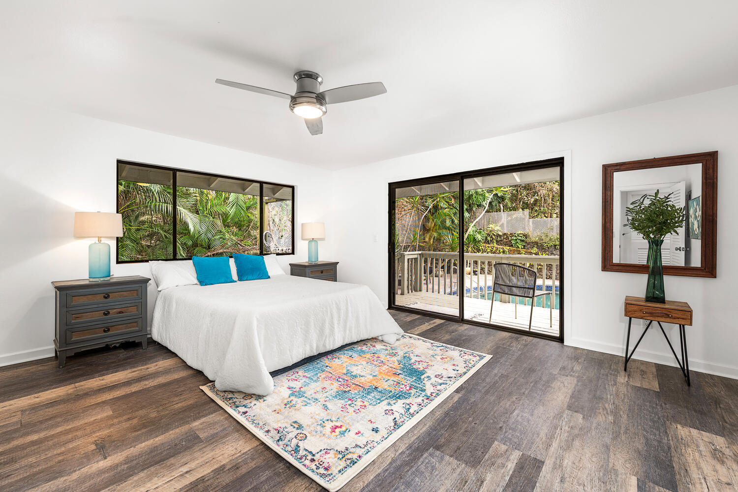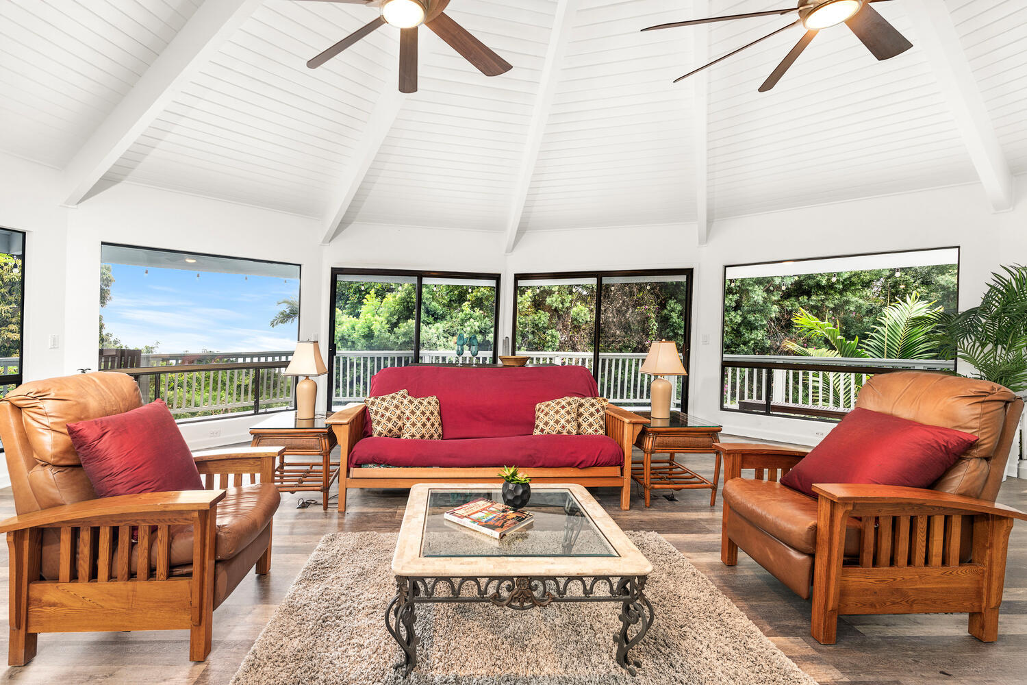 Perched in a peaceful, private setting just minutes from downtown Kailua-Kona, this beautiful unique custom home delivers the kind of space, comfort, and indoor-outdoor living that is increasingly hard to find. Tucked away on a quiet private road off Hualalai Road and set on approximately ½ acre, this residence offers the perfect blend of privacy, ocean views, and resort-style amenities–all in a highly convenient location. Featuring 3 bedrooms and 3 bathrooms, the home impresses with its expansive layout and generously sized living areas, creating an ideal environment for both relaxed everyday living and effortless entertaining. The showpiece kitchen has been thoughtfully upgraded with rich Modico walnut cabinetry and striking Blue Louise granite countertops, offering a refined space that is as functional as it is beautiful. Step outside to your own tropical escape–enjoy ocean views, a massive deck perfect for lounging and dining, and a private swimming pool surrounded by a tranquil atmosphere that feels like a true Kona retreat. With its rare sense of openness, exceptional privacy, and standout upgrades, this property is an outstanding opportunity to own a spacious slice of paradise near the coastline, shopping, dining, and everything Kailua-Kona has to offer.
