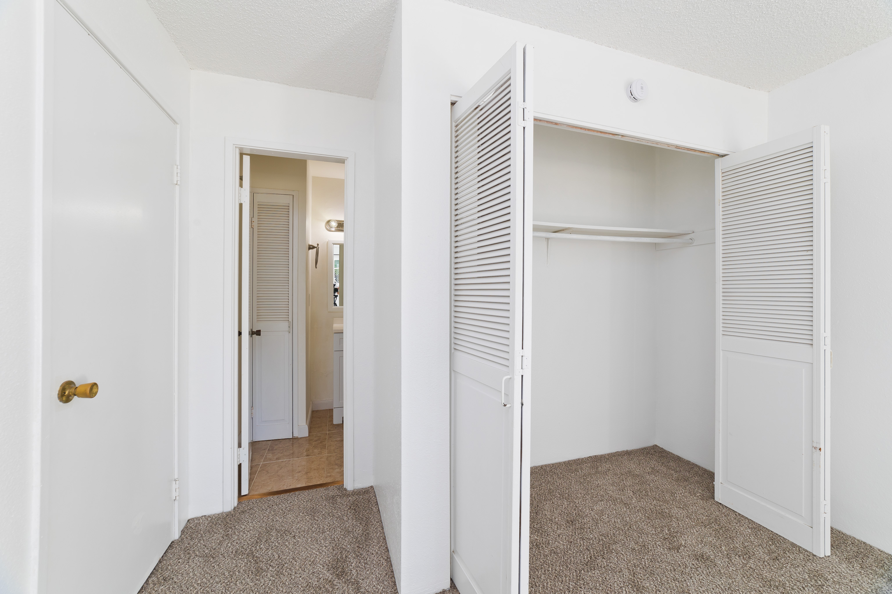 The condo is tiled throughout except for the bedrooms that have new carpet and padding. The unit is freshly painted and waiting for your creativity to make it your own. The upgraded hall bath has a walk in shower that is all tile and the primary bath has tile with tub. Kitchen has soft close cabinets and drawers.