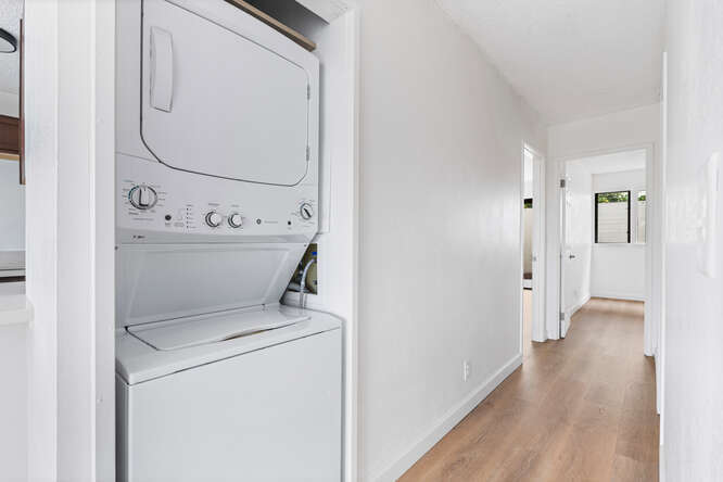 - Newer full size washer and dryer with modified closet so it fits with the door closed!