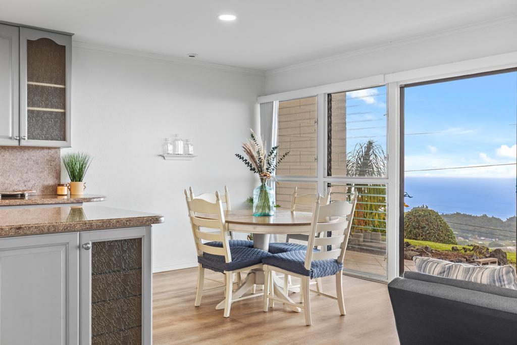 Enjoy the cool Kona climate and beautiful ocean views from this classy, remodeled ground-floor condo at Kona Coffee Villas. This spacious 2-bedroom, 2-bath unit features a front lanai to take in the sweeping ocean views and private enclosed backyard – perfect for relaxing or entertaining. Move right in and start enjoying island living today.