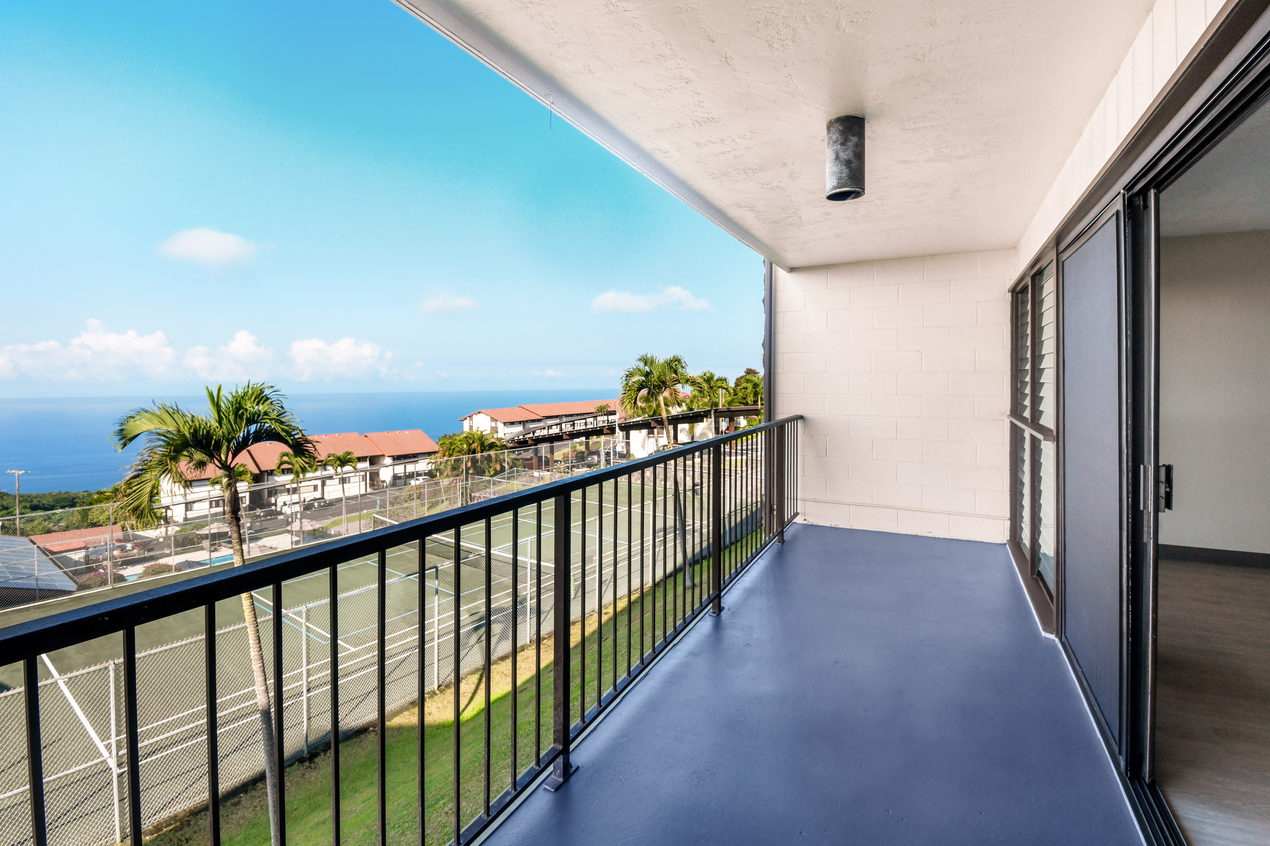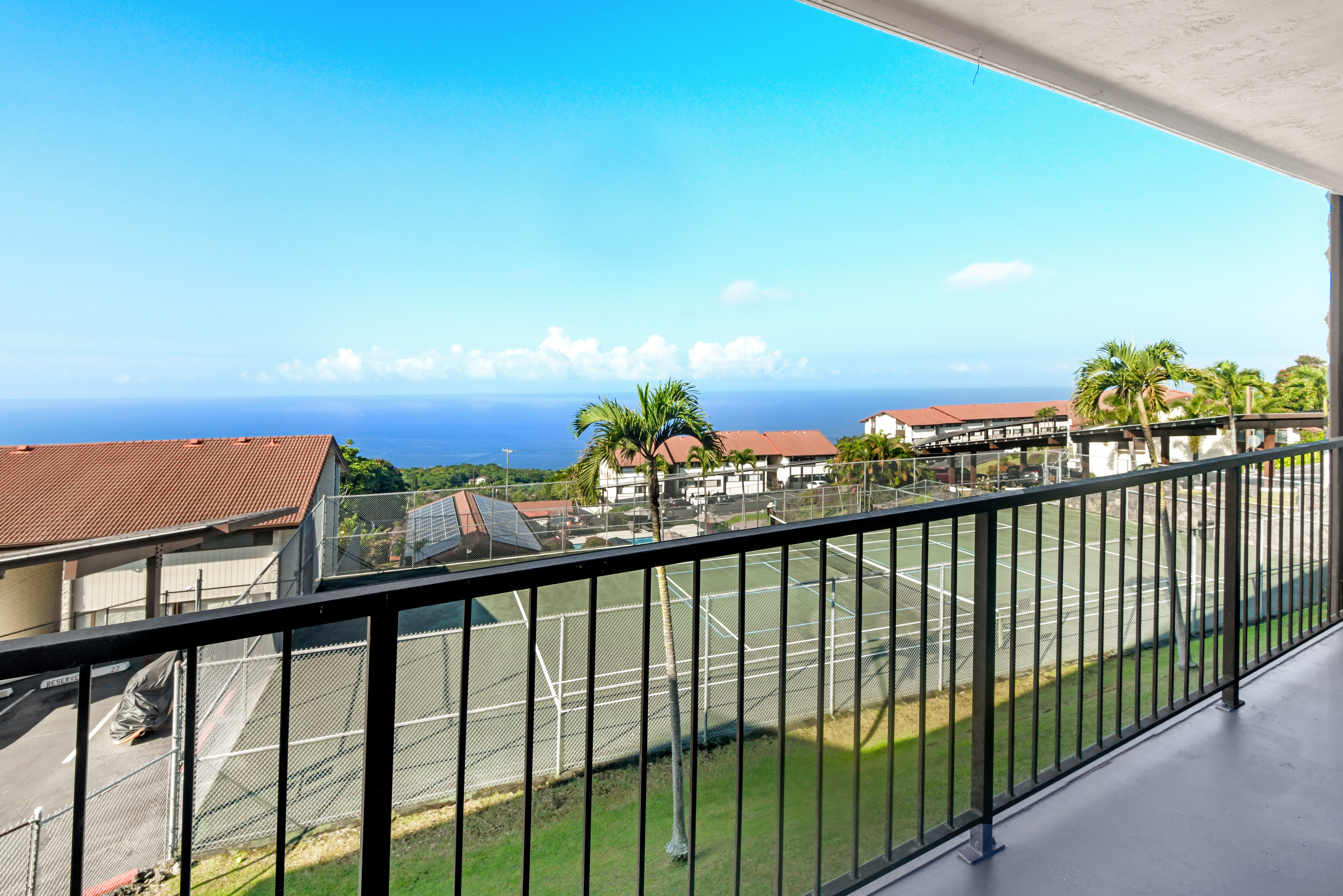 Live the Kona lifestyle from this beautifully remodeled 2-bedroom, 2-bath condo perched at a cool, comfortable elevation with sweeping ocean views. This inviting residence offers the perfect blend of island comfort and modern upgrades, just a short ride from the heart of Kailua-Kona. This condo is located in the C-building, which is the middle back building in the complex off of the main road and enjoys straight on ocean views. Step inside to discover a bright, open living space featuring sleek quartz countertops, updated cabinetry, and contemporary finishes throughout. The remodeled kitchen flows into the dining and living areas, creating an ideal setting for entertaining or simply relaxing while taking in the blue pacific beyond. Both bedrooms are generously sized, with the primary suite offering a private bathroom. Whether you’re enjoying morning coffee or evening sunsets, the cooler elevation provides year-round comfort and fresh island air. One of the properties standout features is its exceptional accessibility, only five easy steps to the unit, making daily living and grocery runs a breeze. This condo is ideal as a full-time residence, second home, or investment property, offering everything you need to enjoy effortless island living. Short term rentals allowed with a minimum of 7 days. Walk-through video: https://player.vimeo.com/video/1160307828