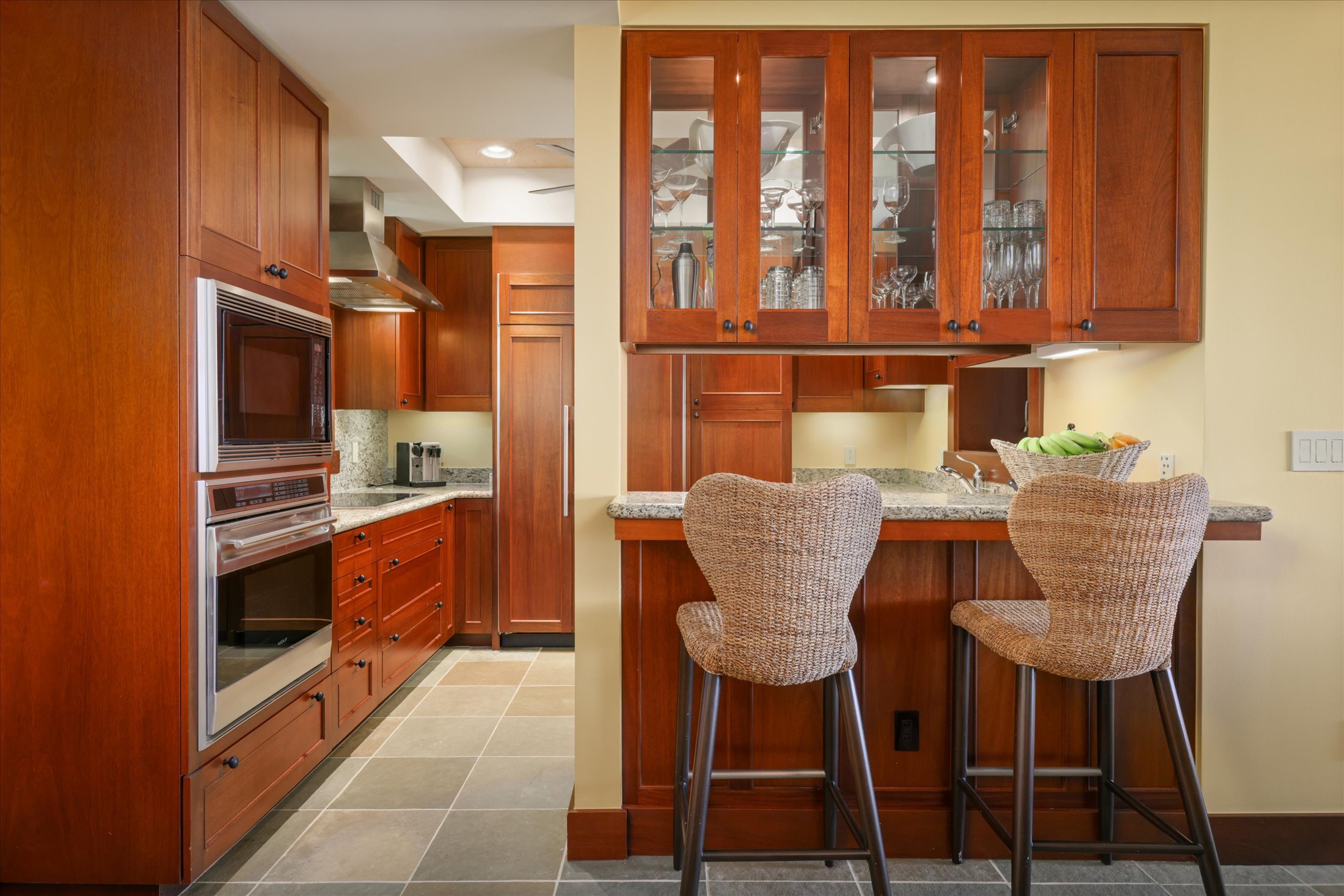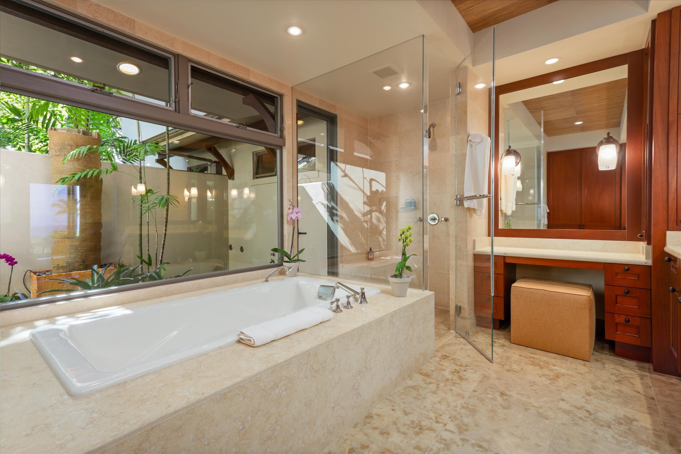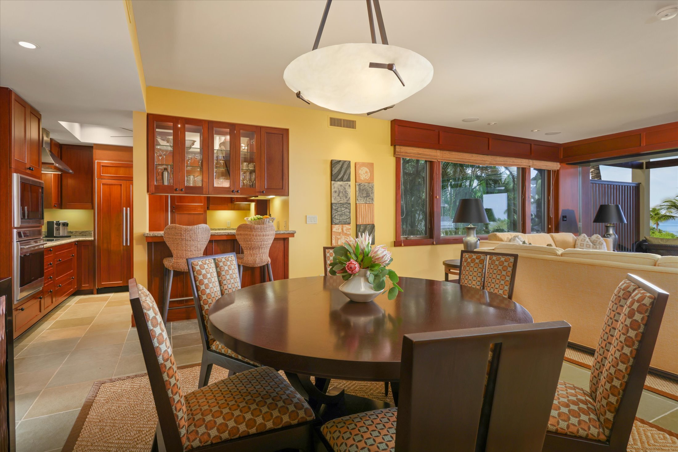 Hainoa Villa 2903A (#15) offers a rare opportunity to own an entry-level residence within the world-renowned Hualalai Resort, home to the Four Seasons Resort Hualalai. This single-level, garden-level, two-bedroom, two-bath corner condominium is ideally located in an elevated area of the resort, capturing panoramic Pacific Ocean views, gentle trade winds, and breathtaking sunsets. Designed for seamless indoor-outdoor living, the great room opens through sliding pocket doors with rich mahogany shutters to a covered lanai with a built-in Wolf BBQ, granite countertops, and a Sub-Zero refrigerator, perfect for entertaining. The large primary suite includes a private ocean-view lanai, a walk-in closet with built-ins, a spa-style bath with a deep soaking tub, dual vanities, and a signature outdoor shower garden. The well-appointed kitchen showcases top-of-the-line appliances, granite counters, and custom mahogany cabinetry. Additional features include an enclosed one-and-a-half-car garage with storage and a 4-seat golf cart included in the sale. Conveniently located within a short distance to the Members-only Ke‘olu Clubhouse. Membership in The Hualalai Club can be purchased separately from the real estate purchase. Hualalai Club members can access amenities, including two championship golf courses, Residents’ Beach House, Canoe Club, Tennis Club, Sports Club & Spa, ocean pursuits, concierge services, and beach and pool facilities at the Four Seasons Resort Hualalai. Sold turn-key furnished. Vacation Rental is allowed under Four Season's Hualalai Resort rules.