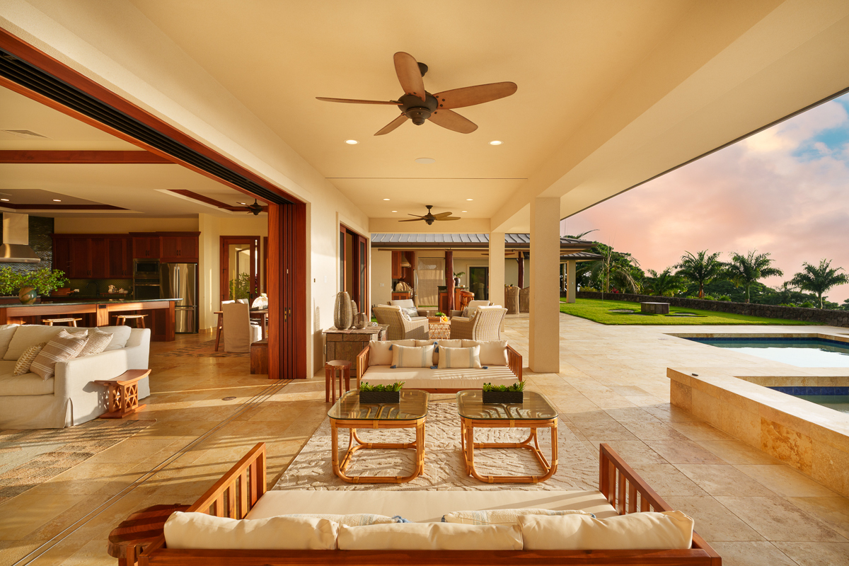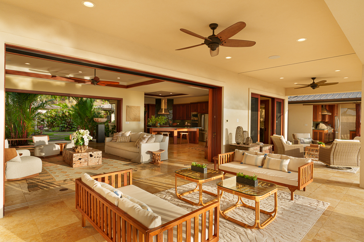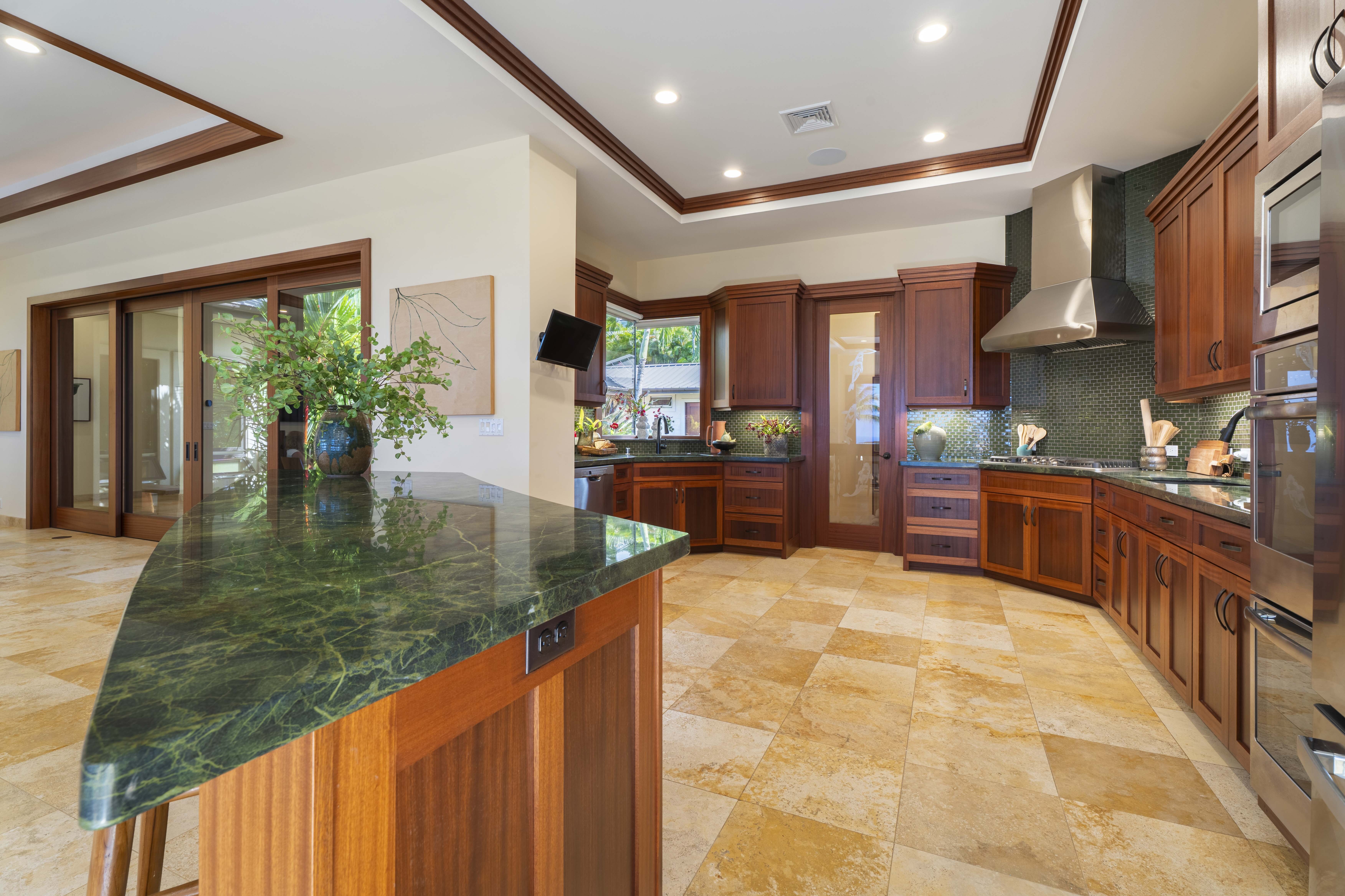 Refined details and natural materials create understated elegance. Nine-foot sapele mahogany doors, rich wood trim, and Gold Andes travertine floors that flow across more than 5,000 square feet of indoor-outdoor living. Handcrafted ?Ohi?a wood posts add warmth and authenticity, while a built-in sound system fills the home with music.