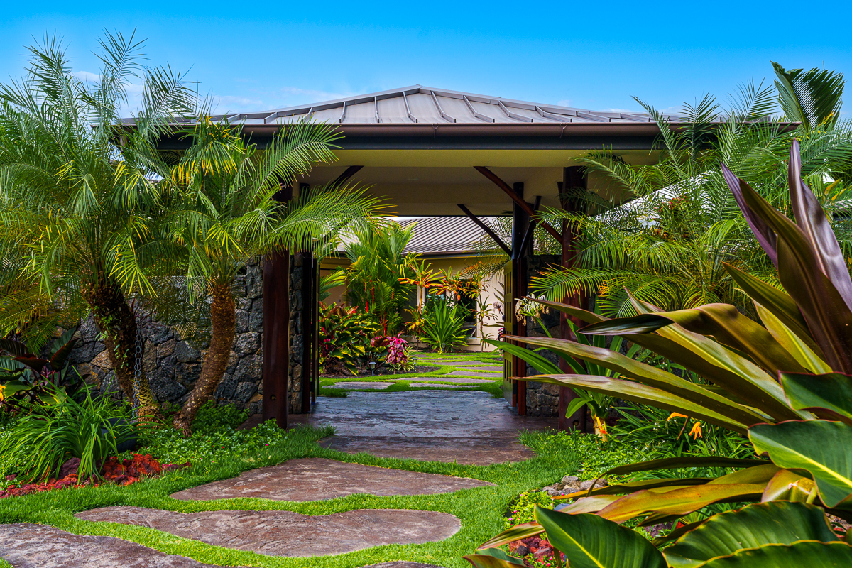Set at an ideal elevation of 840 ft., the property enjoys gentle ocean breezes and light showers that keep the lush tropical landscaping vibrant. Along the north boundary, a plantation of mature trees forms a natural privacy screen and lush green backdrop.
