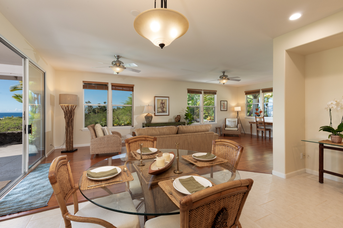 Welcome home to Kahakai Estates, one of Kailua-Kona’s most sought-after gated communities – just a mile from town, yet a world away in peace and privacy. This beautiful single-level island home offers a refreshing sense of space with over half an acre of land and sweeping ocean views.