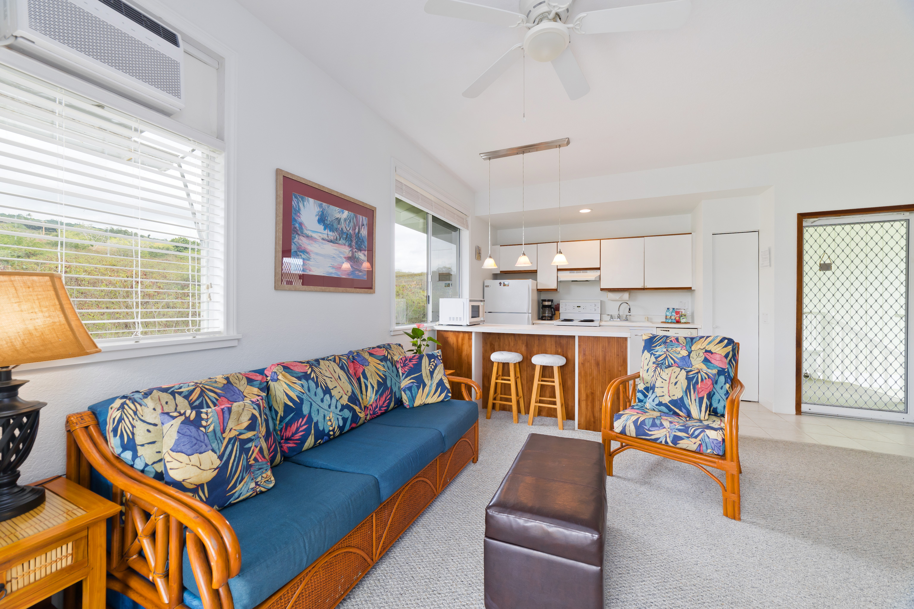 What you'll love? The big lanai, seriously, it’s your private spot to sip coffee, catch sunsets, and chill with those sweet ocean breezes. The living space flows effortlessly to the lanai, giving you that open, airy feel we all crave. The bedroom? Light-filled and super cozy, with a California King bed for serious relaxation. The kitchen is efficient, perfect for whipping up your favorite island meals.