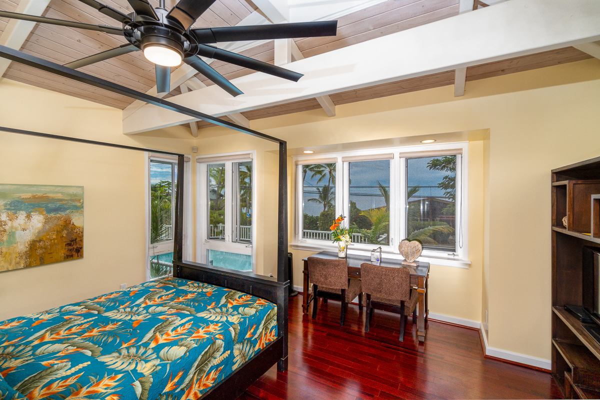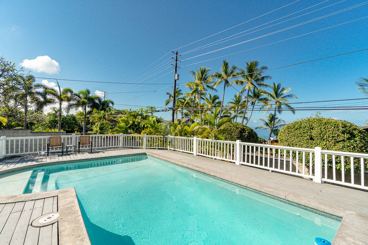 Designed for indoor/outdoor living, This open & Airy Bungalow-Beachhouse is located across the street from the Kona shoreline and steps away from Kahaluu Beach Park. Featuring a Chef's kitchen, spacious, covered and open lanai for dining and sunbathing, and a large enclosed above ground pool for a nice cool down. Kitchen boasts Travertine flooring, vaulted ceilings, Koa cabinetry, and Van Gogh granite tops with Teal & Aqua blue coloring and orange, burgundy, and white veining. Master bedroom has its own walk in shower and is accessed from the living area. The second bedroom has its own bath, separate driveway, one car enclosed garage, and separate entrance for privacy. It can also be accessed from the upper lanai. Plenty of room behind house in covered area to add extensions to house or accommodate a boat. Approximately 2 miles South of White Sands Beach, the largest beach in Kona.