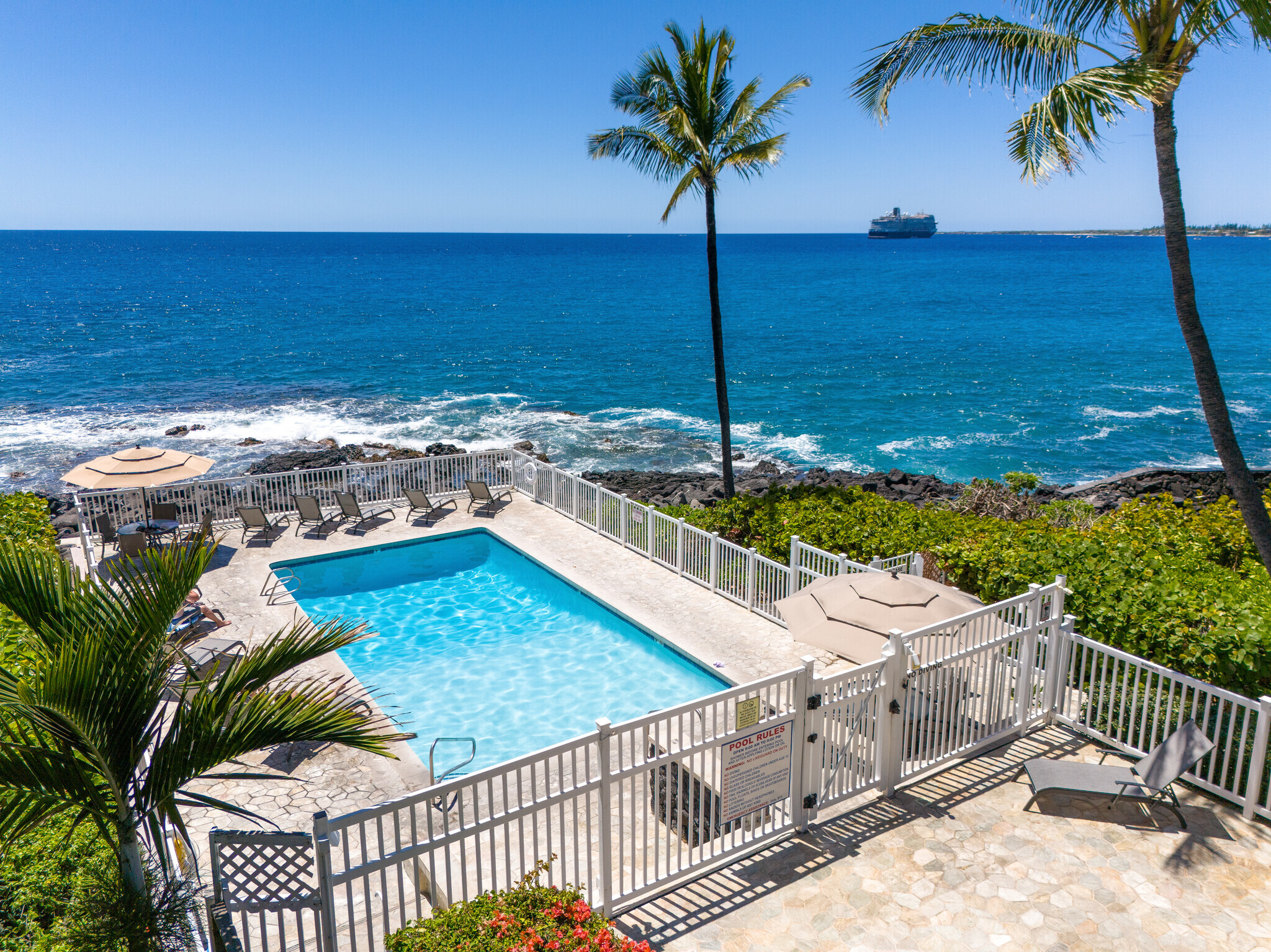 Kona Shores allows short-term vacation rentals (STVR), and this unit holds an active registration with a strong record of consistent bookings and returning guests. A truly special opportunity to enjoy the best of oceanfront Kona living–where every day ends with a sunset over the Pacific.
