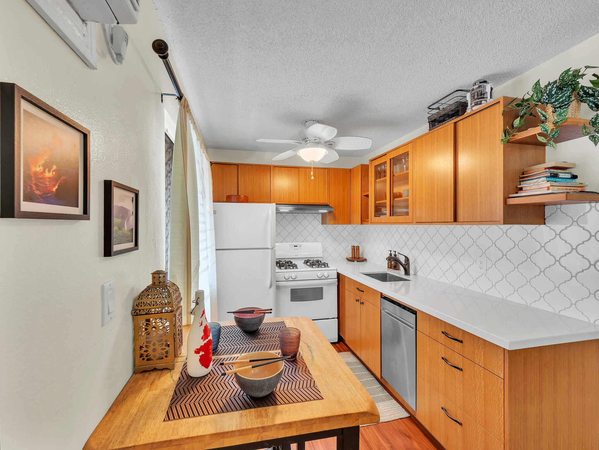 Discover the charm of Kona Shores #232, a beautifully upgraded 2-bedroom, 1-bath condo ideally located on the ocean side of Ali‘i Drive–just minutes from Kona’s best beaches, shops, and restaurants. This sought-after oceanfront community offers direct shoreline access, the perfect spot to unwind and watch spectacular sunsets or feel the refreshing ocean breeze. Enjoy the resort-style oceanfront pool that glows at night, along with a well-equipped BBQ area featuring counters, sinks, and two convenient bathrooms. The community also provides on-site laundry facilities for added ease and comfort.