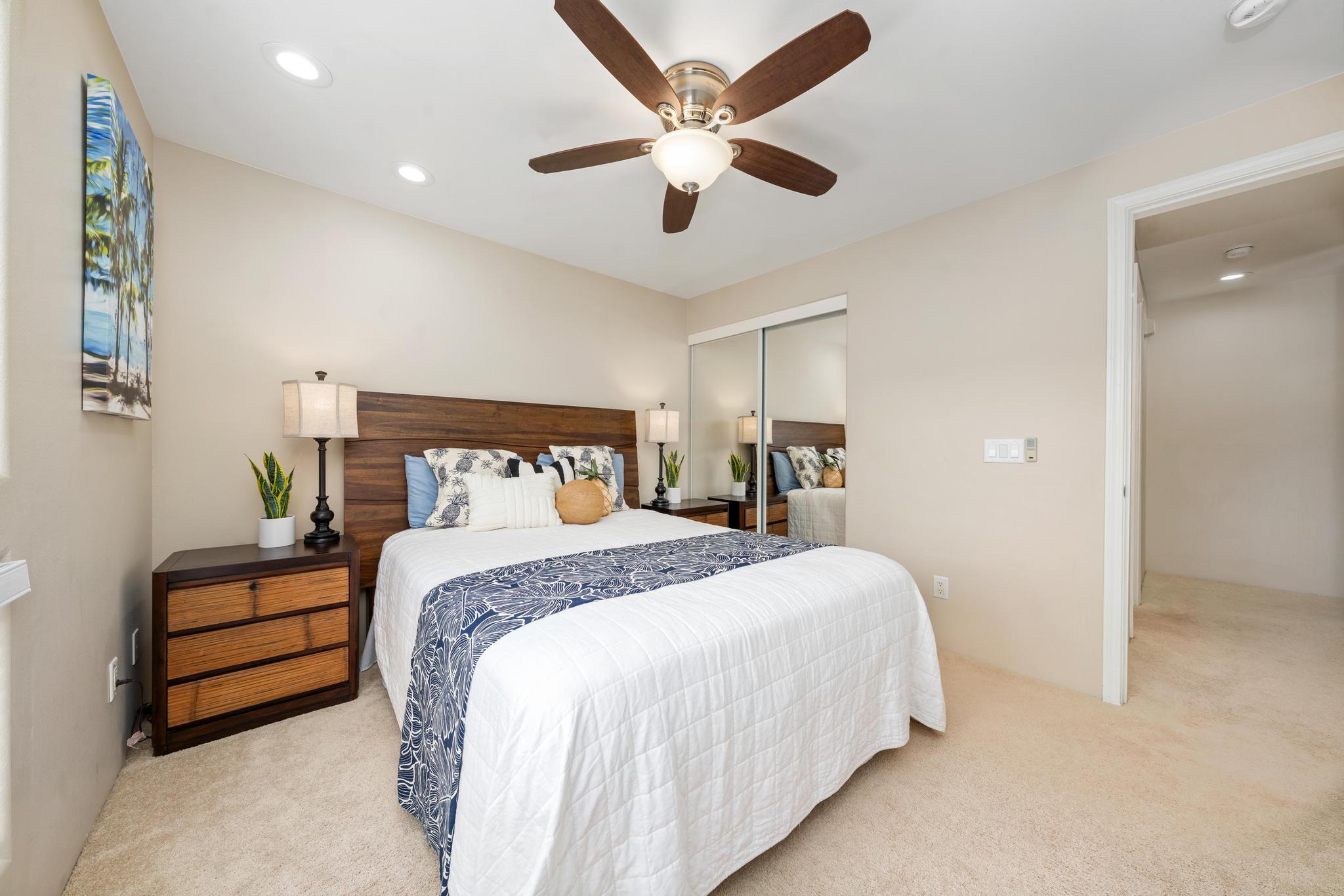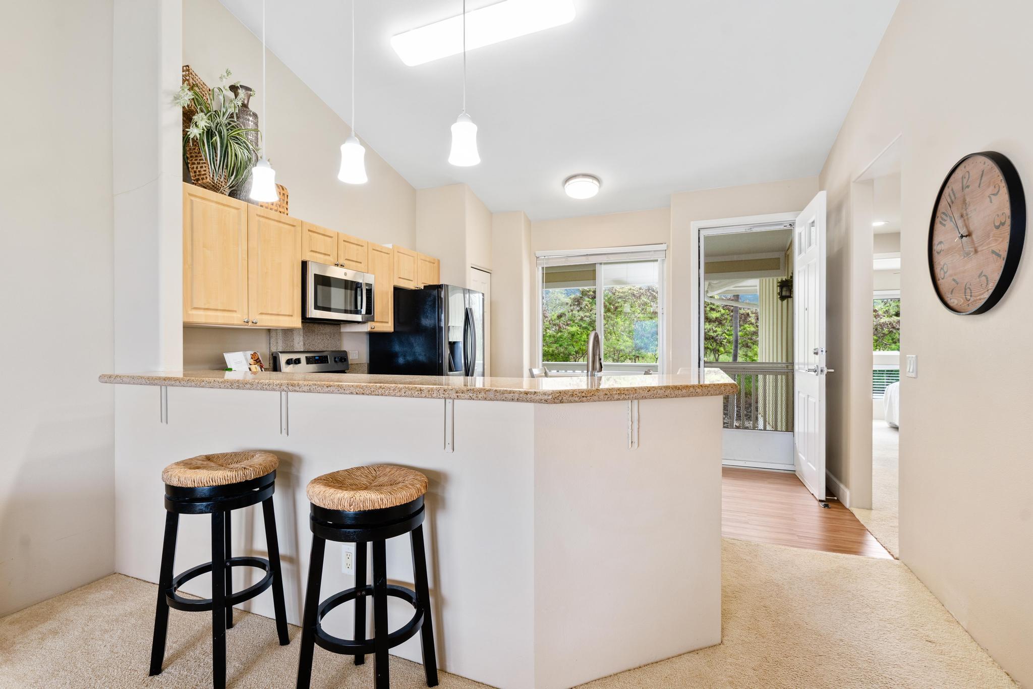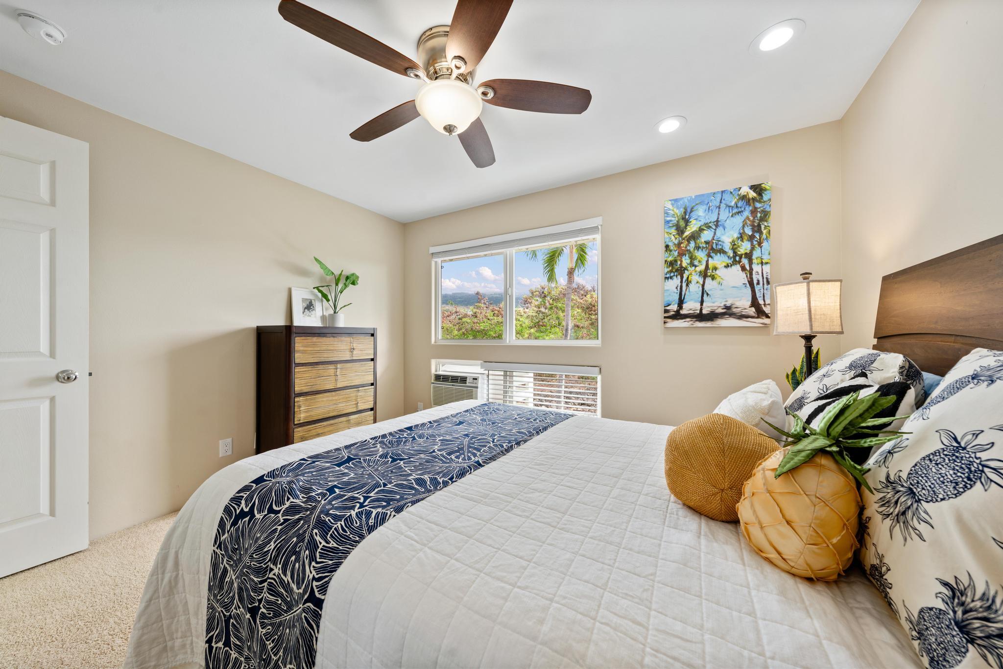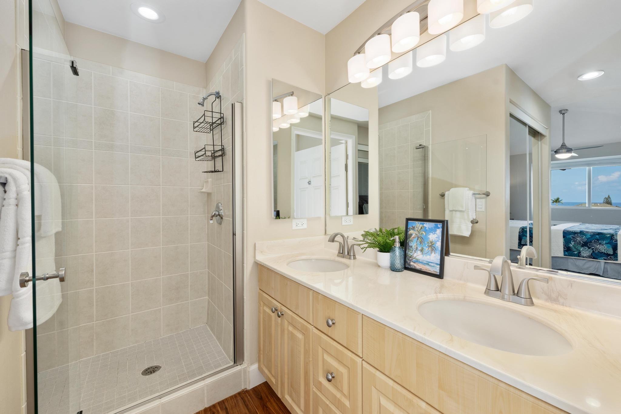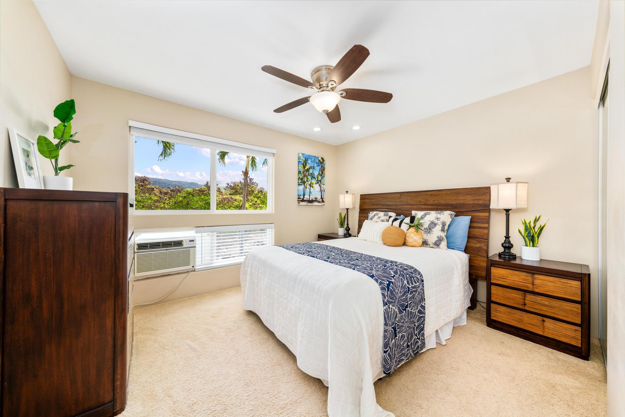 Situated atop the condo complex in the gated Kona Sea Ridge community on Ali`i Drive, K23 boasts stunning ocean views and features a fully furnished 2-bedroom, 2-bathroom layout that perfectly blends comfort, privacy, and the essence of island living. Located on the second floor, it offers ocean views from the kitchen, living room and primary bedroom and complemented by air conditioning, refreshing cross breezes, and ceiling fans to maintain a cool and welcoming atmosphere. The open-concept layout boasts vaulted ceilings in the kitchen and living area, creating a spacious and light-filled environment. The well-equipped kitchen features granite countertops, generous storage, and a breakfast bar, merging functionality with style. The primary bedroom serves as a comfortable ensuite, complete with a walk-in shower, while the guest bedroom offers privacy with beautiful Hualalai mountain view. Step out onto the covered lanai to savor ocean views and fresh breezes–an ideal spot for morning coffee or evening sunsets. The unit also includes a stacked washer/dryer and two assigned parking spaces, one of which is covered. Located in a tranquil area of the community, this condo offers resort-style amenities such as a fitness center, pool, hot tub, BBQ area, and community pavilion. Embrace the delightful coastal lifestyle of Kona in this move-in-ready condition!