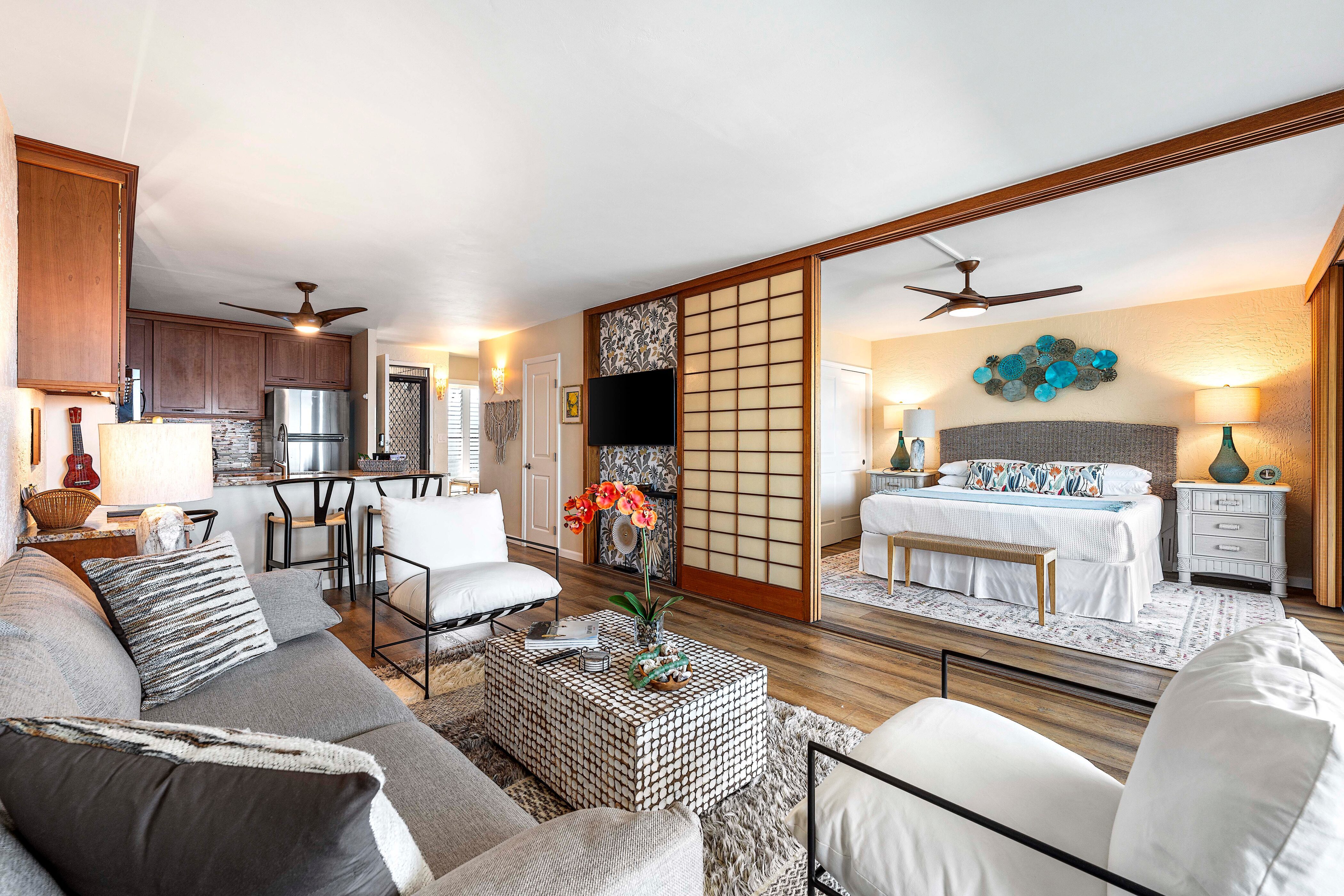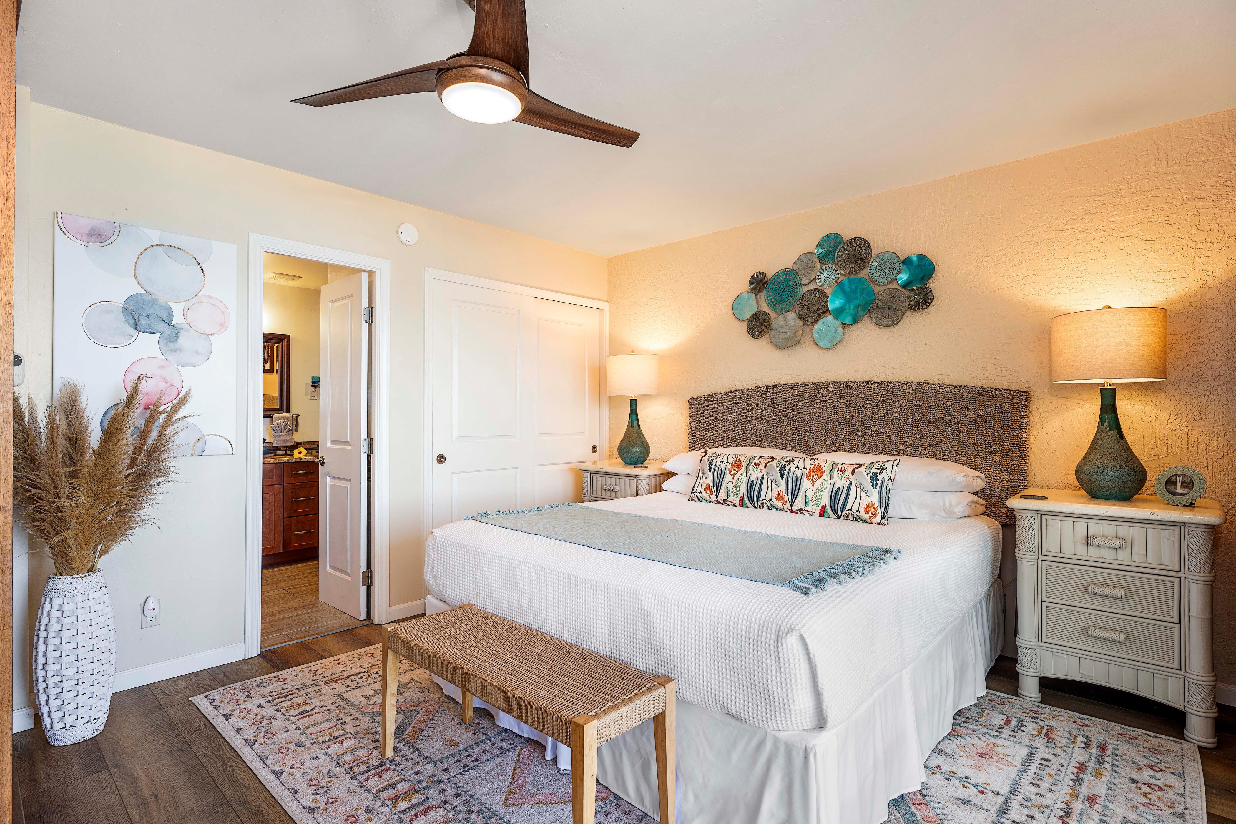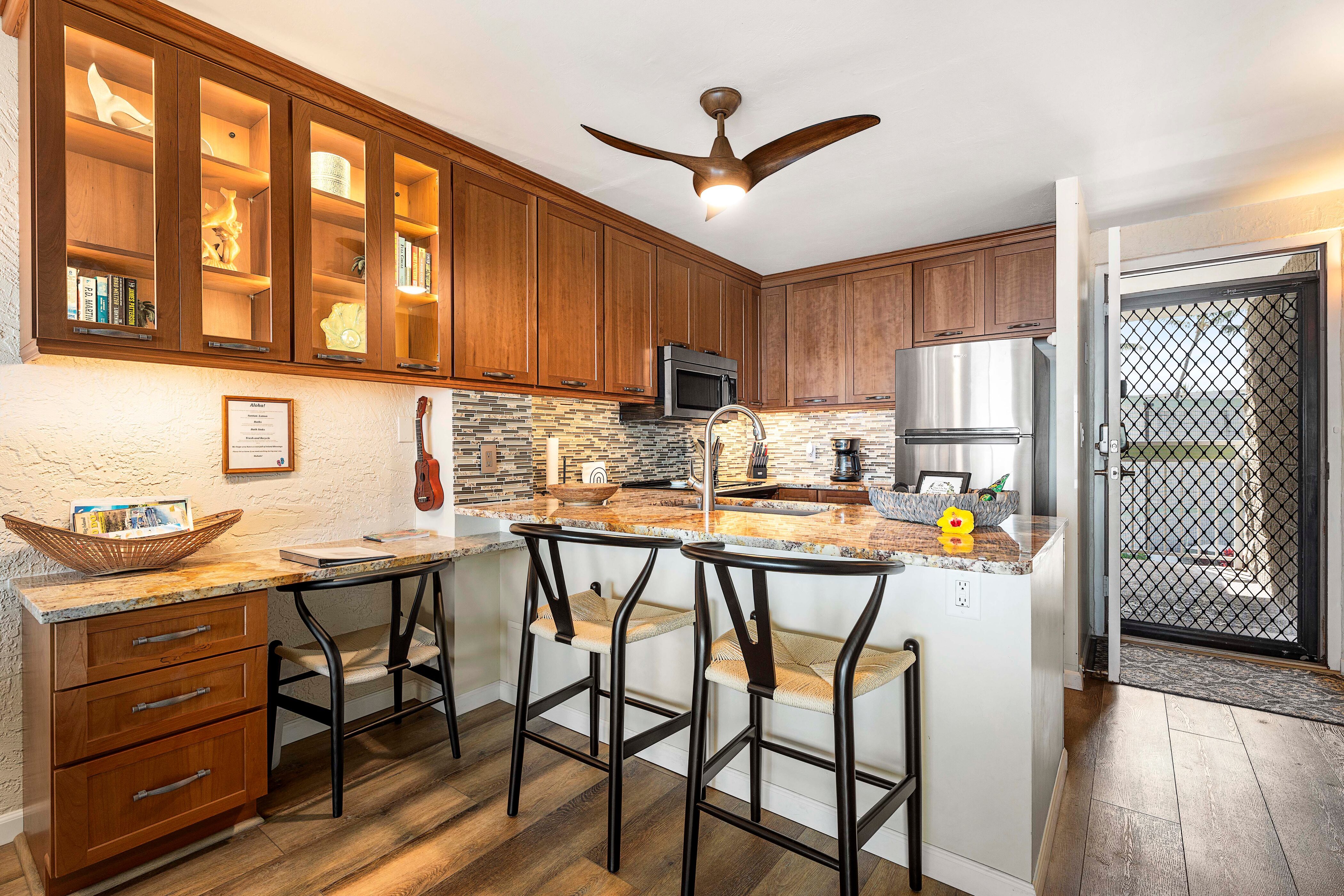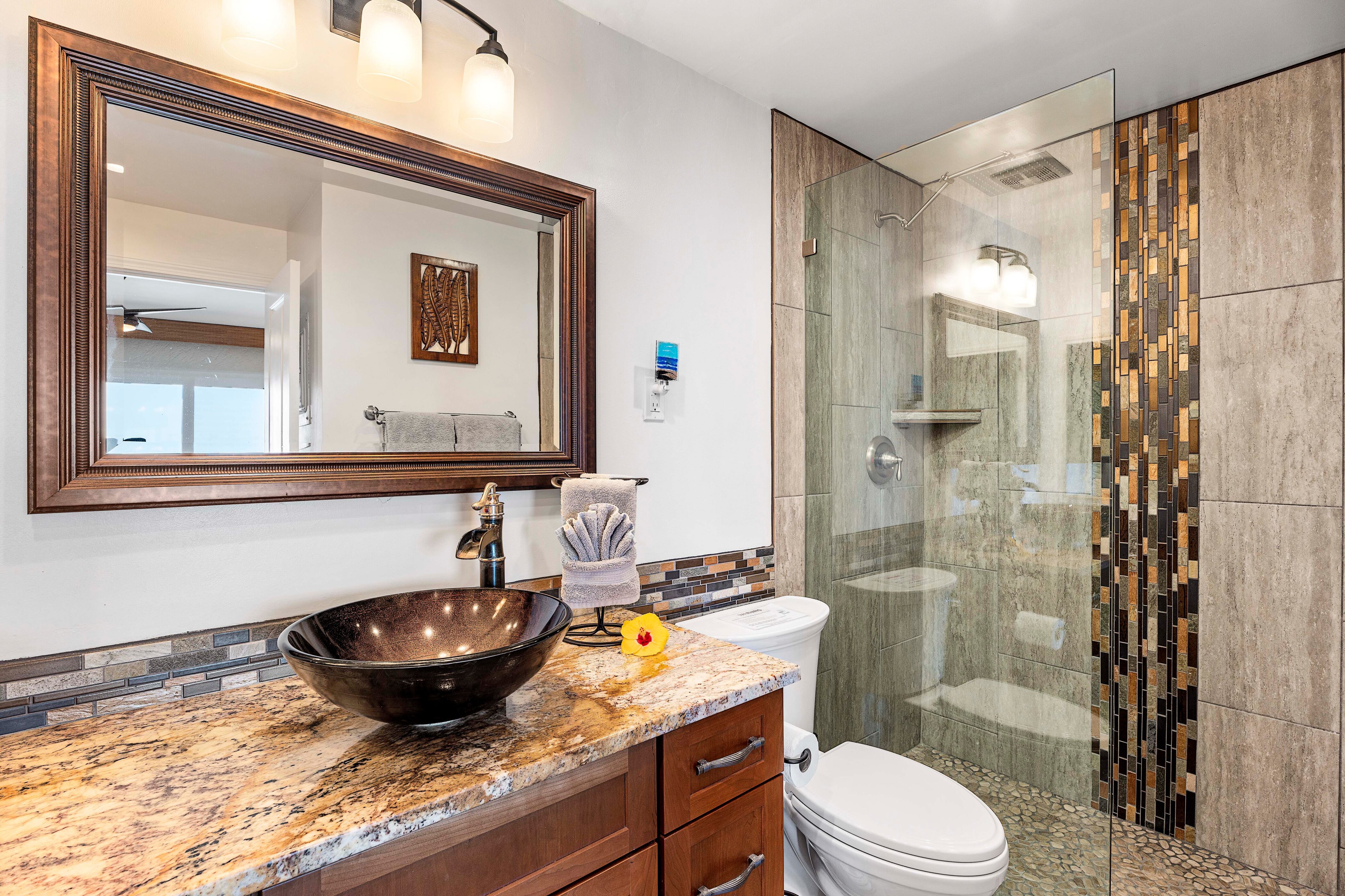 Welcome to Alii Villas! Experience the best of Kailua-Kona from this ultra-clean, designer-renovated oceanfront penthouse –where breathtaking views, timeless design, and direct ocean access come together for exceptional island living. Wake up to the sound of waves, feel cooling ocean breezes drift through the home, and watch palm trees sway against the sparkling waters of Kona Bay. The 2-bedroom, 2-bath home was thoughtfully renovated in recent years and meticulously maintained, resulting in a clean, contemporary island aesthetic that lives beautifully. Discover a redesigned kitchen and baths featuring Thomasville cabinetry, under-cabinet lighting, granite counters, glass-enclosed showers, modern appliances, luxury vinyl plank flooring, windows, and sliding doors. Step into this open-concept living space designed for entertaining and meaningful time with family and friends, that flows seamlessly to a spacious oceanfront lanai, effectively extending the living space outdoors for relaxed waterfront lounging and dining. The oceanfront primary bedroom is a serene retreat, where you’ll drift off to sleep to the sound of the surf. Shoji-style privacy screens allow the space to open visually during the day, expanding sightlines and maximizing ocean views. Enjoy direct ocean access and a front-row seat to Hawai‘i’s marine life, with dolphins often playing offshore, seasonal whale sightings, and the occasional sea turtle gliding by below. From morning walks along iconic Ali‘i Drive to sunset evenings overlooking the water, this location offers effortless coastal living just minutes from downtown Kailua-Kona’s restaurants, shopping, and ocean activities. This successful vacation rental is offered turnkey, furnished, with immediate income potential Don’t miss this rare opportunity to own a turnkey oceanfront penthouse in the heart of Kailua-Kona, where lifestyle, location, and timeless island living come together!