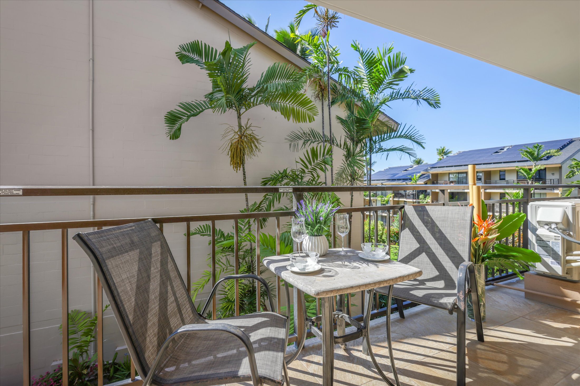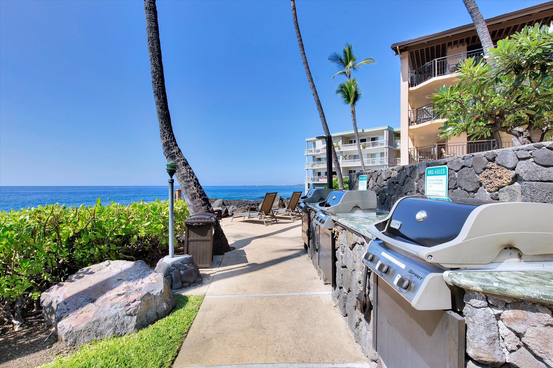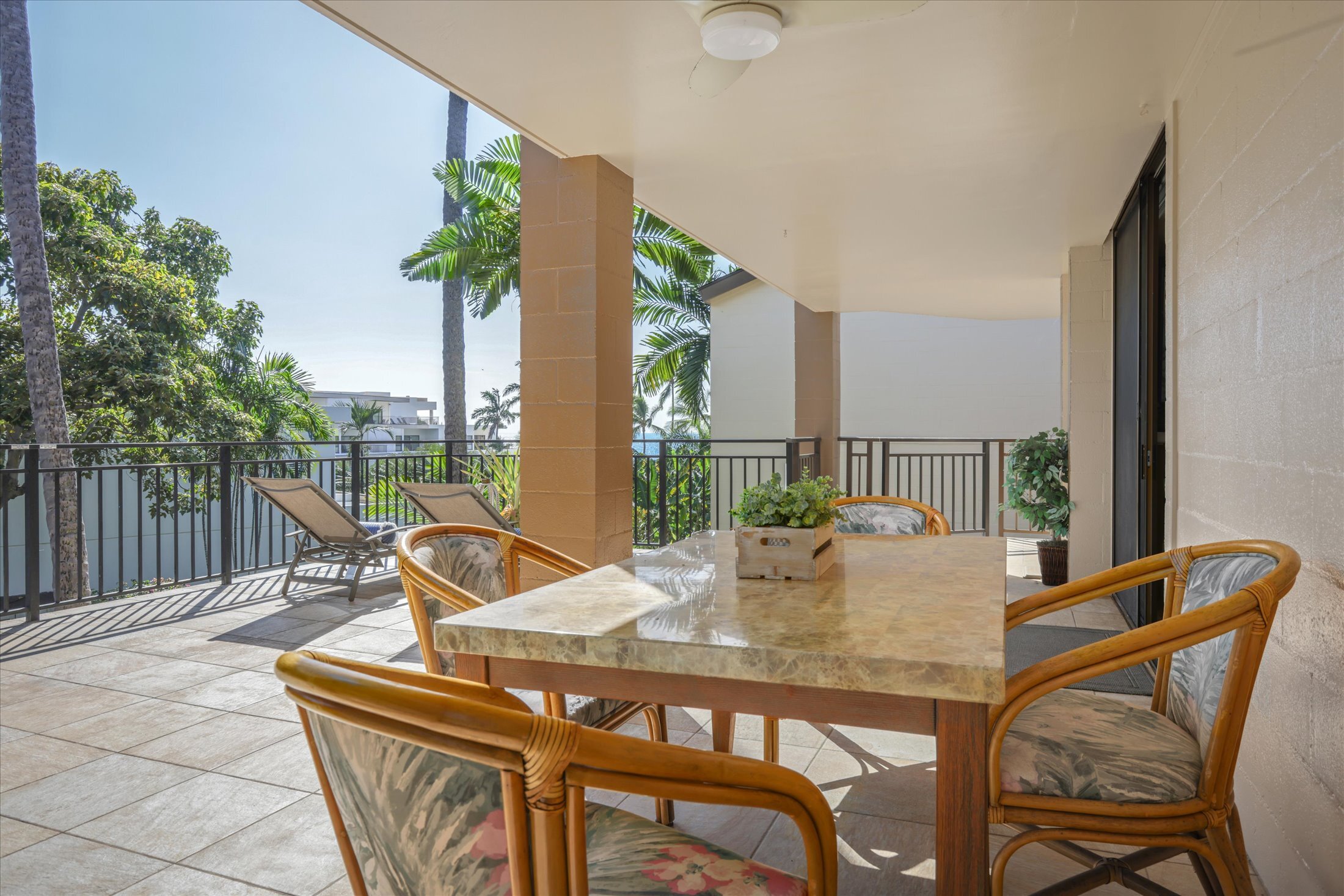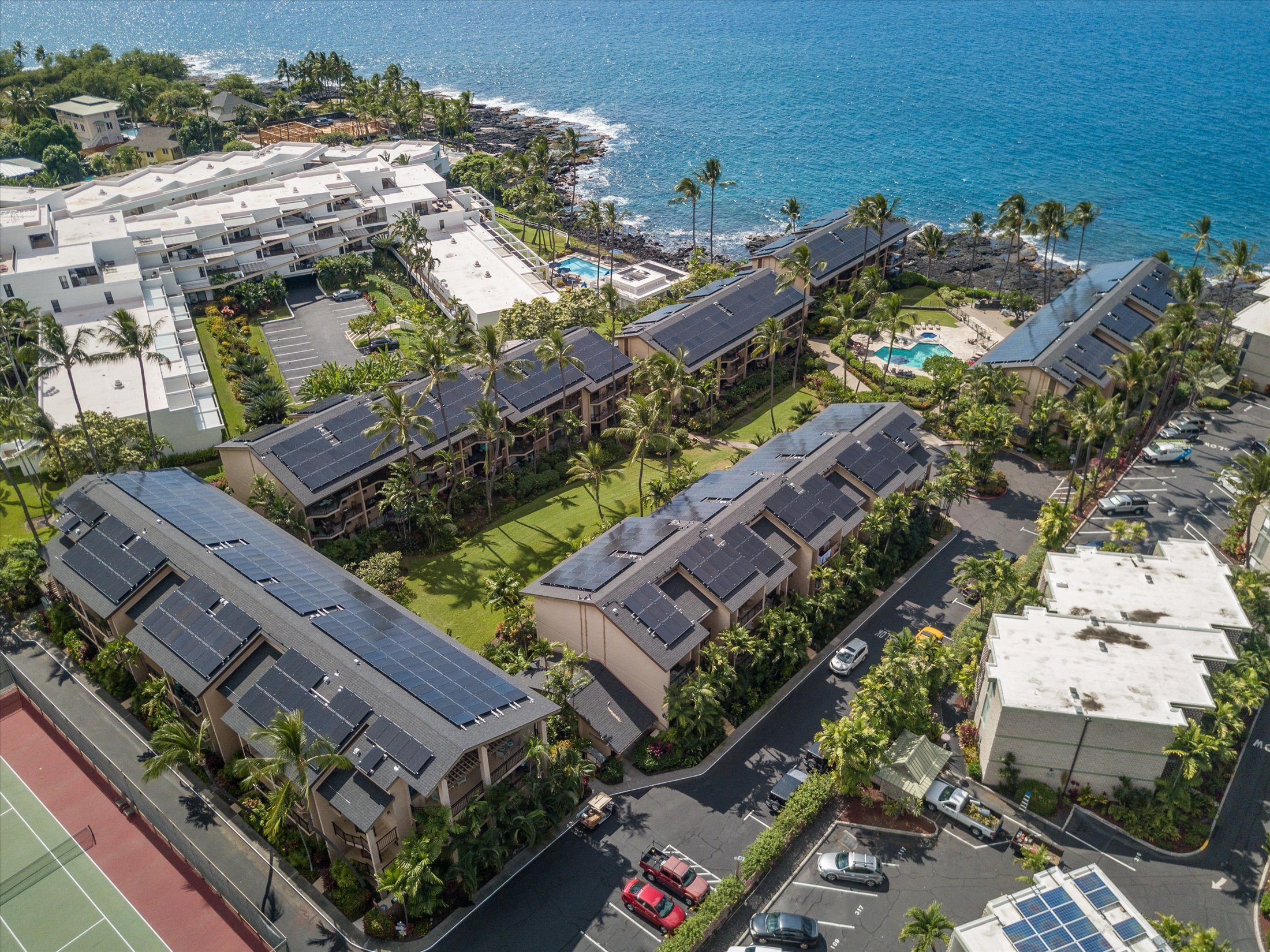 This is a leasehold property. Oversized wrap around lanai and peek-a- boo ocean views make this two bedroom 2 bath condo a must see. Granite countertops, fully furnished, second floor location right by parking and tennis courts. Award winning Kona Makai has so much to offer! Swimming pool, hot tub, gym ocean access and tennis. Conveniently located on Ali'i drive. This condo comes equipt with ac in both the living room and primary suite, Stacked washer and dryer, built in microwave, FS Fridge and range. Come enjoy the view and all the amenities this gated community has to offer.