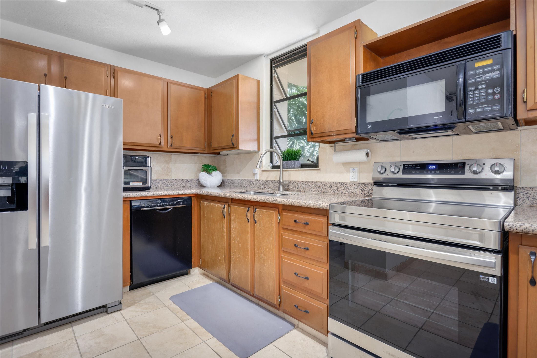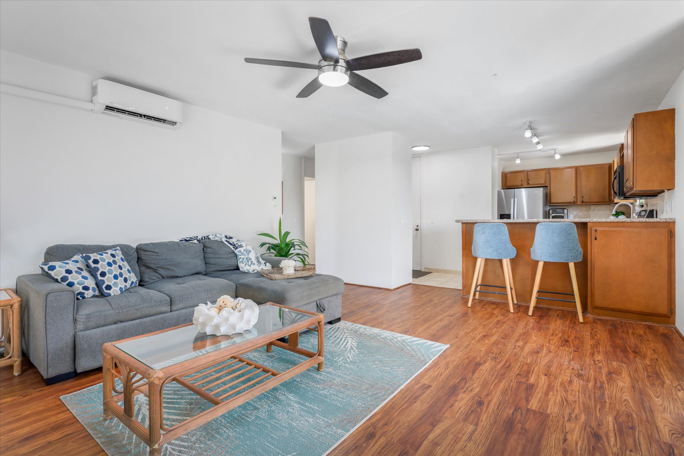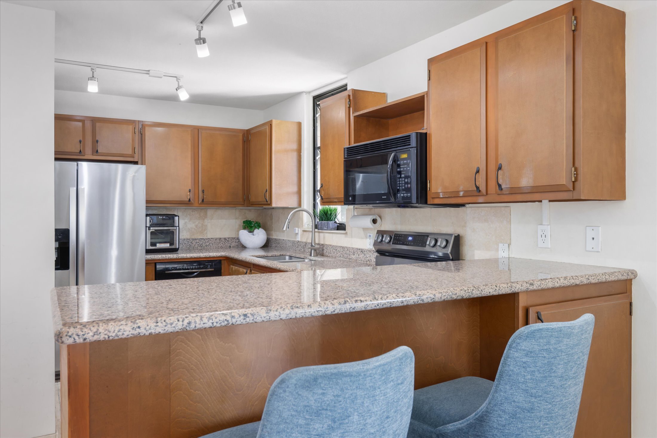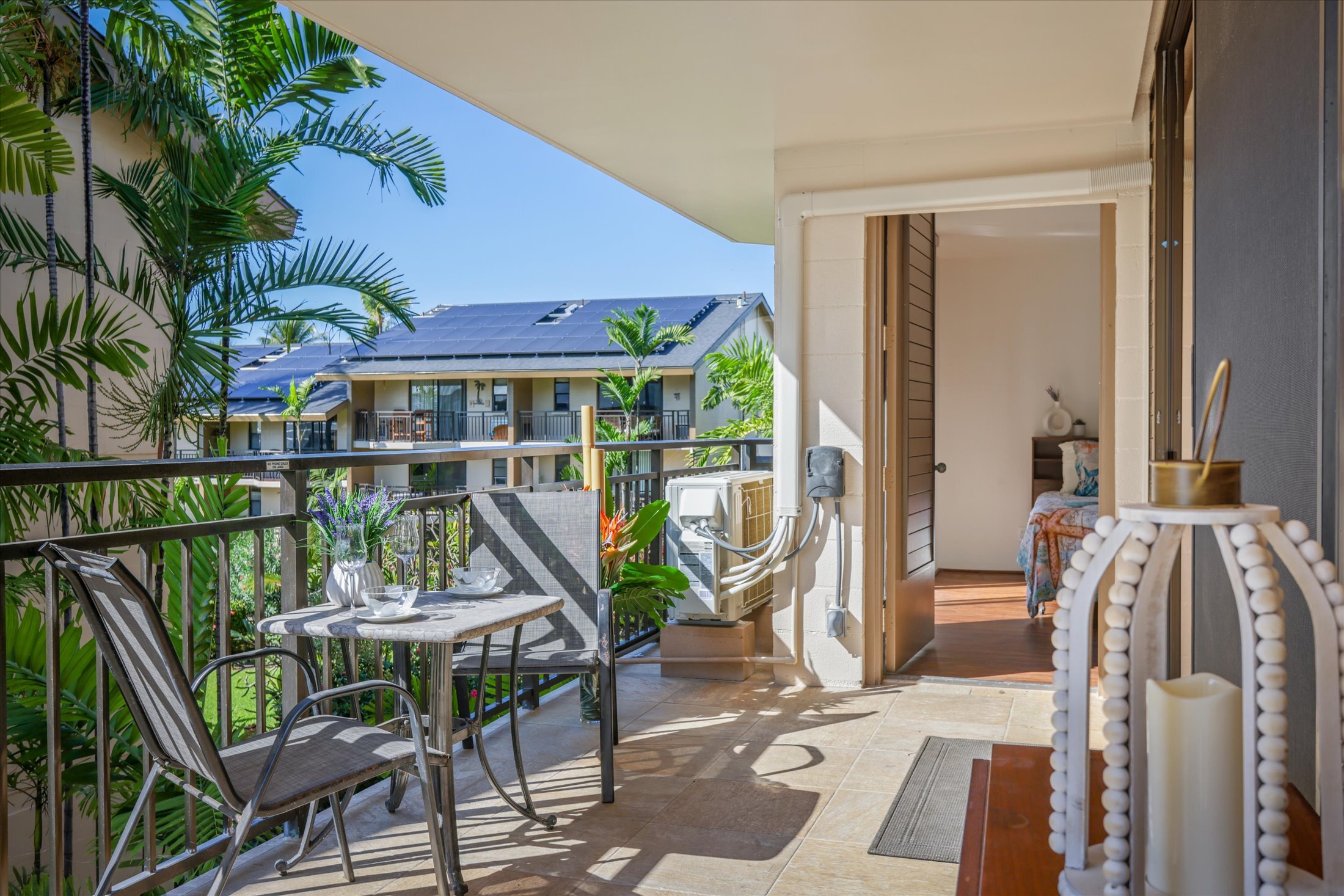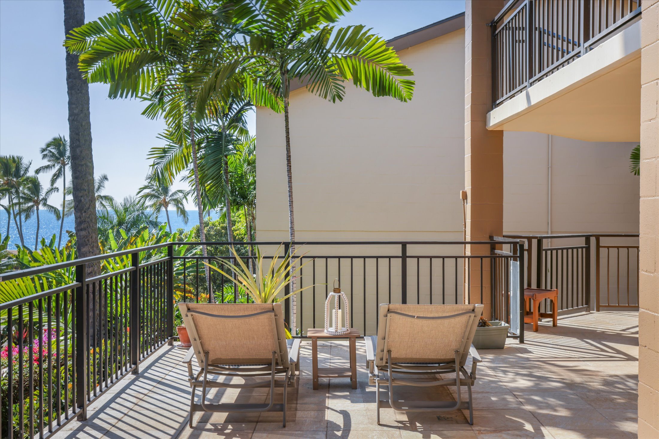 This is a leasehold property. Oversized wrap around lanai and peek-a- boo ocean views make this two bedroom 2 bath condo a must see. Granite countertops, fully furnished, second floor location right by parking and tennis courts. Award winning Kona Makai has so much to offer! Swimming pool, hot tub, gym ocean access and tennis. Conveniently located on Ali'i drive. This condo comes equipt with ac in both the living room and primary suite, Stacked washer and dryer, built in microwave, FS Fridge and range. Come enjoy the view and all the amenities this gated community has to offer.