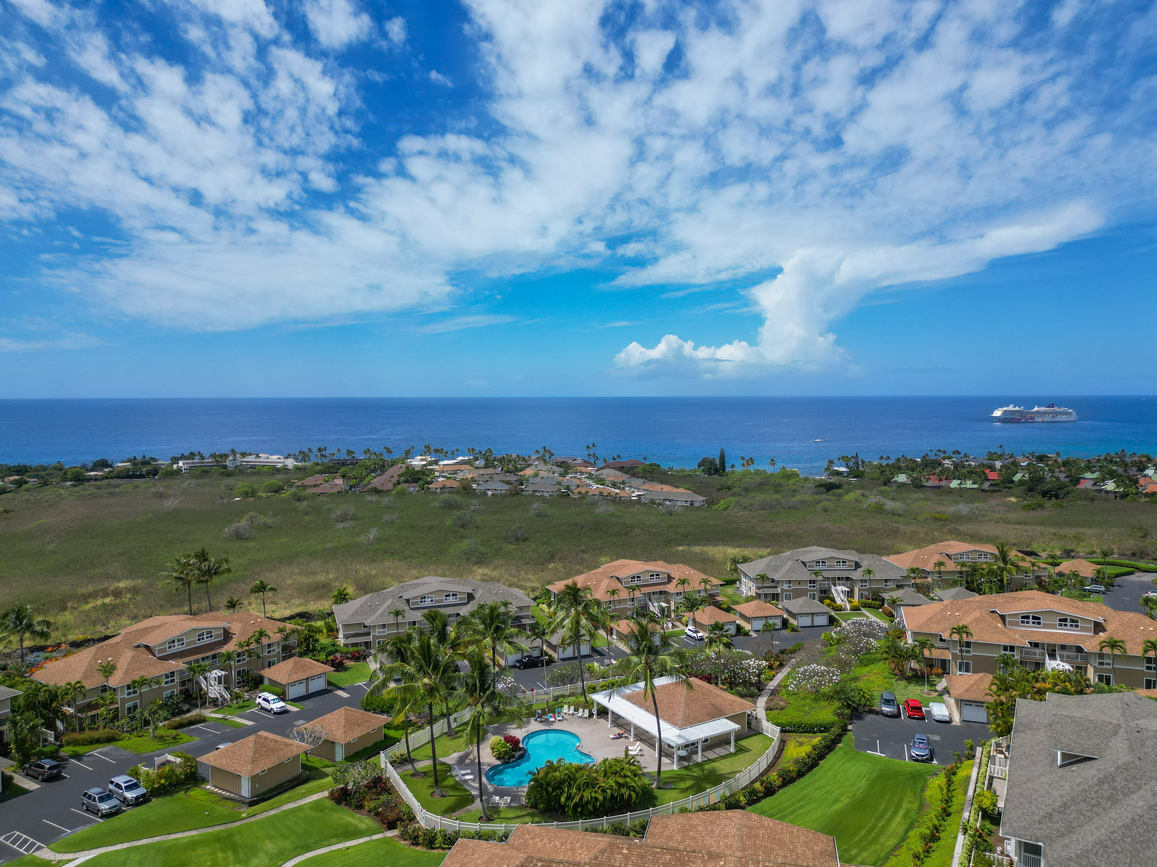 A beautiful unit located in the Kona Sea Villas with Year Round Sunsets. A very welcoming environment in a private community where one can enjoy peace and beauty. Community comes equipped with a walking path, pool, fitness center, and BBQ area. Inside the unit you will find an updated spacious kitchen that includes top of the line appliances: