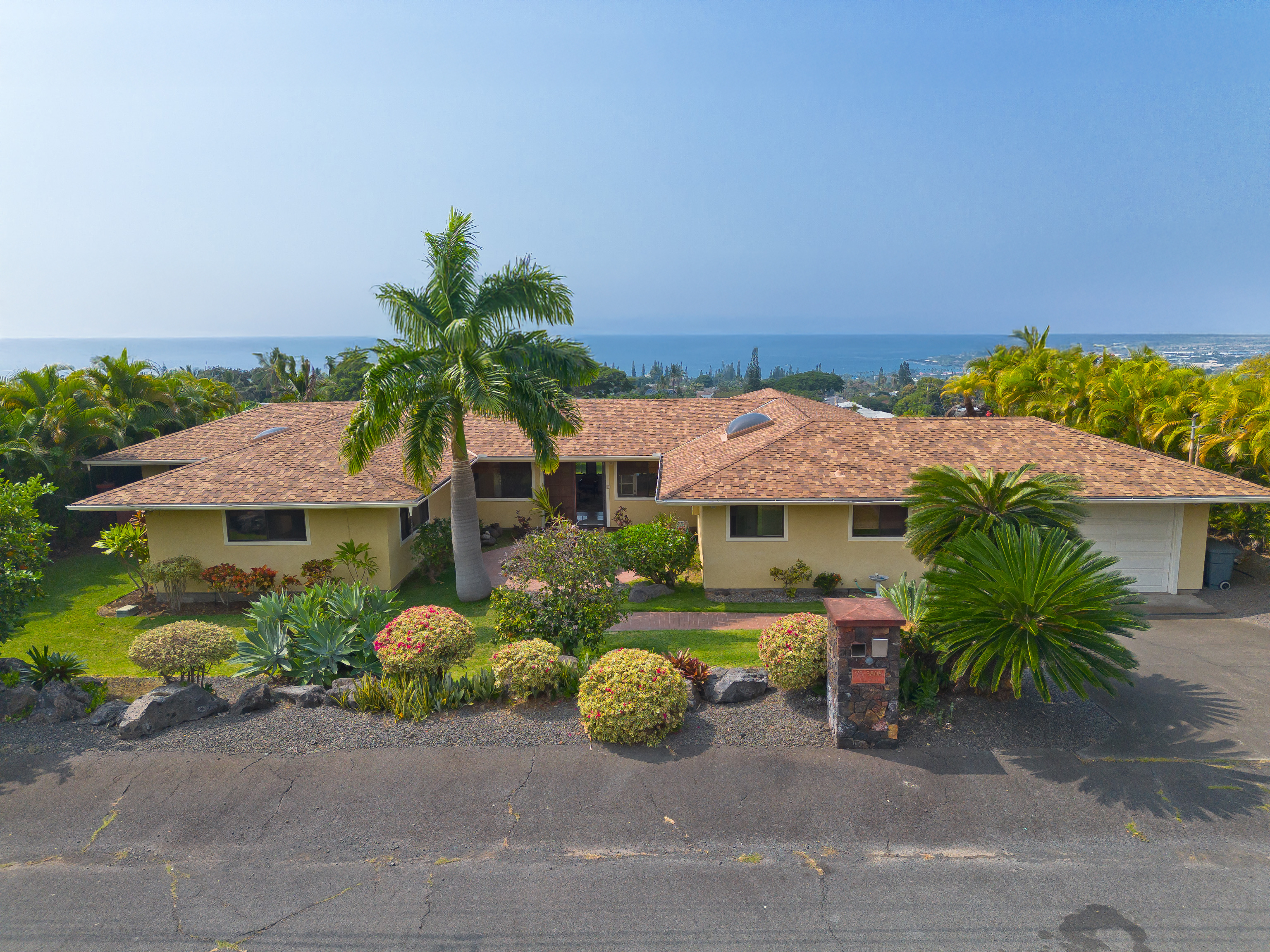 Welcome to your tropical haven in the heart of Kailua Kona, Hawaii! Situated in a quiet cul-de-sac at the higher elevation of the coveted Kailua View Estates subdivision, this meticulously designed 2,128 sq ft single level residence offers exceptional island living with Hawaiian-style touches throughout. Enjoy breathtaking, unobstructed ocean views and a host of custom features designed to enhance your everyday living.