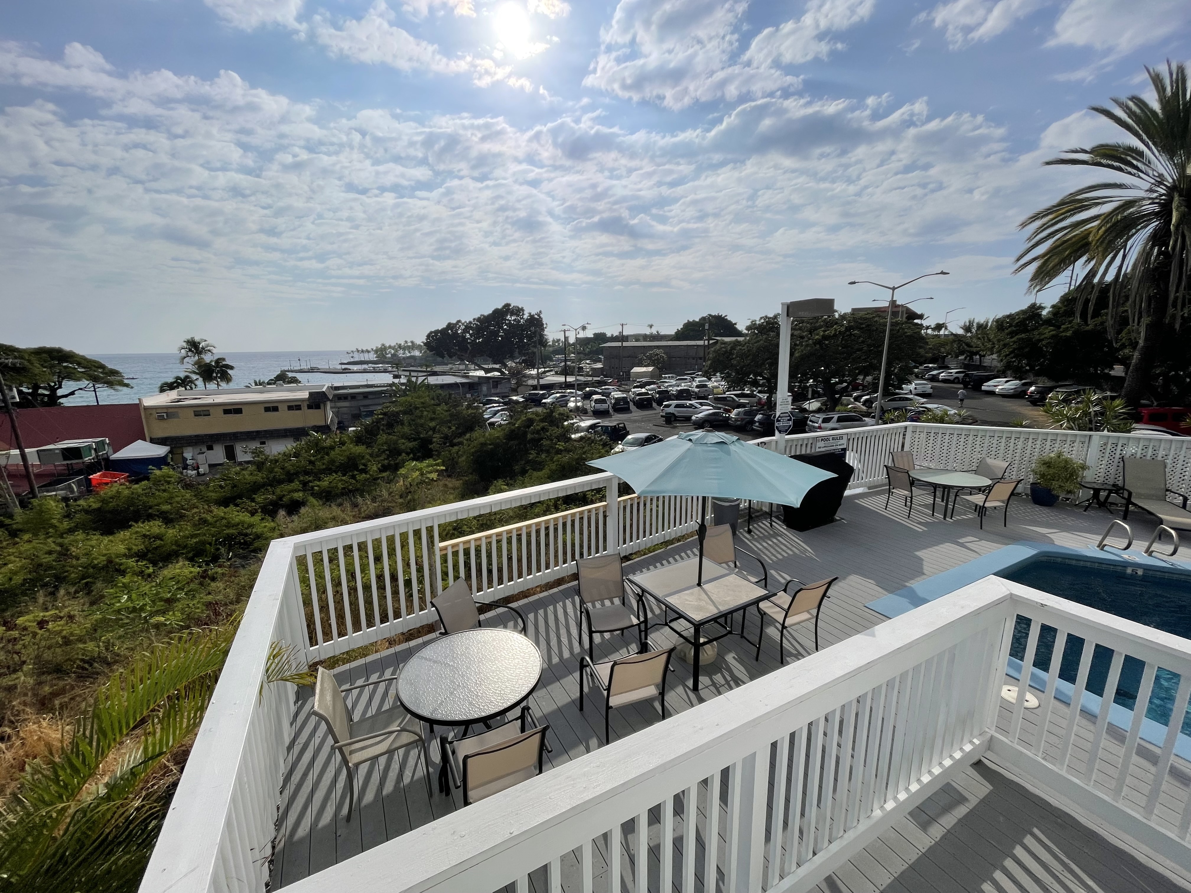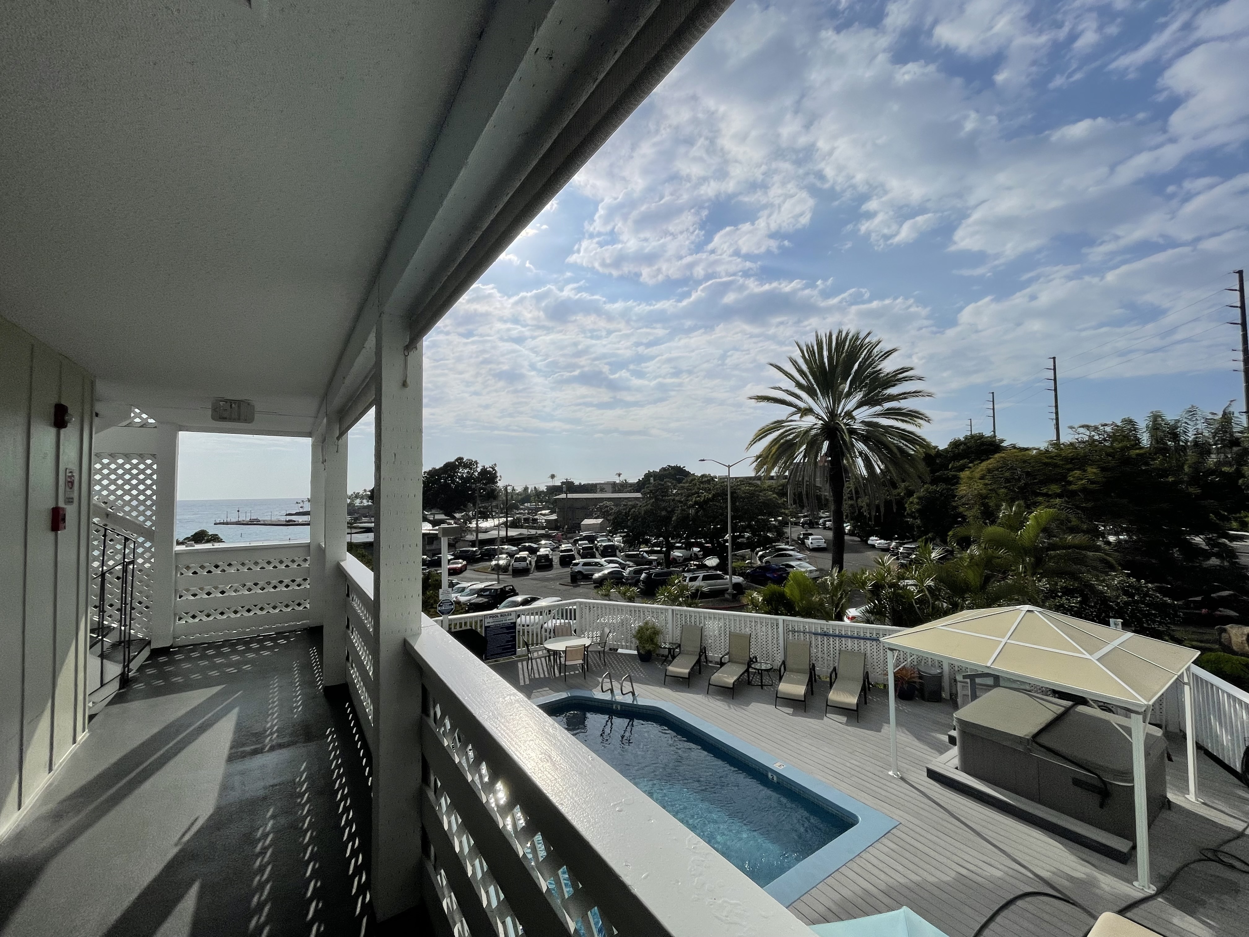 This is a leasehold property. Enjoy this Furnished and Updated Studio at Kona West #203 - A popular rental area, this unit has been nicely updated with Bamboo Flooring, Lots of Built-In furnishings including Murphy Bed, Kitchenette Cabinets, Full-Length & Designer Mirrors, Mounted TV, Air-Conditioning unit and so much more! Updated with Beautiful Granite Countertops at Kitchenette and Bath, plus a Refrigerator and Induction Cooktop, Tropical style furnishings including a Teak Bar-Style Dining, Laminate Flooring in the Bath area, Privacy awnings and Wardrobe cabinet on the Lanai, and much more! Lanai Views of the Ocean, Seasonal Sunsets, Sunrises over the Hualalai Mountain Slope, and Kona Town activities. Located in a popular Short Term Vacation Rental Resort zoned area, close to town, restaurants, shopping, Kailua Pier, and an exciting Outdoor Active Lifestyle, You and your guests are sure to enjoy this prime location! Maintenance Fees Include: Electricity, Water, Spectrum Cable/Wifi, Trash, Common Area/Building Maintenance including Pool Deck, BBQ Grill, Dining & Lounging Areas, Hot Tub, Landscaping, Coin-Operated Laundry Room, Community Bulletin Board, Mailbox Bank, and more! Open Parking area with One unassigned Parking Permit, Visitor Parking, Car Wash Stall, some Under-Building Stalls, and Video-Monitored areas.