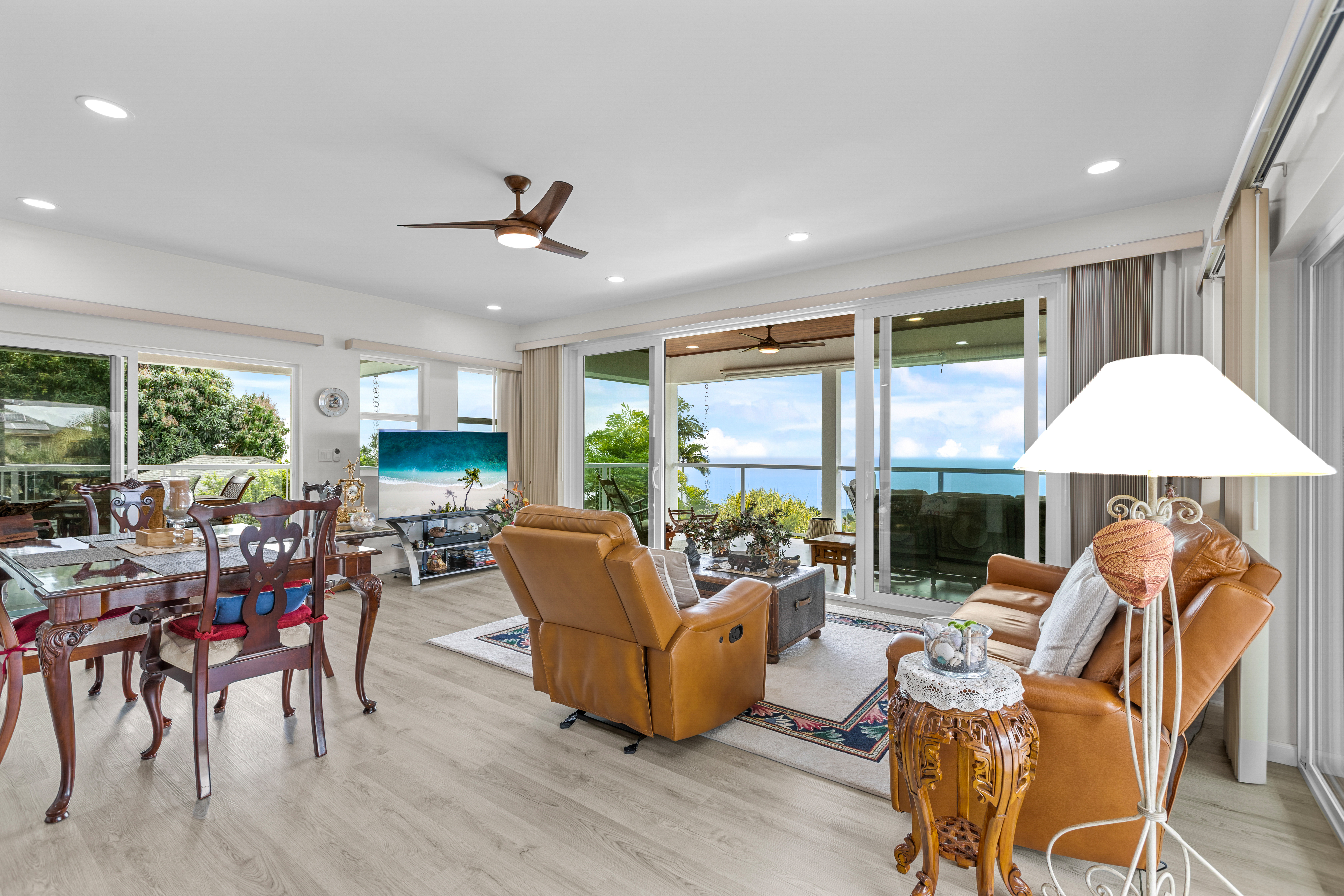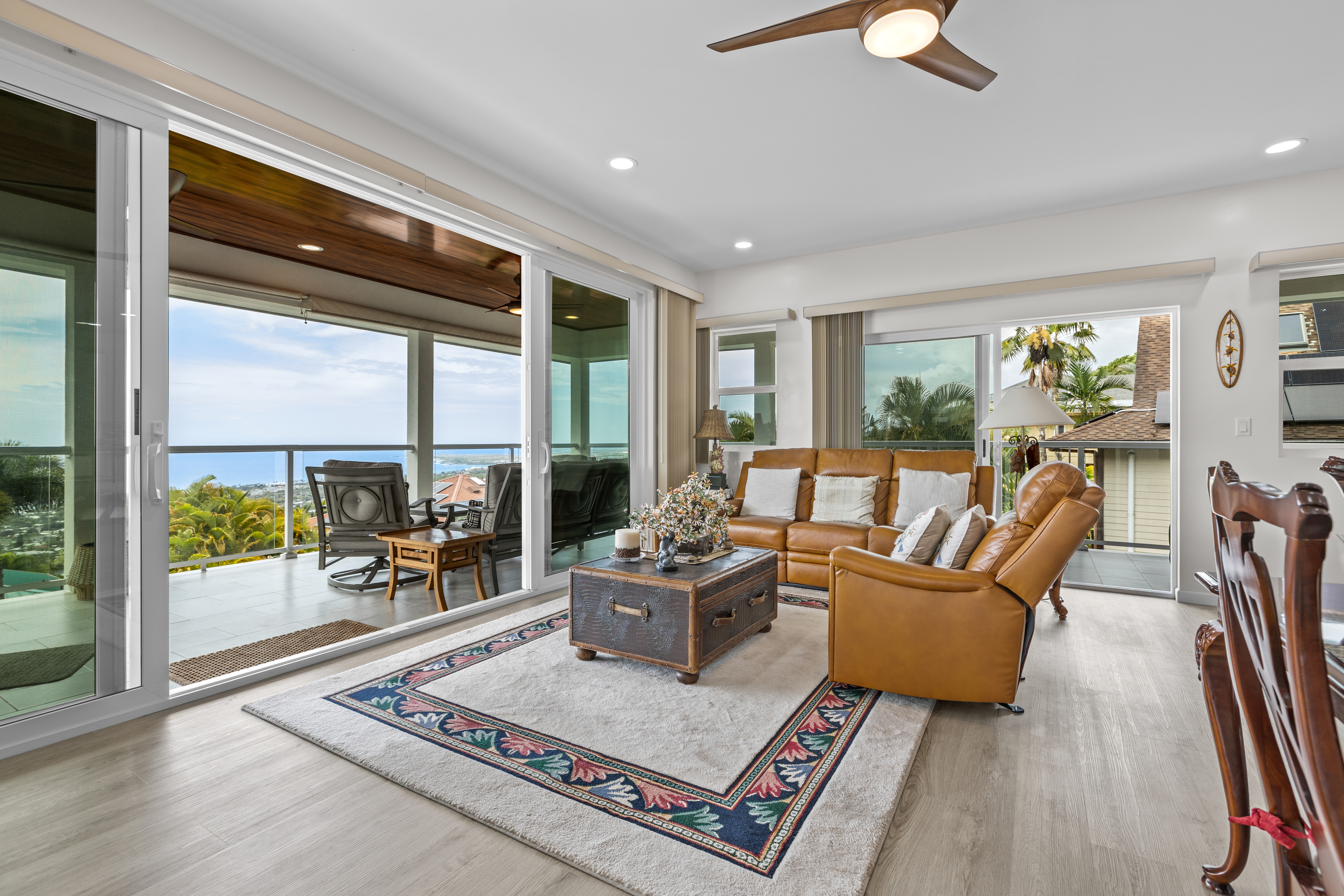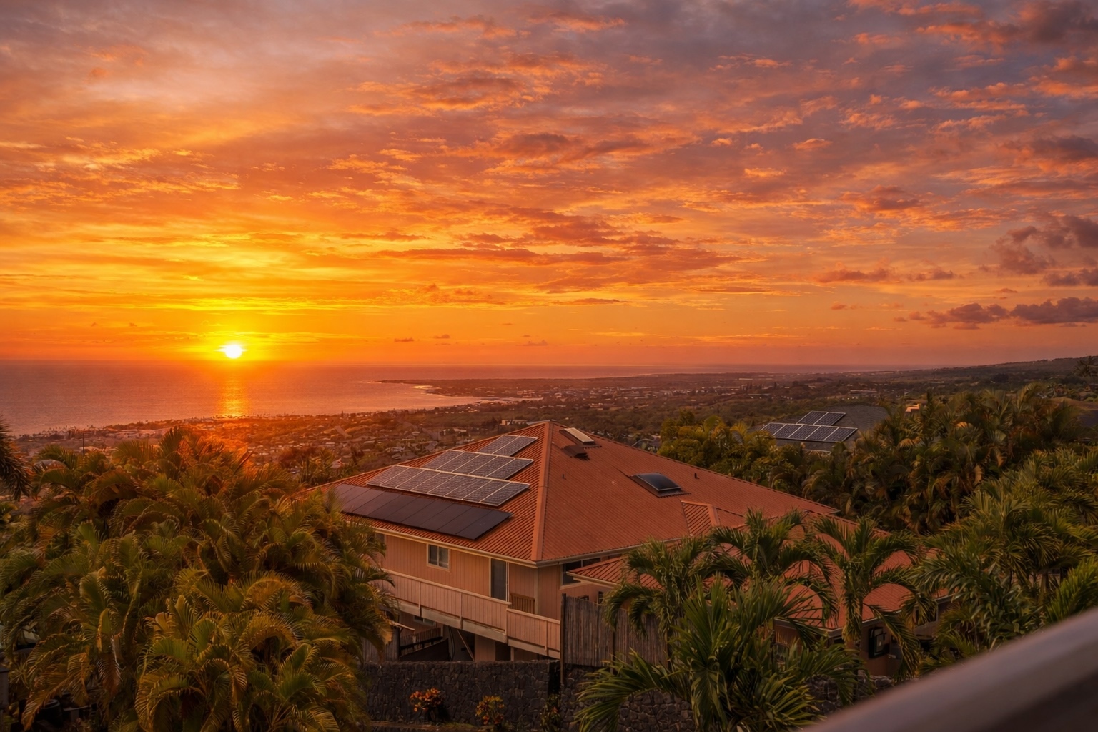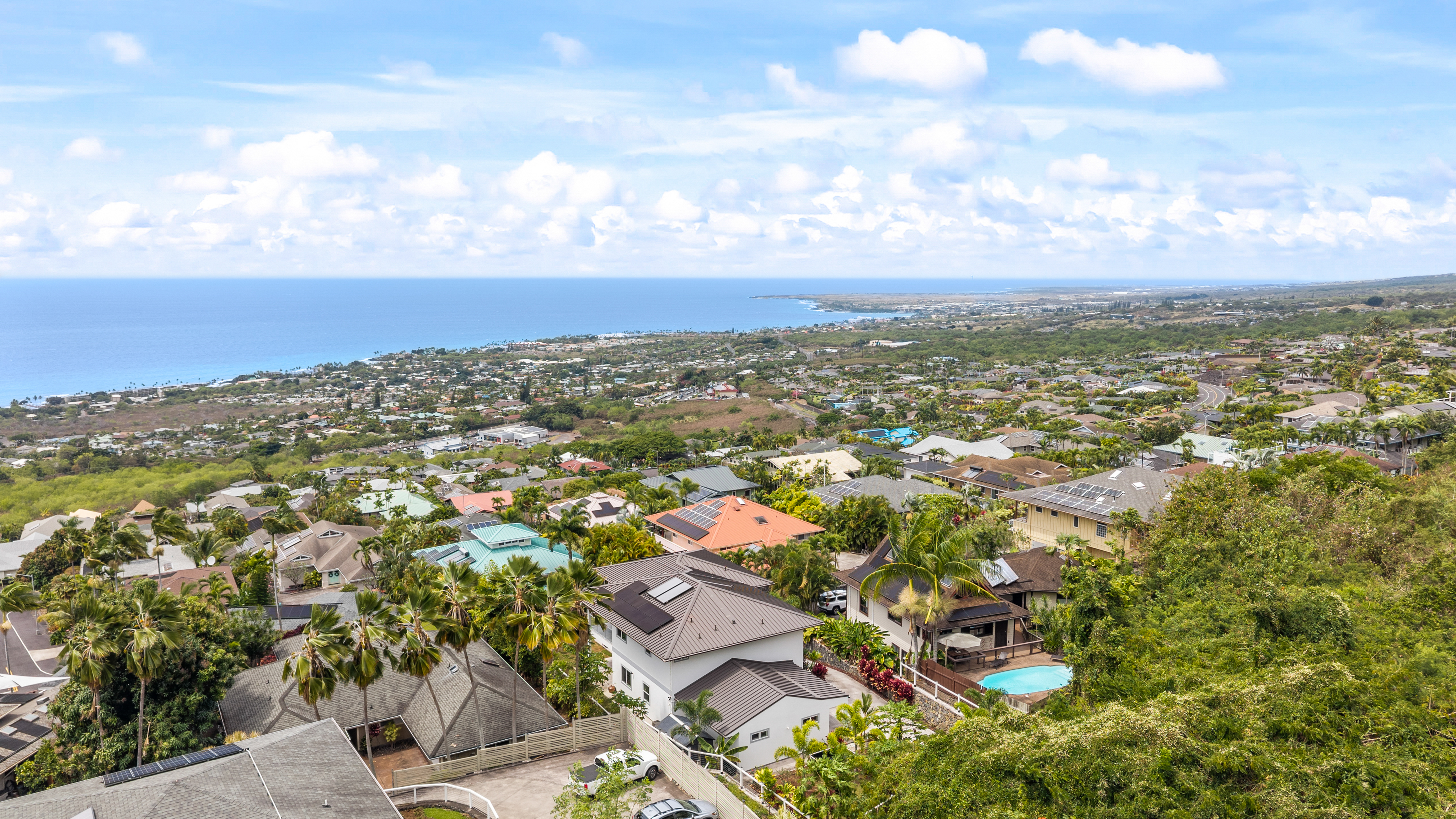 Modern Luxury with Unobstructed Ocean Views & Income Potential Property Highlights 4 Bedrooms / 4 Full Baths / 2 Half Baths (All bedrooms are ensuite!) Unobstructed Ocean & Sunse Waterfall Quartz Countertops & Custom Cabinetry Marble-Tiled Walk-in Showers Dual-Living Potential with lower-level kitchenette New PV System: Fully paid-for 15-panel solar system paired with a Tesla Powerwall battery. Experience the pinnacle of Kona living in this meticulously upgraded, newer-construction estate located at 77-6435-A Kilohana Street. Perched to capture unobstructed, panoramic ocean views, this 4-bedroom, 4-full-bath, and 2-half-bath masterpiece blends high-end contemporary design with versatile living configurations. Sophisticated Upper-Level Living -The heart of the home is an expansive, light-filled great room designed for seamless indoor-outdoor entertaining. -Chef’s Kitchen: Features striking quartz countertops with a waterfall edge, custom cabinetry, and a massive walk-in pantry. -Primary Suite: A private sanctuary boasting its own large covered lanai, an elegant ensuite bath, and sweeping coastal views and walk-in closet. - Living area flows into a second oversized covered lanai, perfect for sunset cocktails and alfresco dining. A convenient powder room serves the main level. Versatile Lower-Level Potential The lower level offers incredible flexibility for extended family, guests, or long-term rental income: -Separated Suite: A distinct living area featuring 2 bedrooms, 2 ensuite baths, and a newly added full kitchenette. -Guest Quarters: An additional 4th bedroom with its own ensuite bath sits just outside the separated suite, ensuring total privacy for every occupant. All bathrooms include marble tiled walk-in showers. Don’t miss this rare opportunity to own a high-performance, multi-generational home in one of Kona’s most desirable locations.