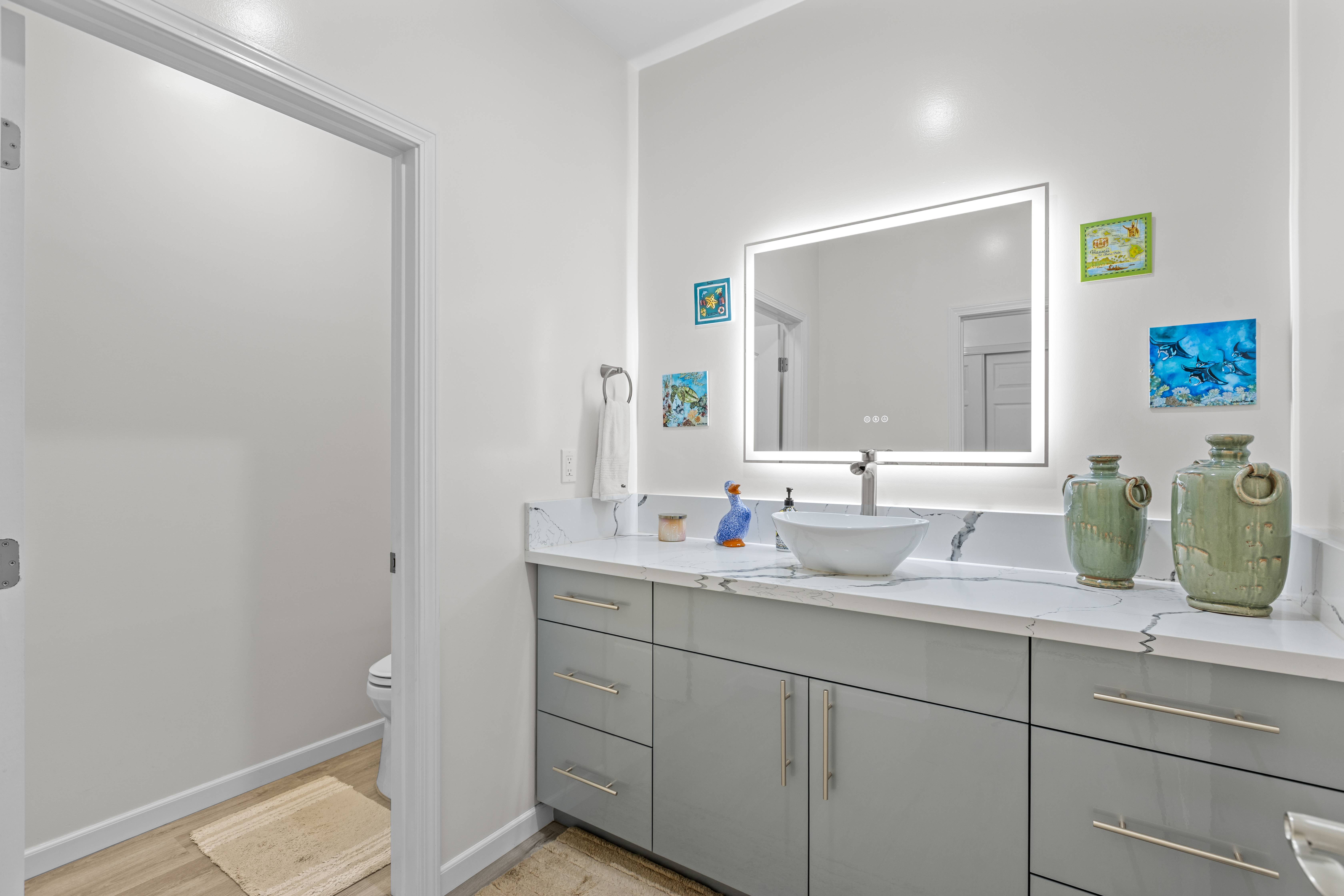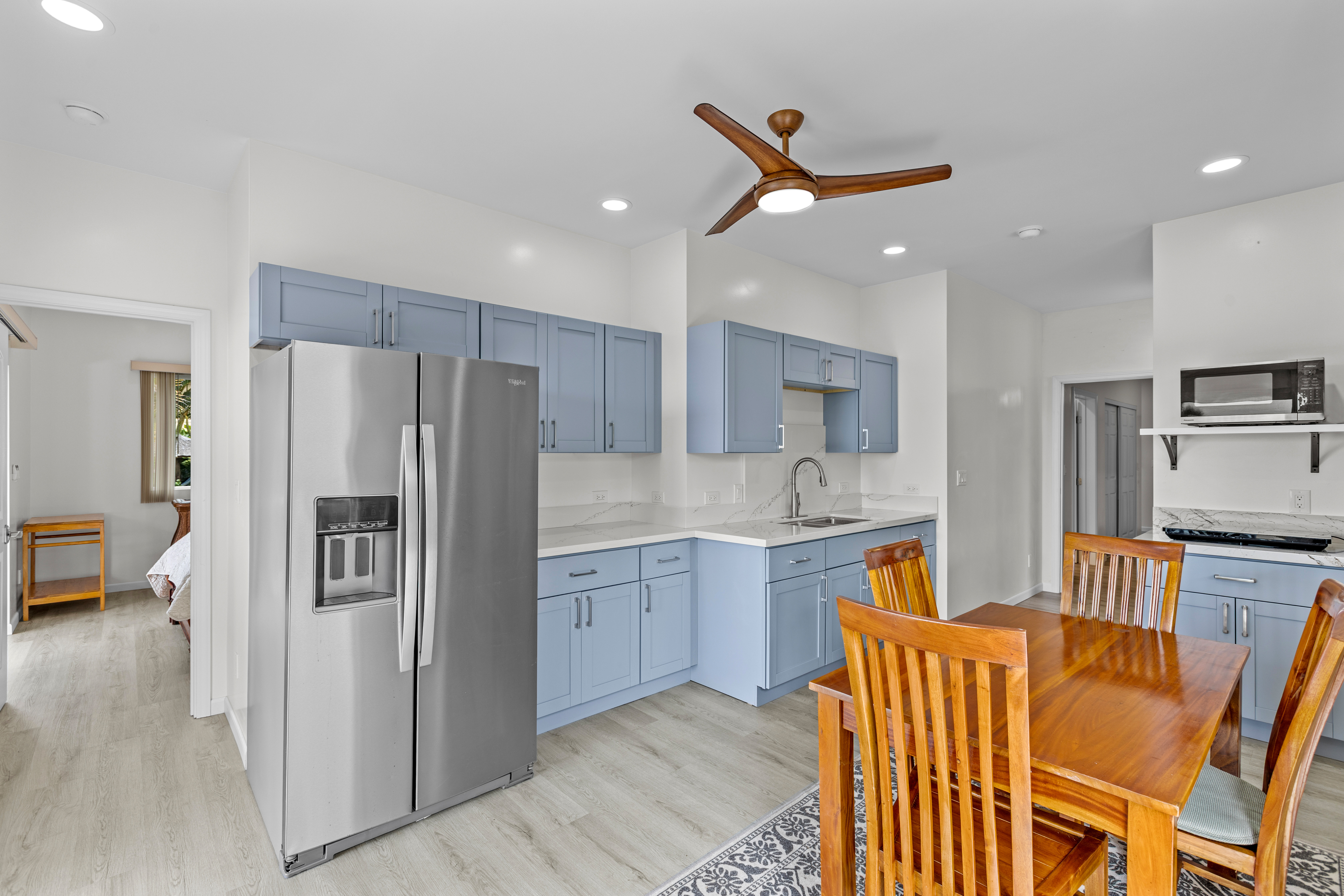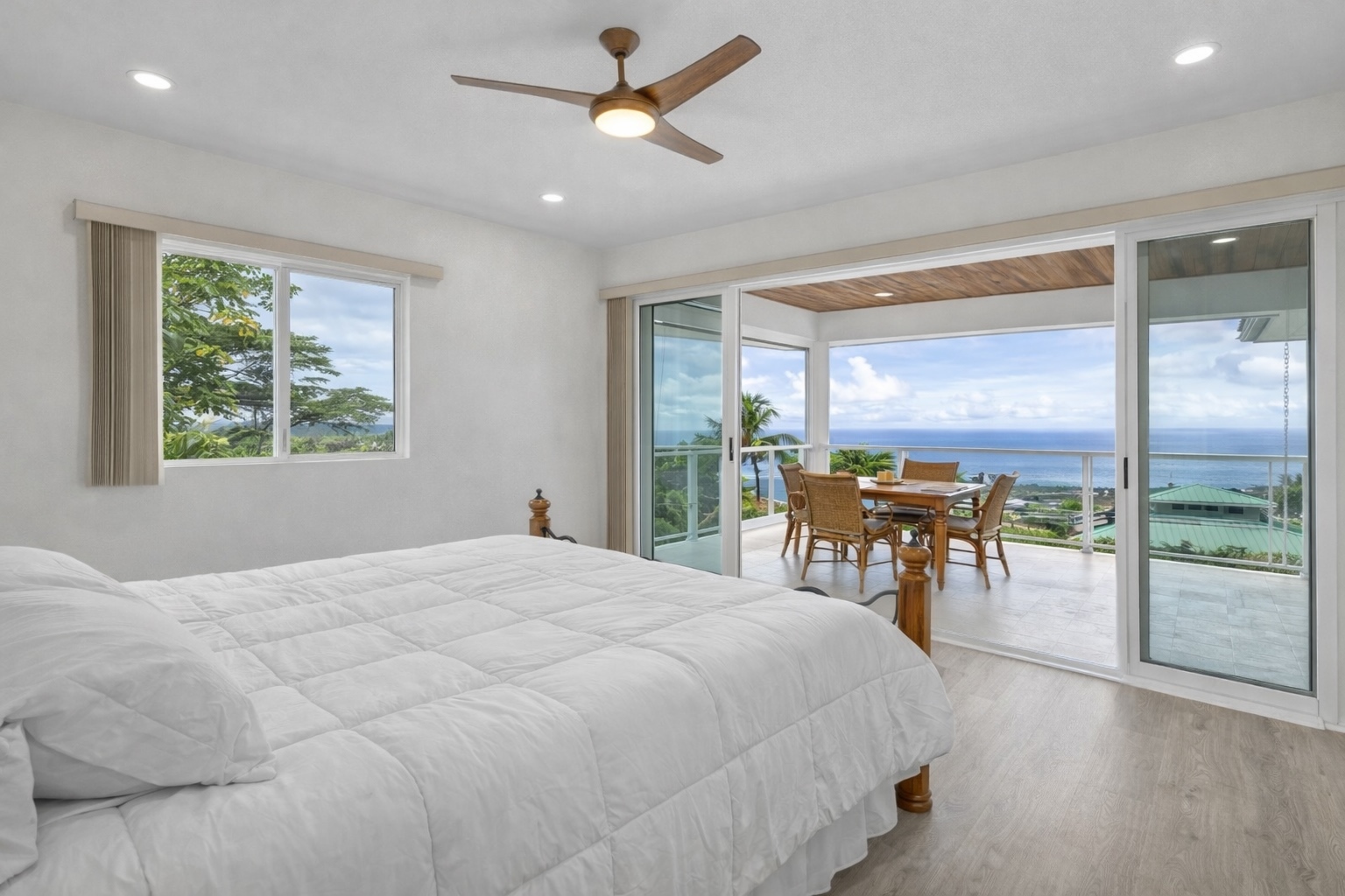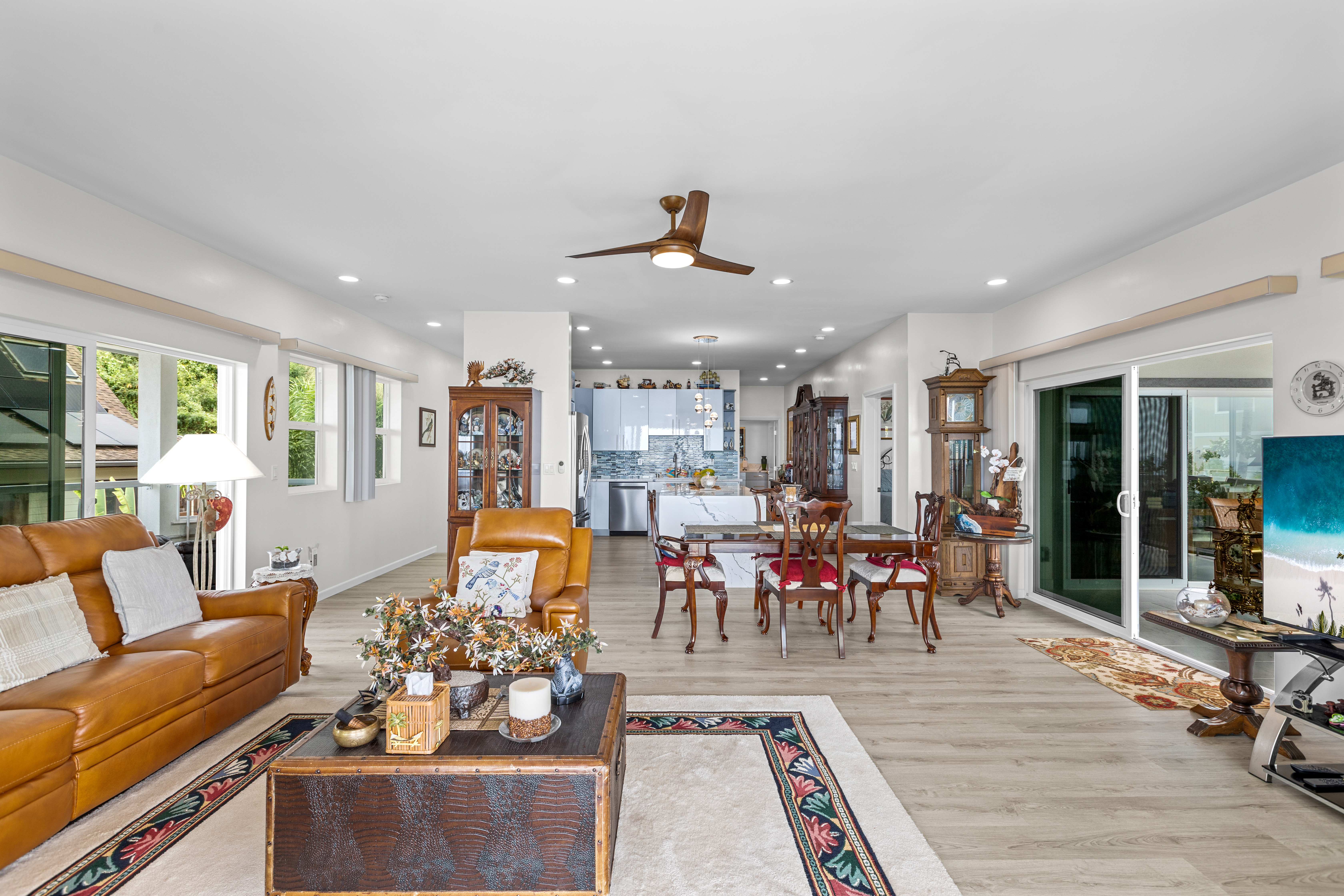 Modern Luxury with Unobstructed Ocean Views & Income Potential Property Highlights 4 Bedrooms / 4 Full Baths / 2 Half Baths (All bedrooms are ensuite!) Unobstructed Ocean & Sunse Waterfall Quartz Countertops & Custom Cabinetry Marble-Tiled Walk-in Showers Dual-Living Potential with lower-level kitchenette New PV System: Fully paid-for 15-panel solar system paired with a Tesla Powerwall battery. Experience the pinnacle of Kona living in this meticulously upgraded, newer-construction estate located at 77-6435-A Kilohana Street. Perched to capture unobstructed, panoramic ocean views, this 4-bedroom, 4-full-bath, and 2-half-bath masterpiece blends high-end contemporary design with versatile living configurations. Sophisticated Upper-Level Living -The heart of the home is an expansive, light-filled great room designed for seamless indoor-outdoor entertaining. -Chef’s Kitchen: Features striking quartz countertops with a waterfall edge, custom cabinetry, and a massive walk-in pantry. -Primary Suite: A private sanctuary boasting its own large covered lanai, an elegant ensuite bath, and sweeping coastal views and walk-in closet. - Living area flows into a second oversized covered lanai, perfect for sunset cocktails and alfresco dining. A convenient powder room serves the main level. Versatile Lower-Level Potential The lower level offers incredible flexibility for extended family, guests, or long-term rental income: -Separated Suite: A distinct living area featuring 2 bedrooms, 2 ensuite baths, and a newly added full kitchenette. -Guest Quarters: An additional 4th bedroom with its own ensuite bath sits just outside the separated suite, ensuring total privacy for every occupant. All bathrooms include marble tiled walk-in showers. Don’t miss this rare opportunity to own a high-performance, multi-generational home in one of Kona’s most desirable locations.